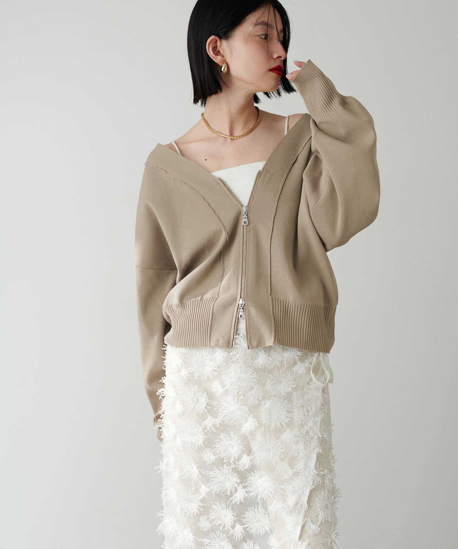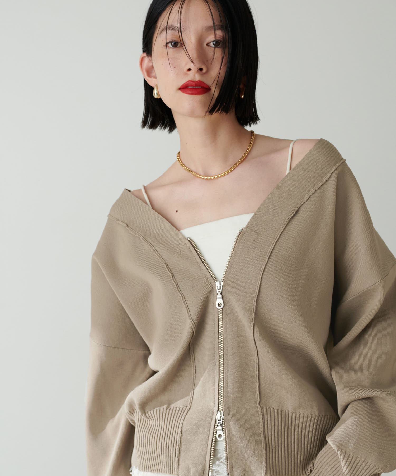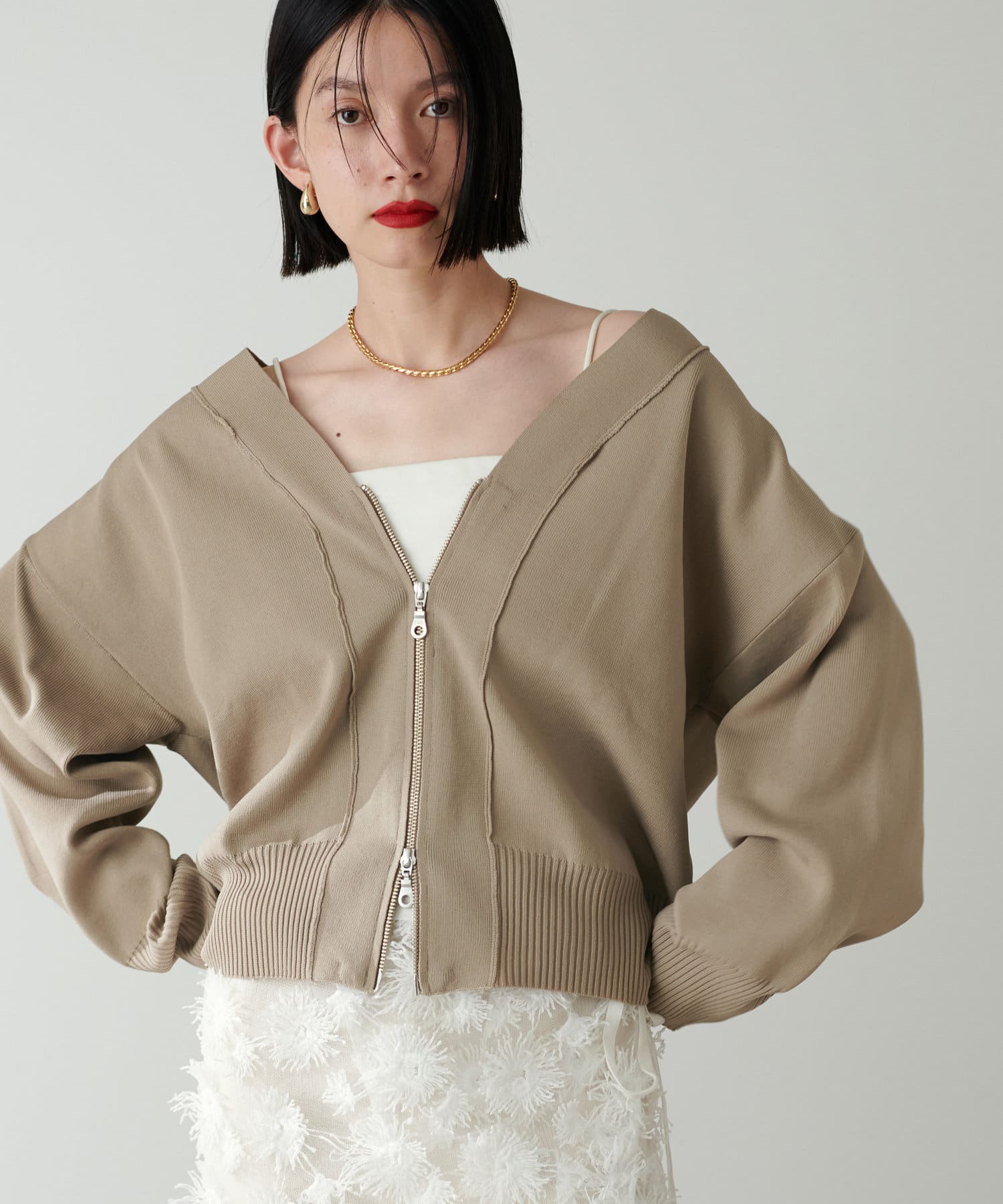 シアーインナーなどをお召いただき首元のオシャレを楽しむのも◎。