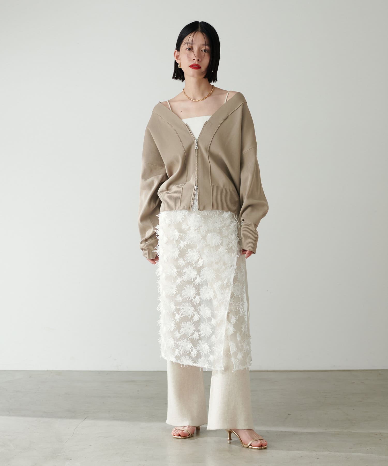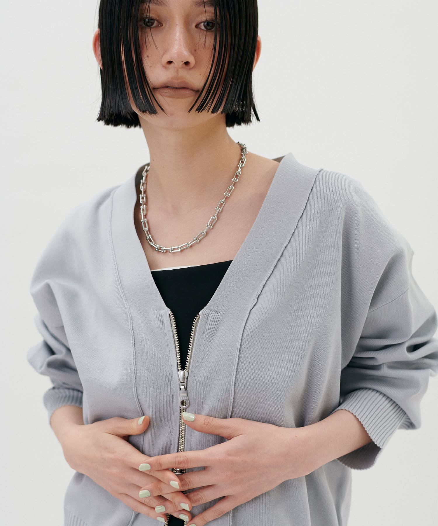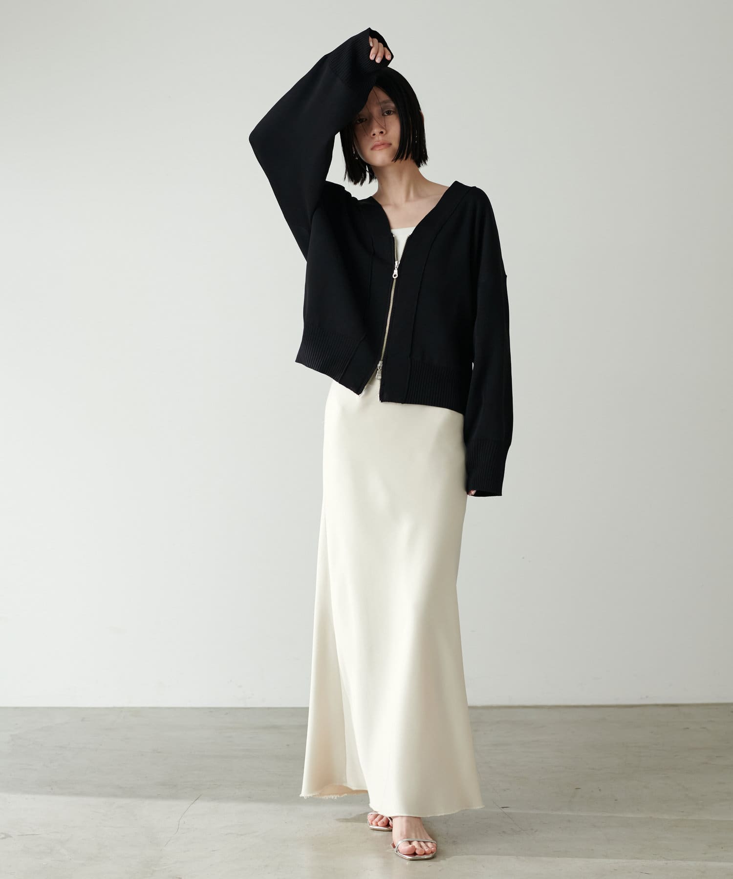 シアーインナーなどをお召いただき首元のオシャレを楽しむのも◎。