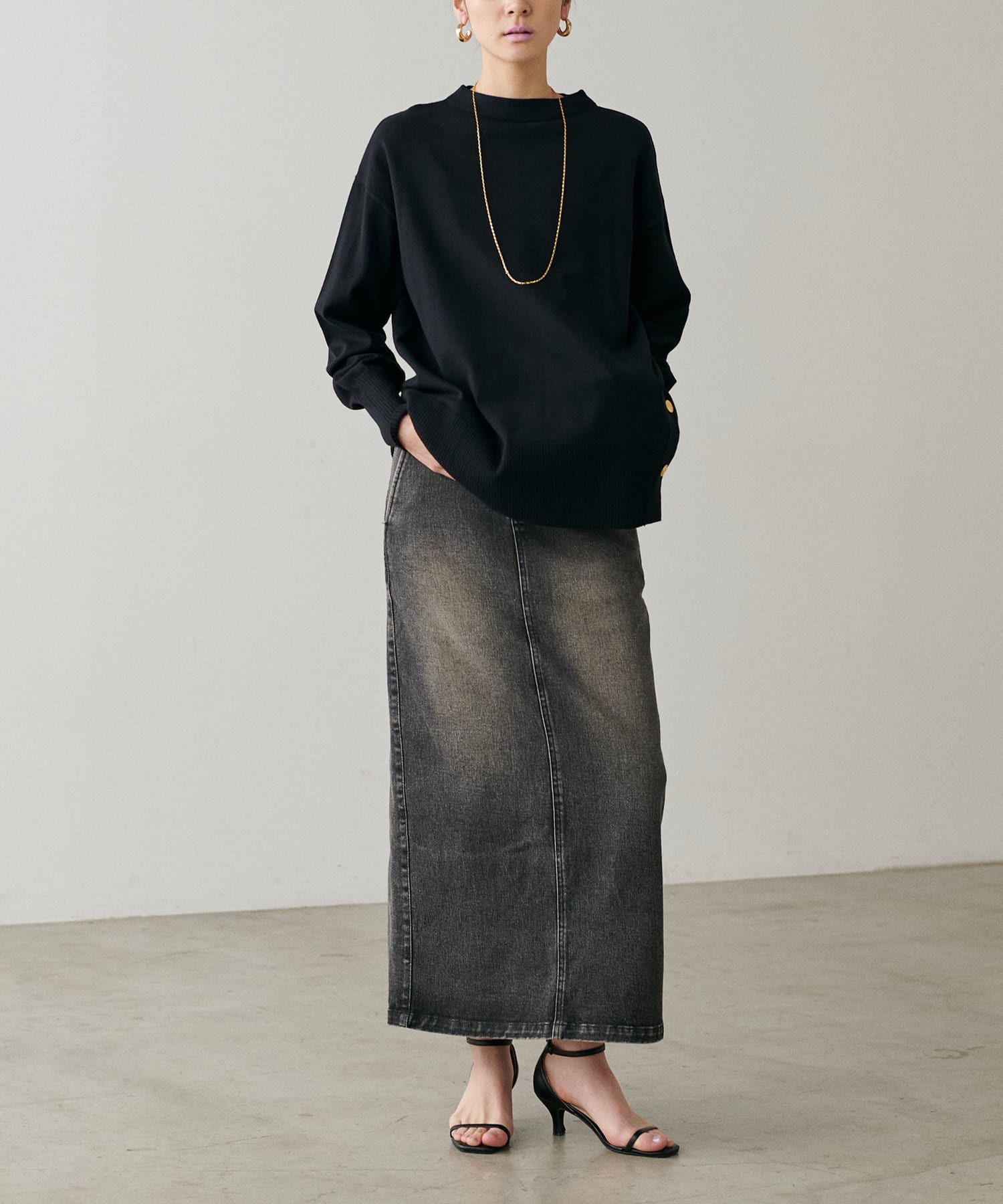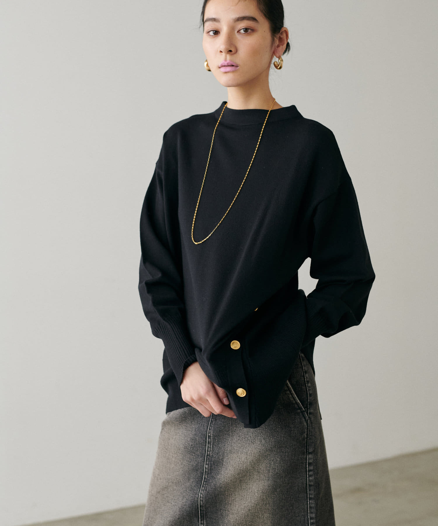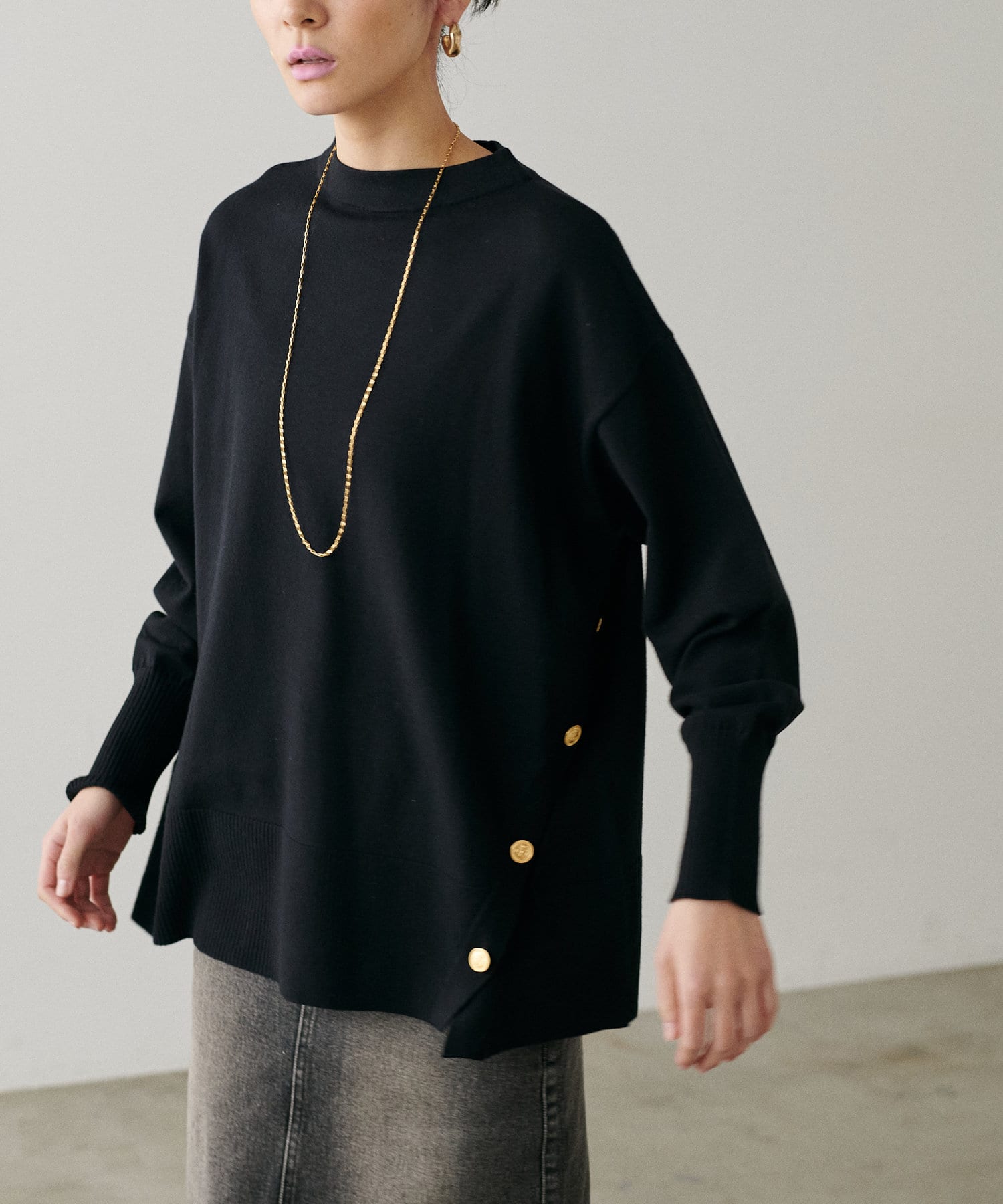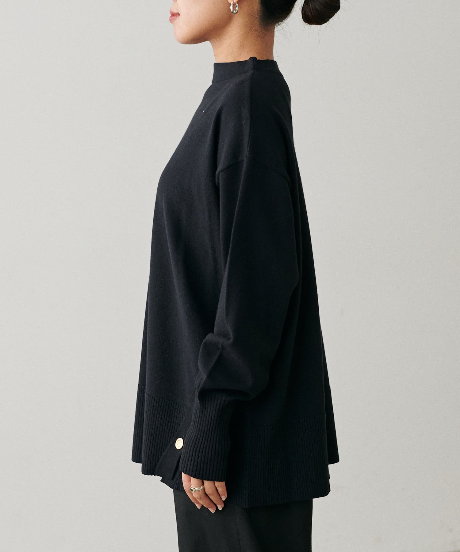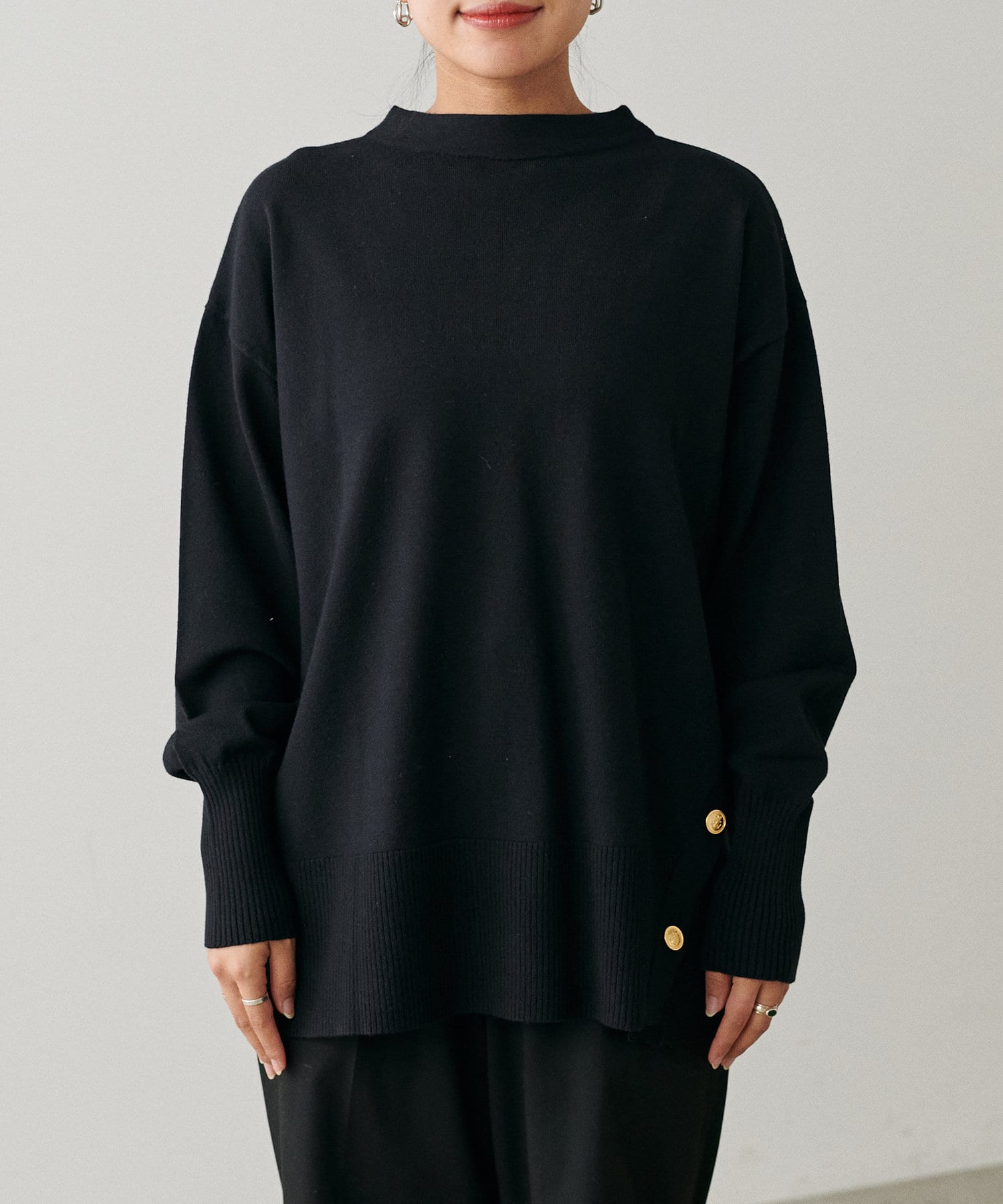 サイド釦ボトルネックニット