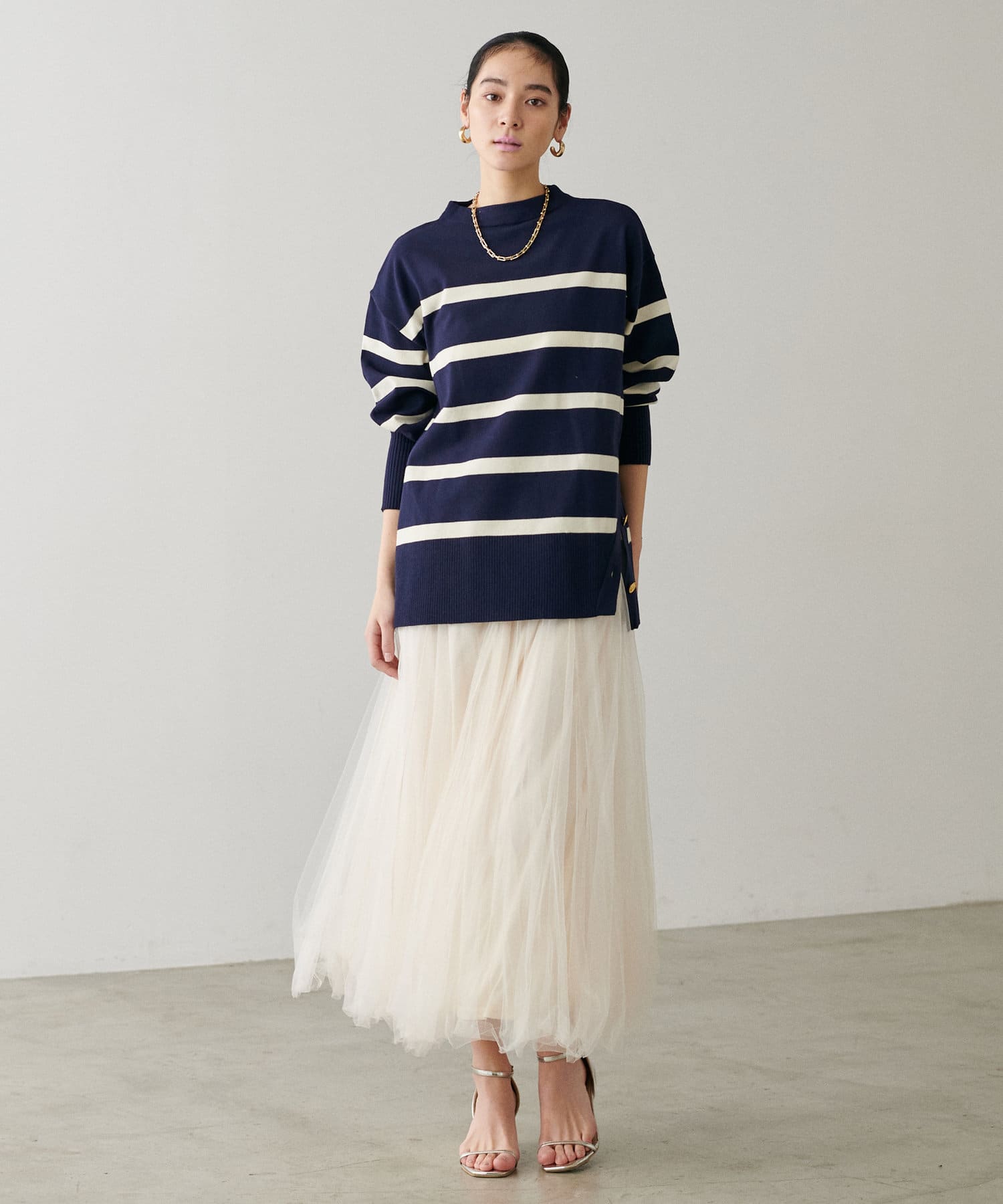 上品な印象に仕上げてくれます。シンプルなキレイめニットは春先の