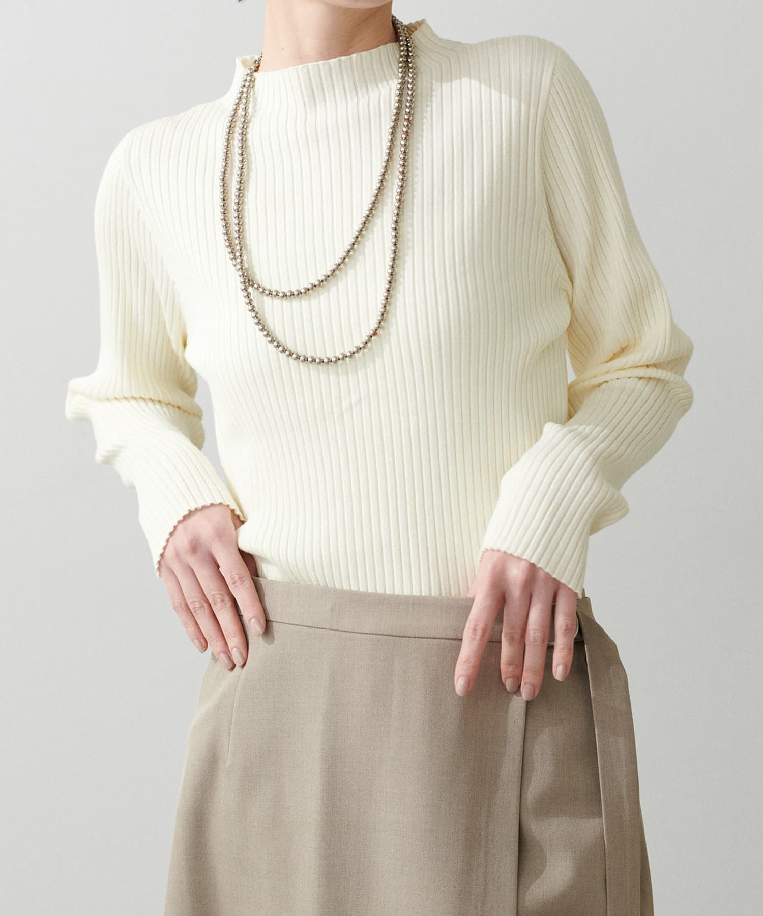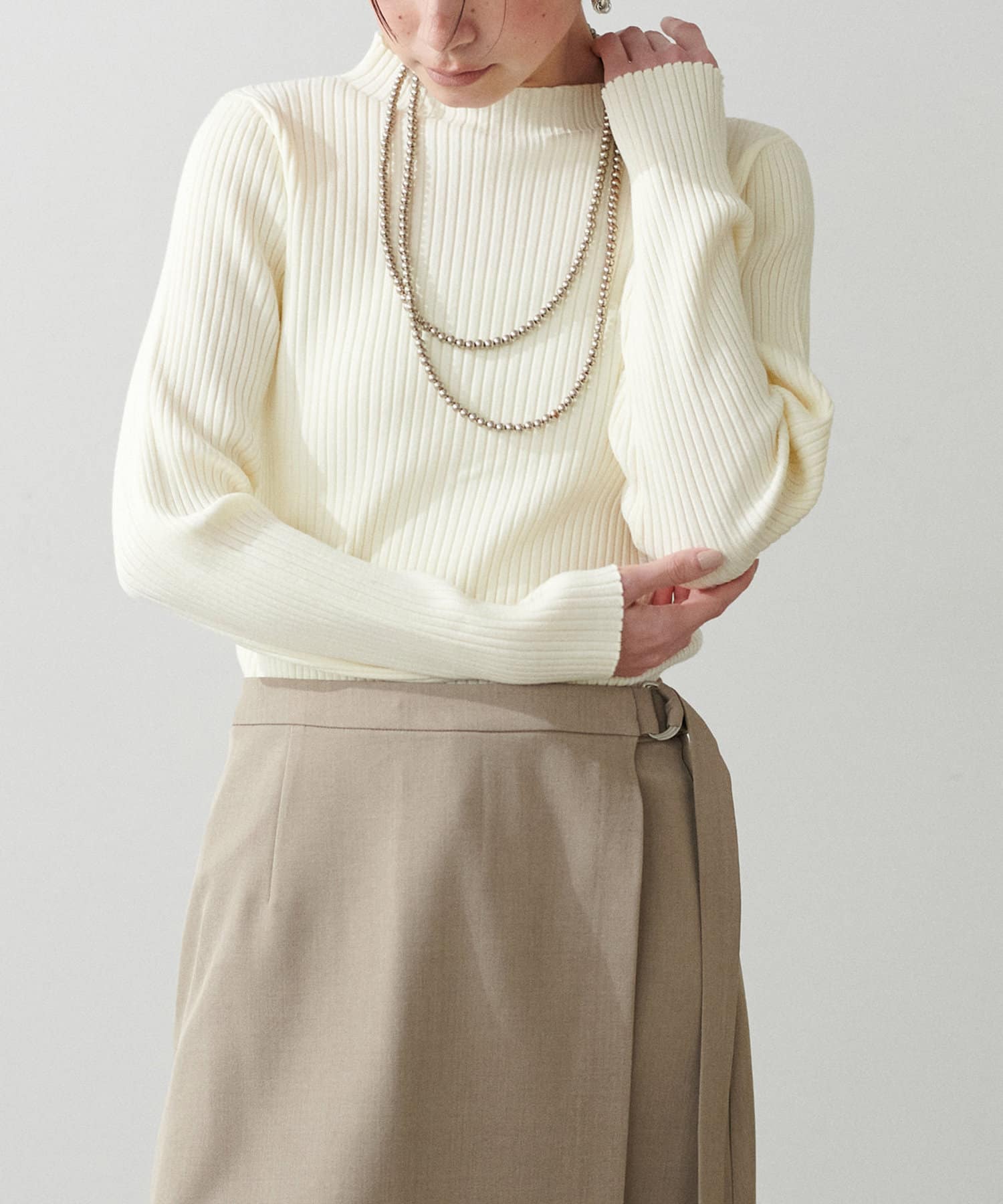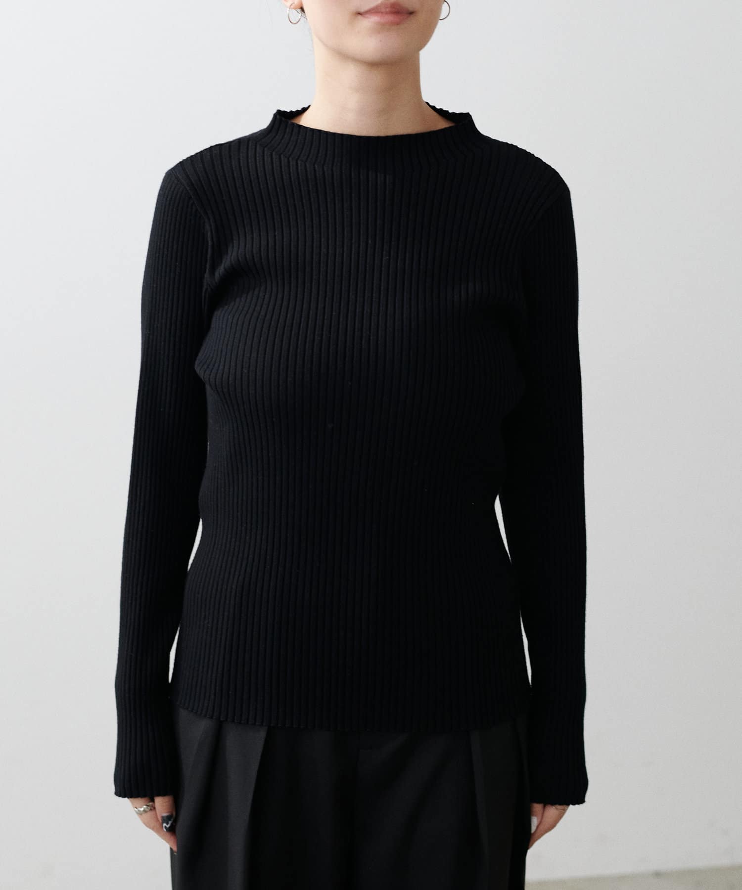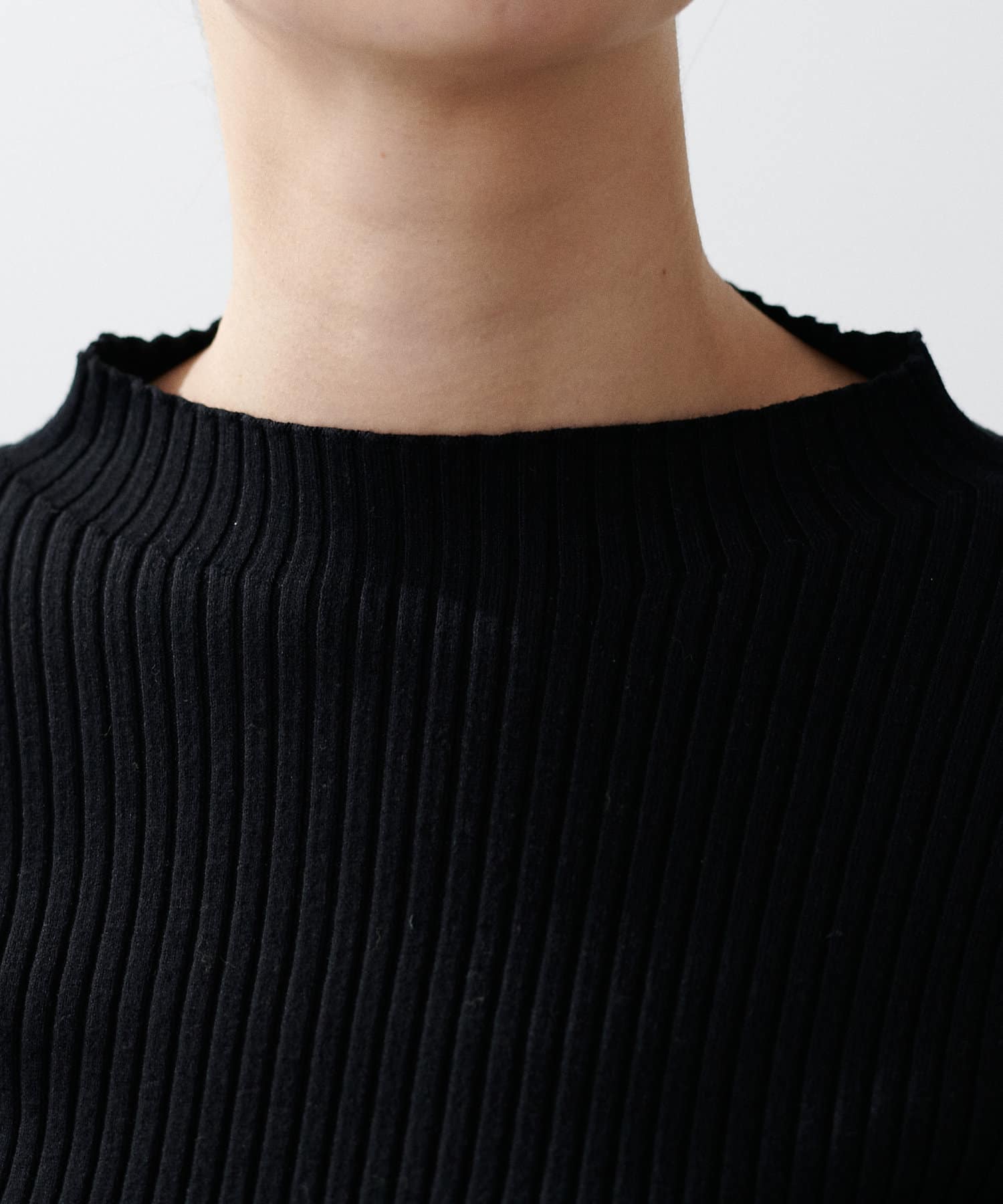 ボトルネックのような広めの襟ぐりは、タートルネックなどが