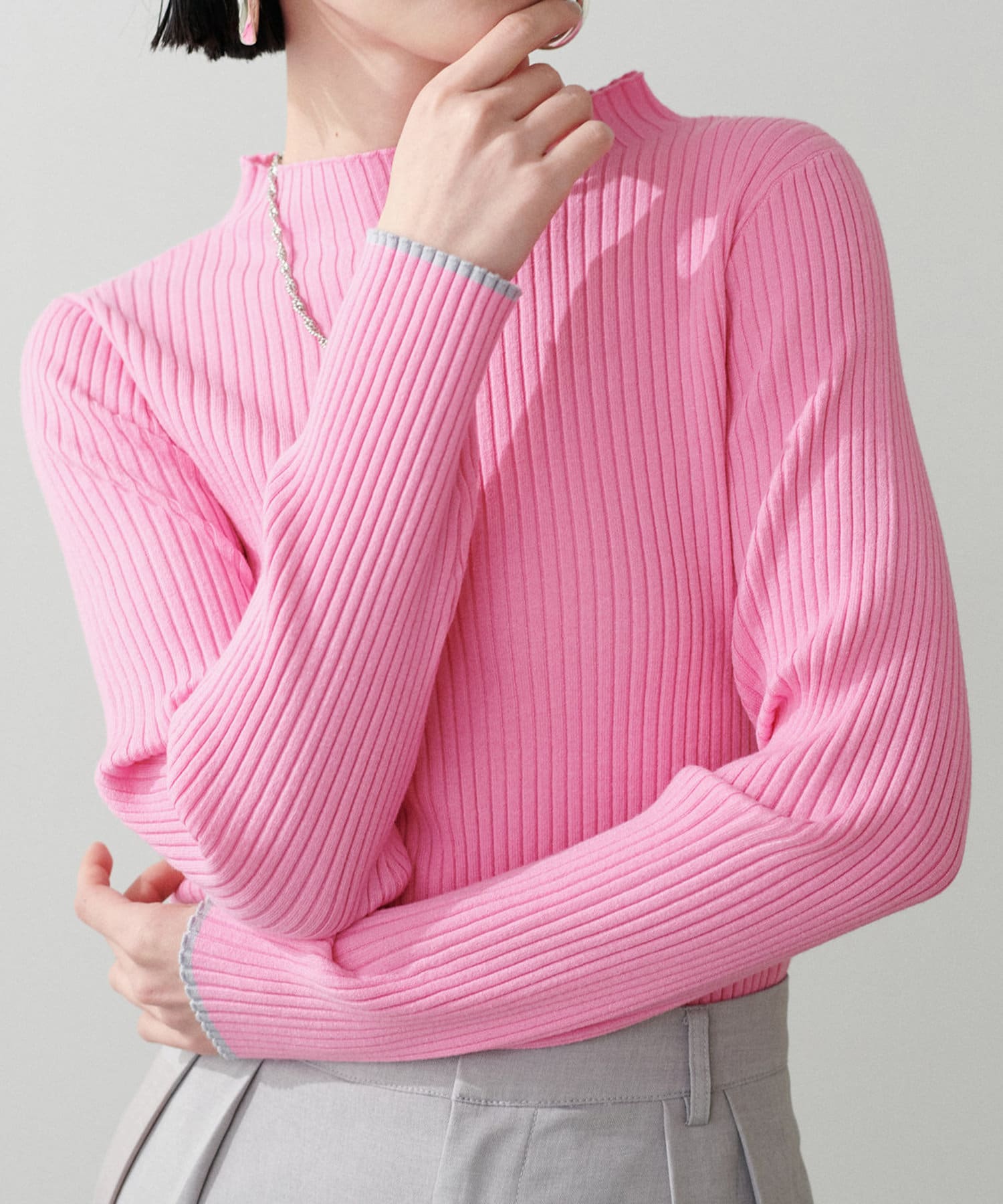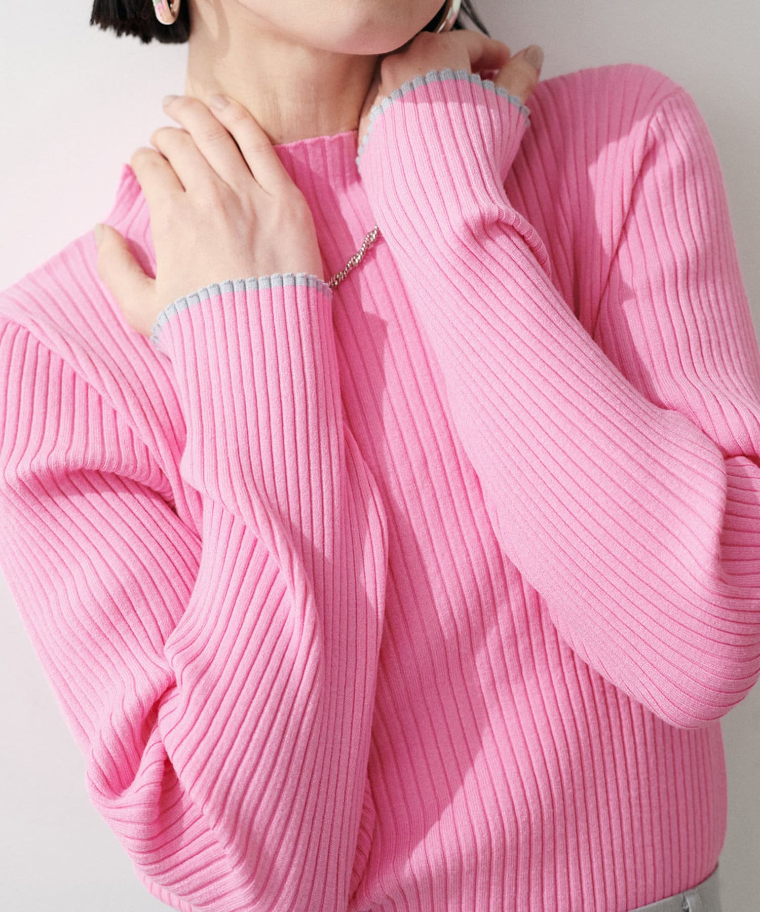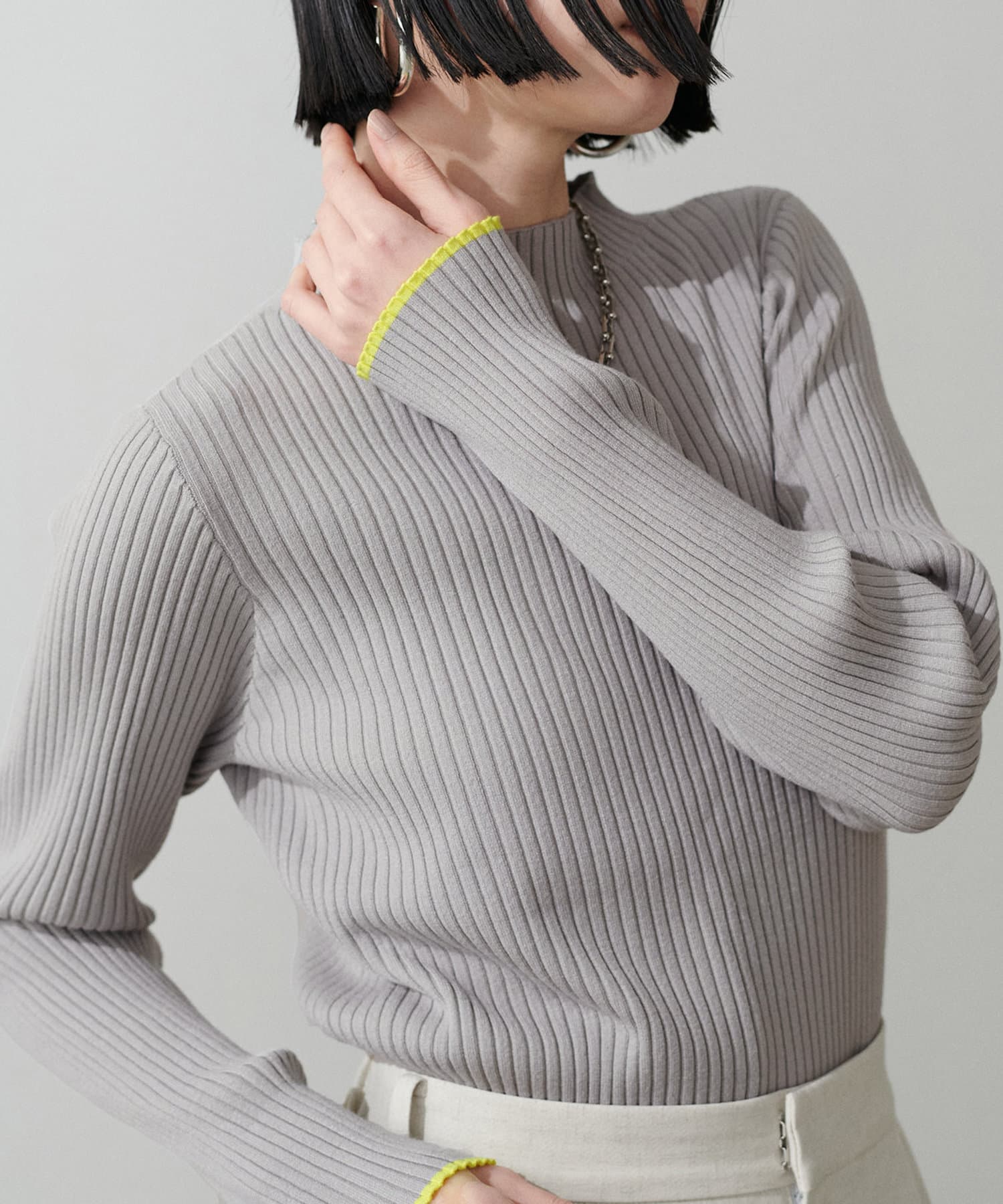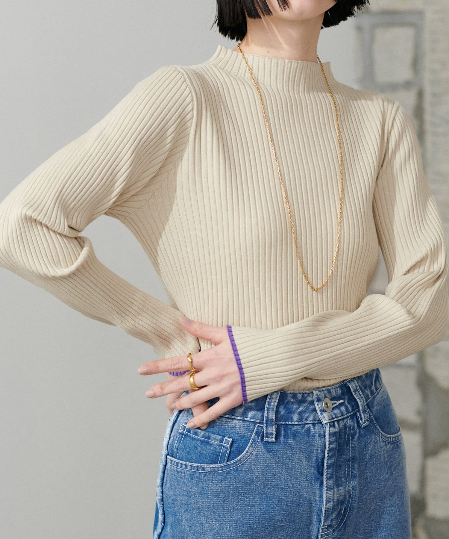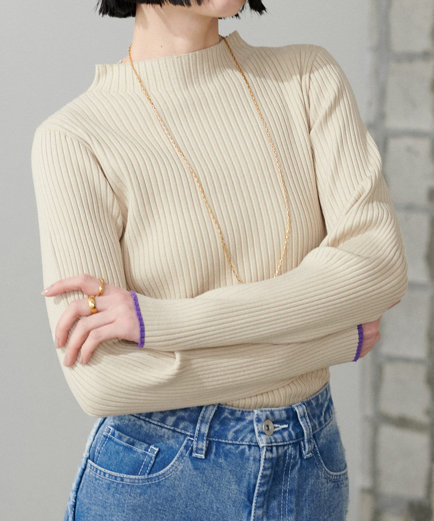 袖口の配色が遊び心のあるリブニットが登場。