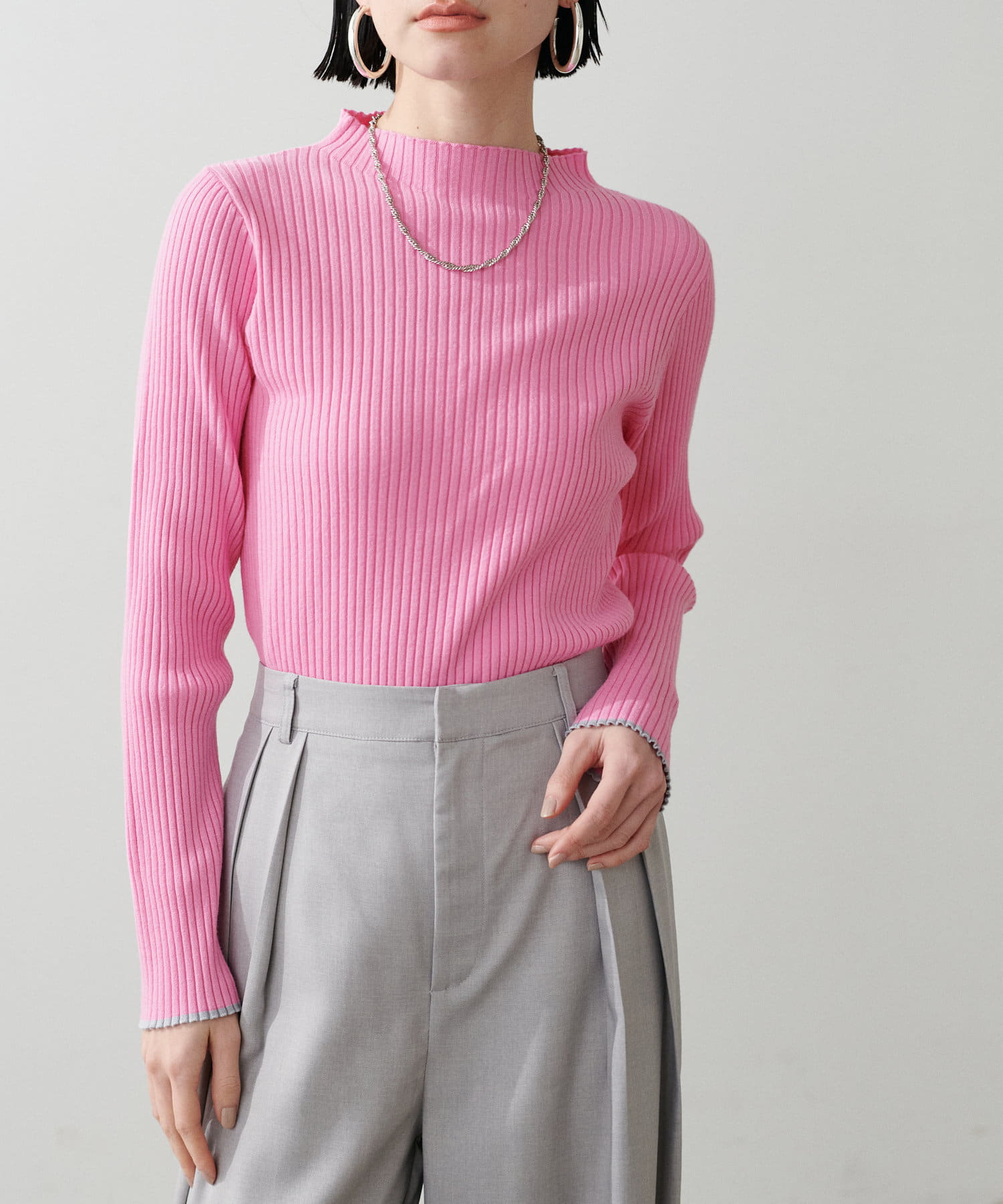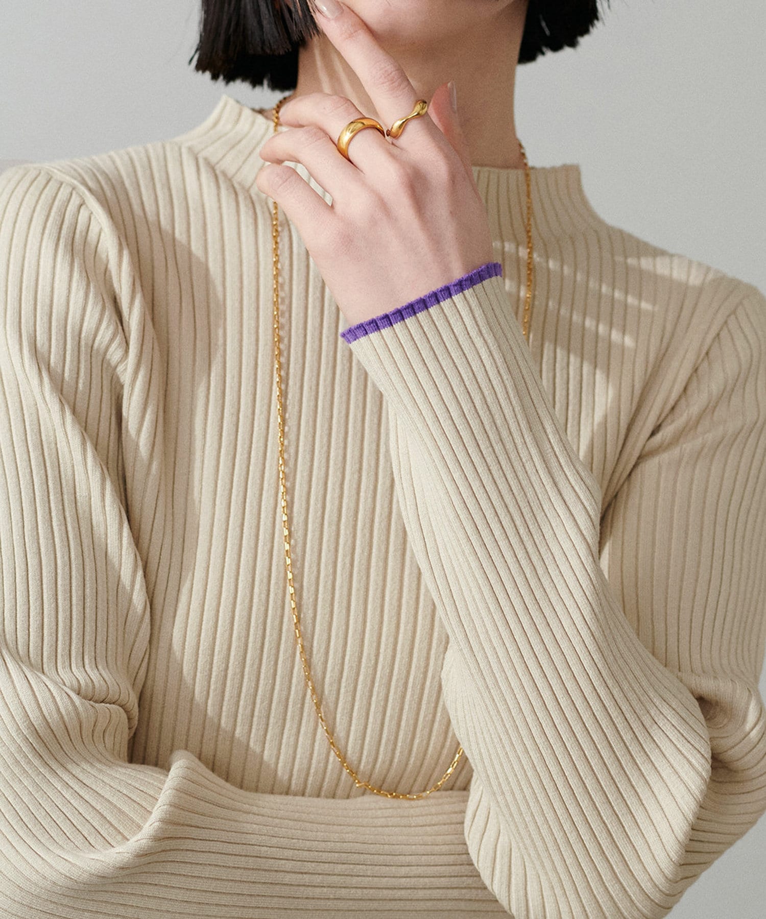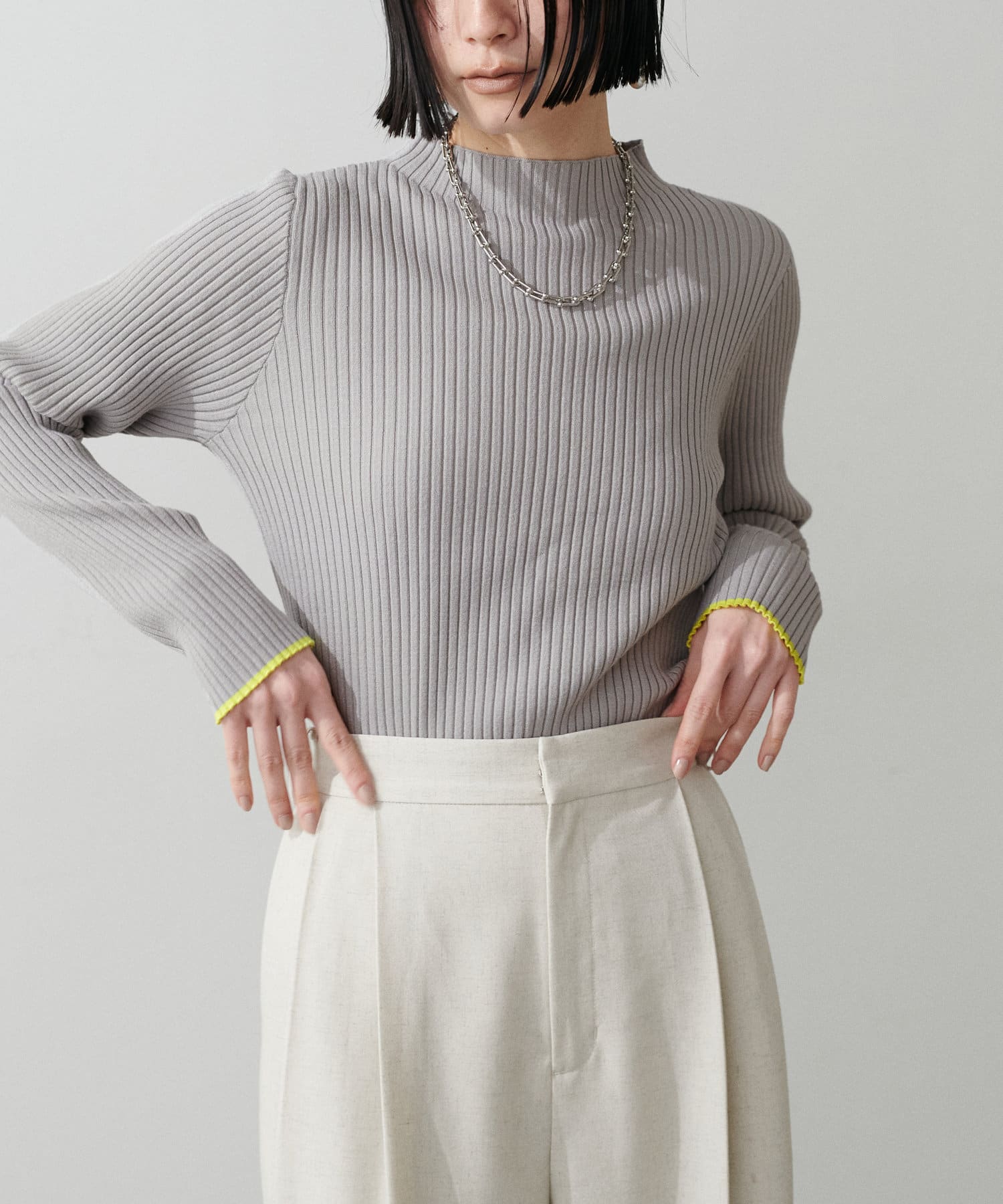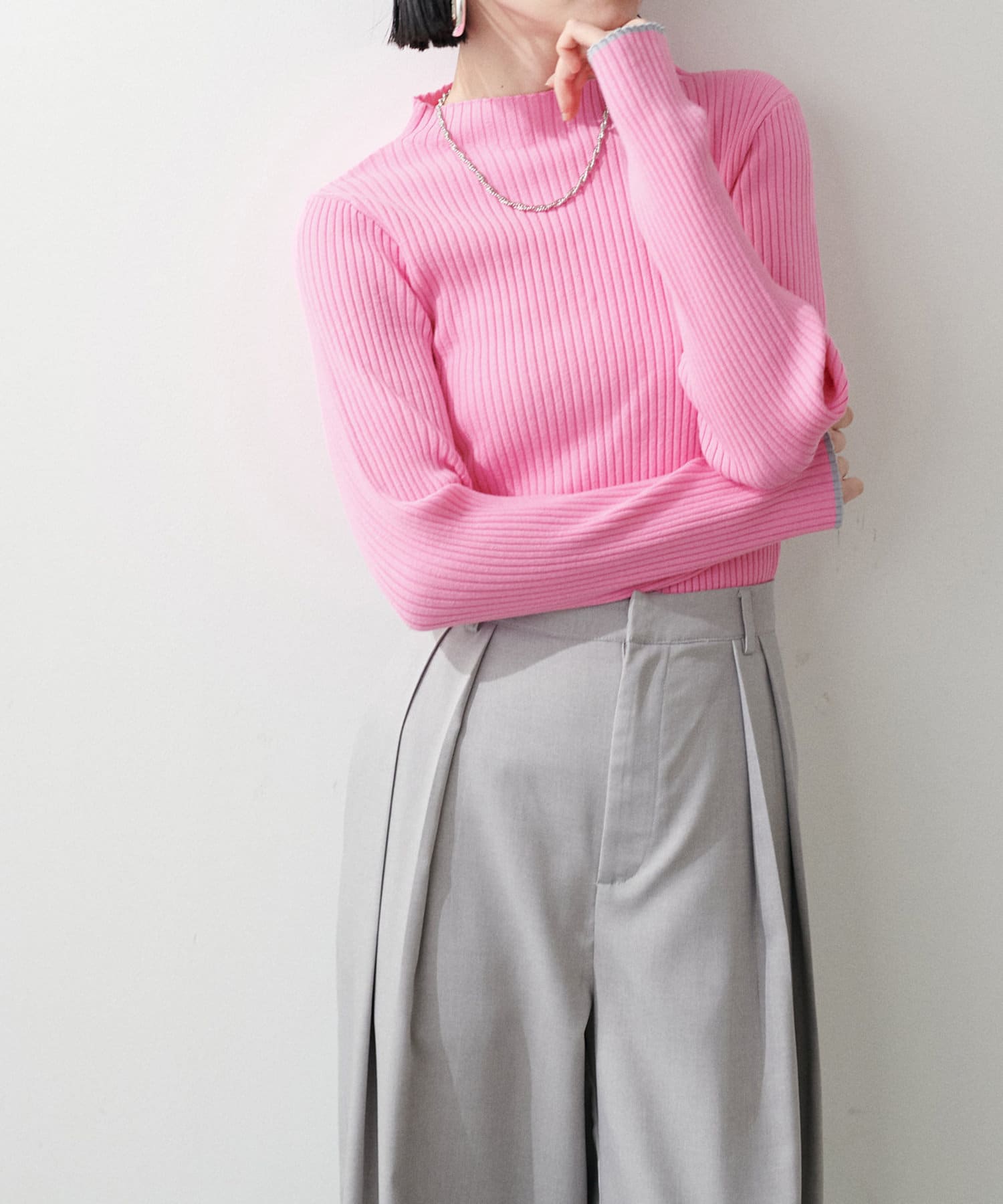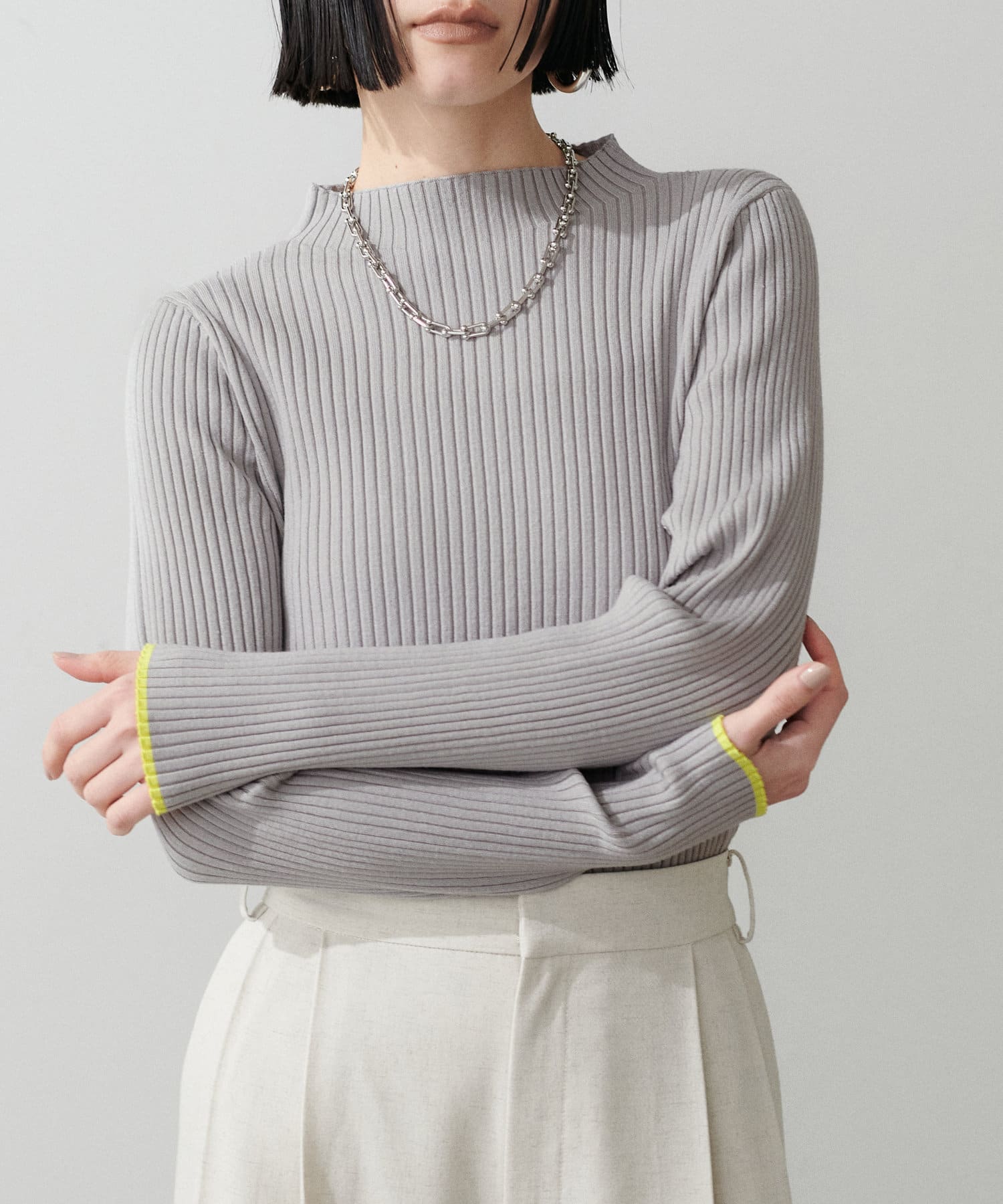 袖口の配色が遊び心のあるリブニットが登場。