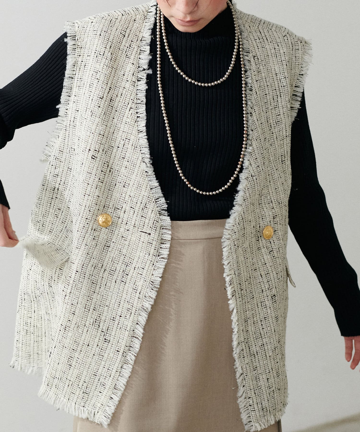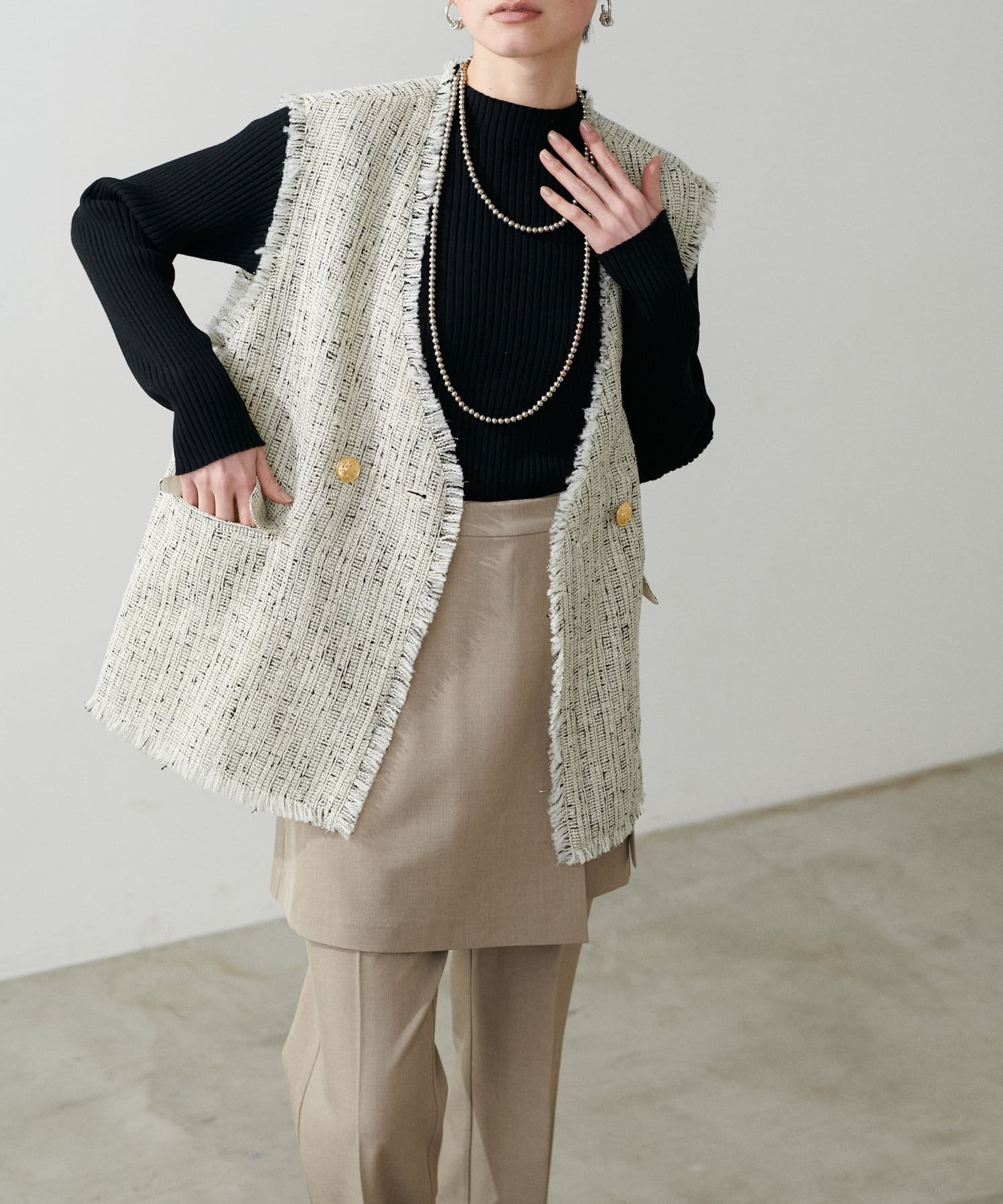1枚でも、インナーとしても、着回しが自在に楽しめるアイテムです。