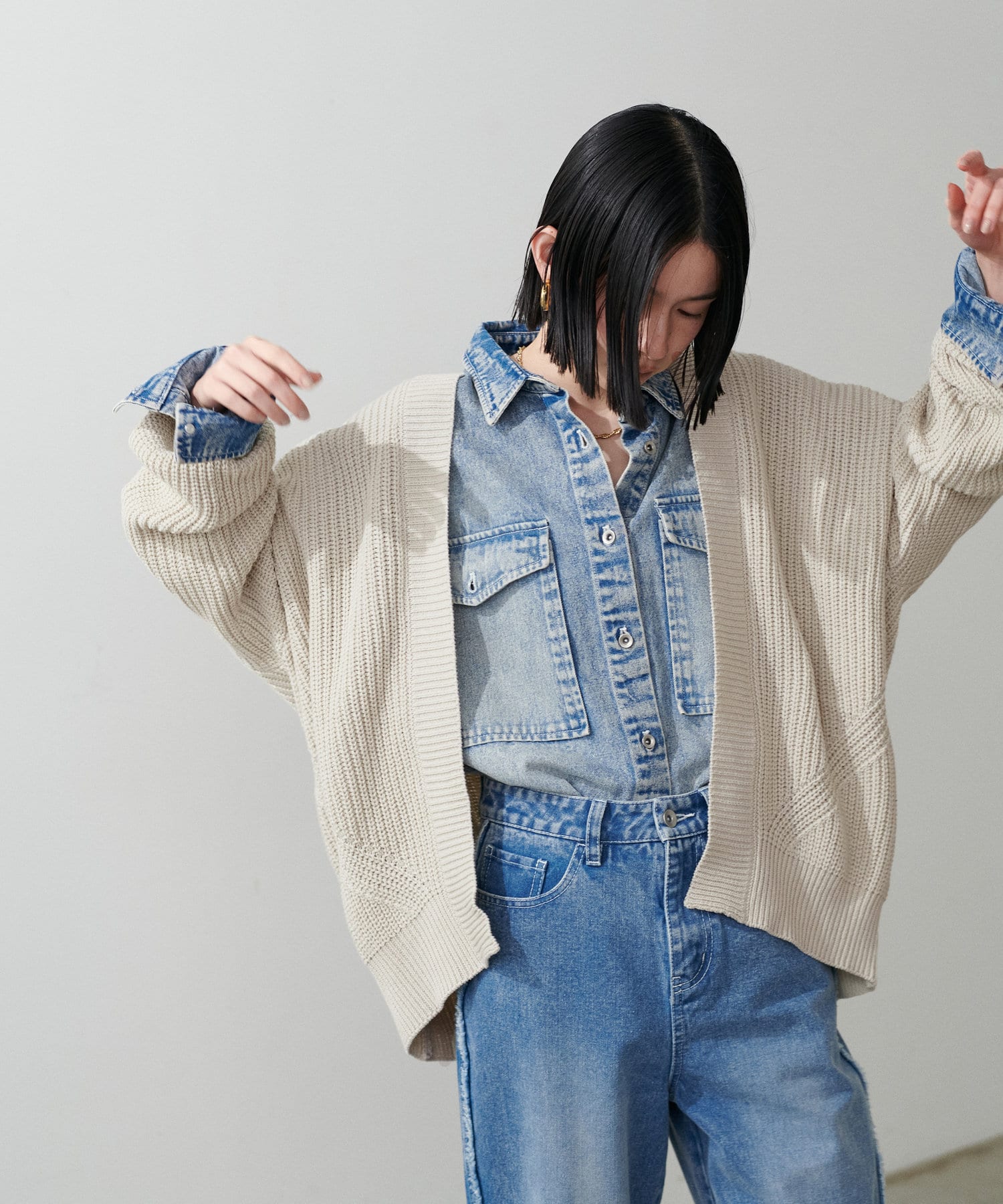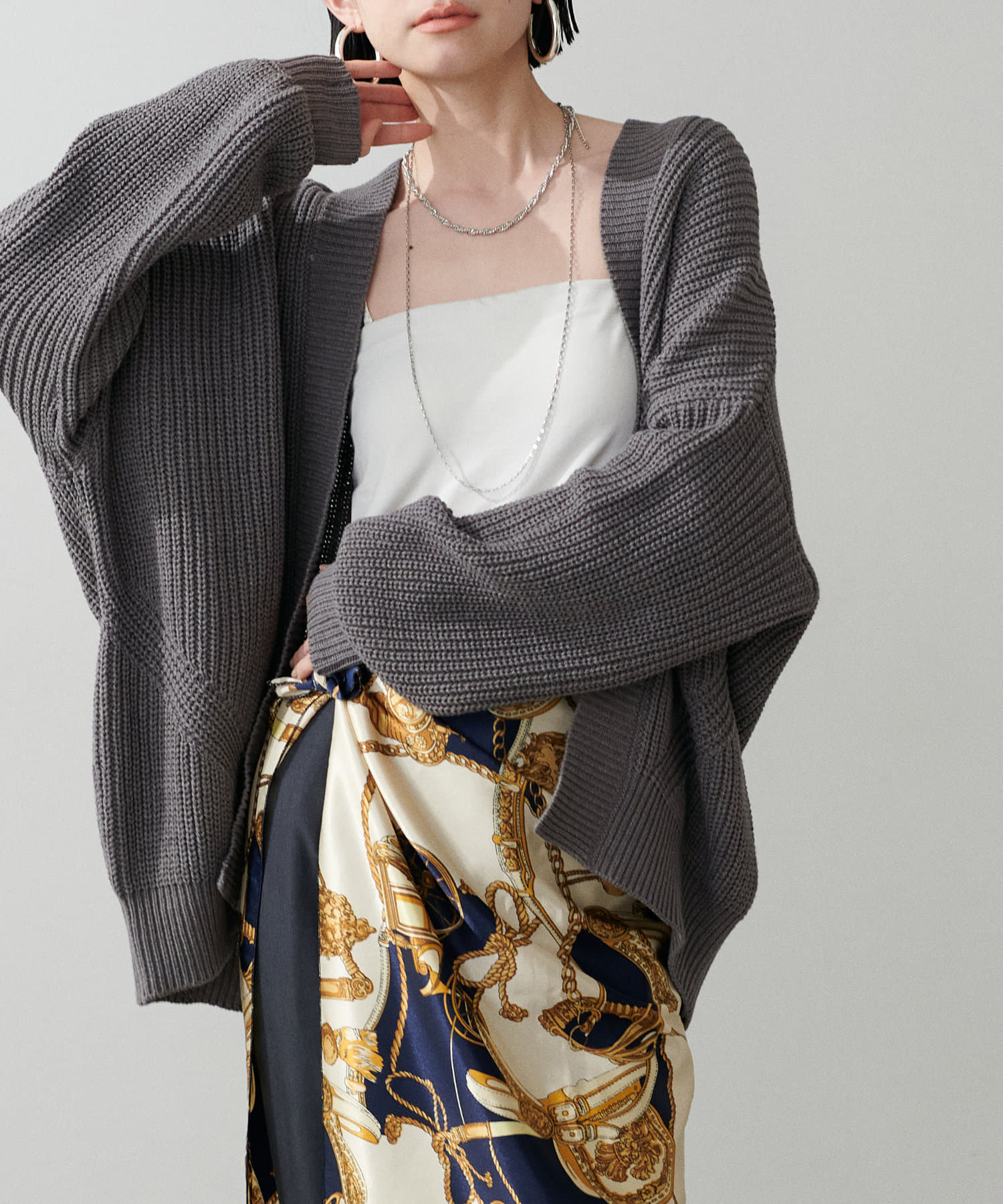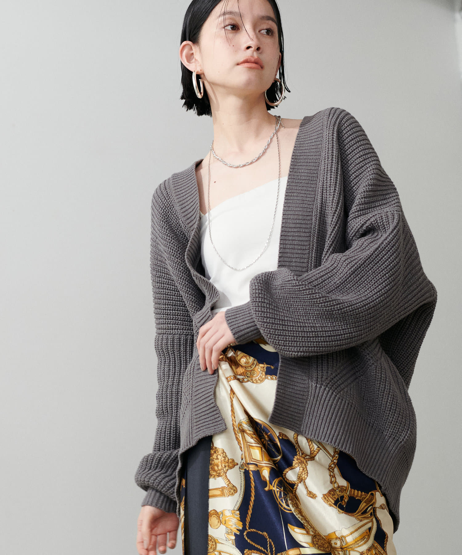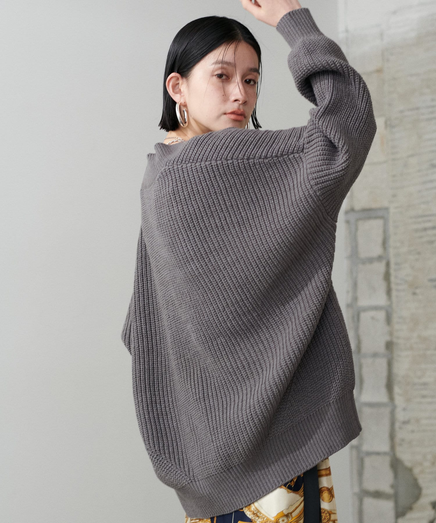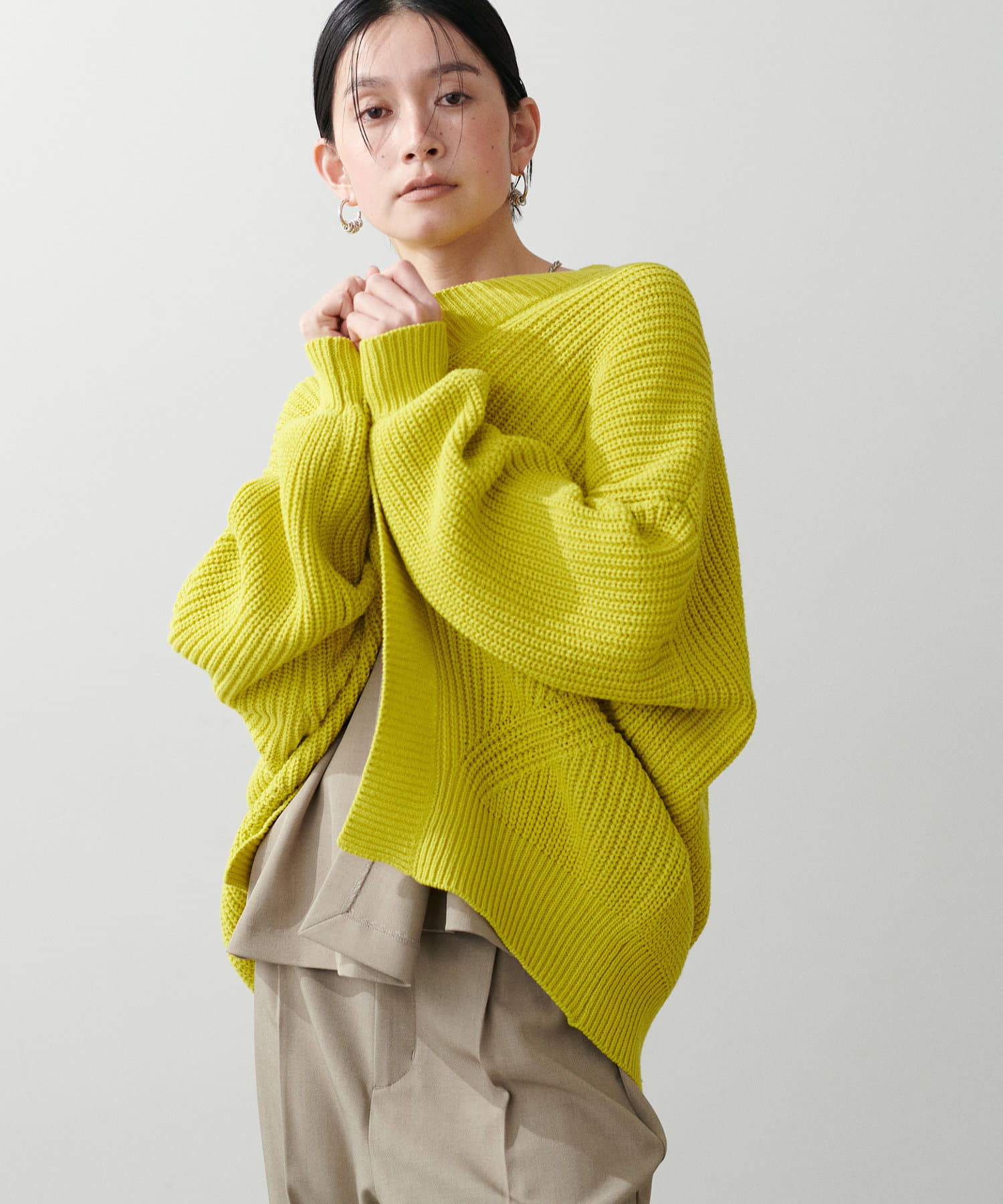 お尻まですっぽりの長めの着丈に、たっぷりとゆとりをもったドルマンスリーブで