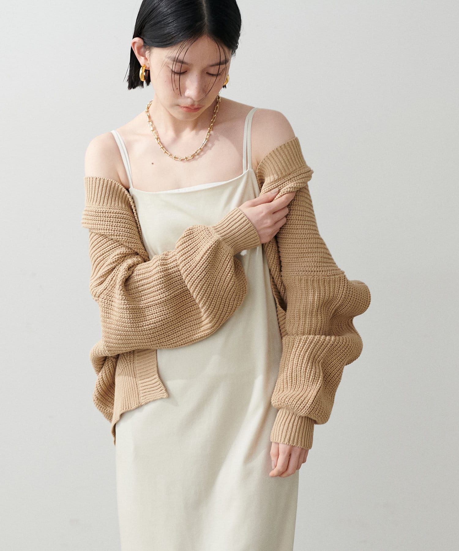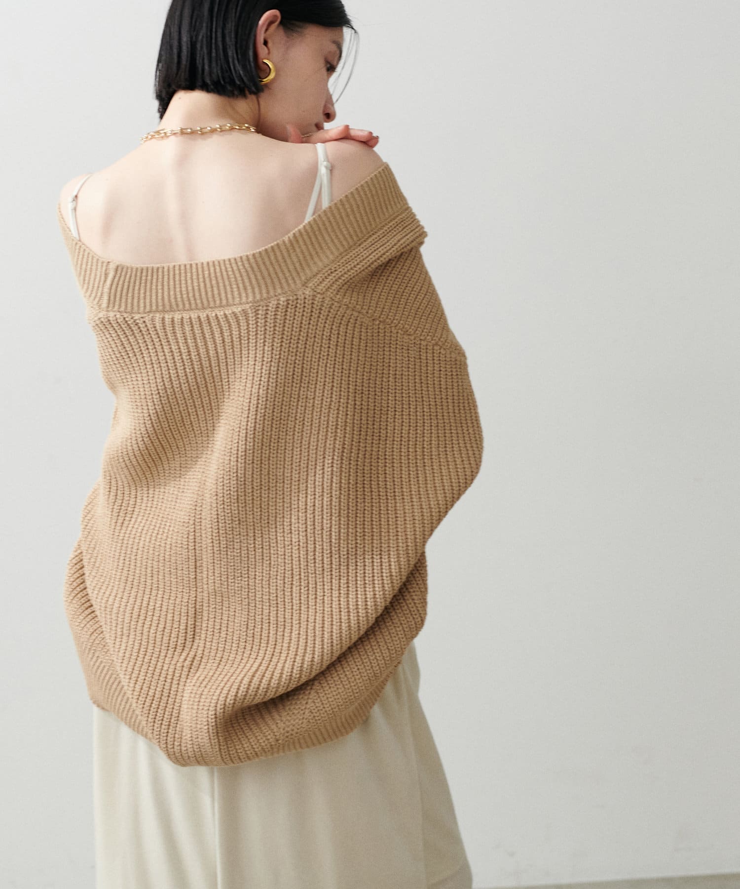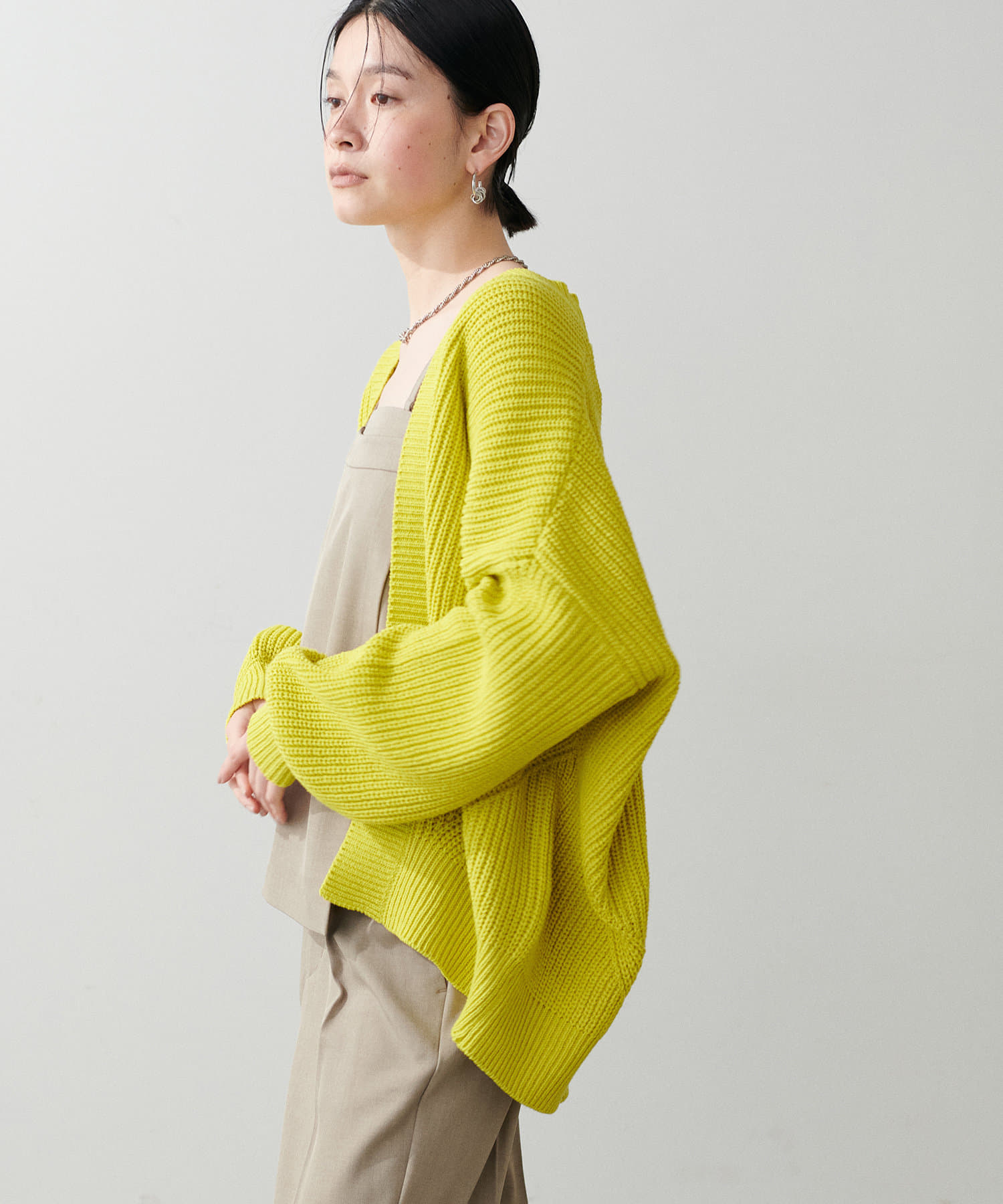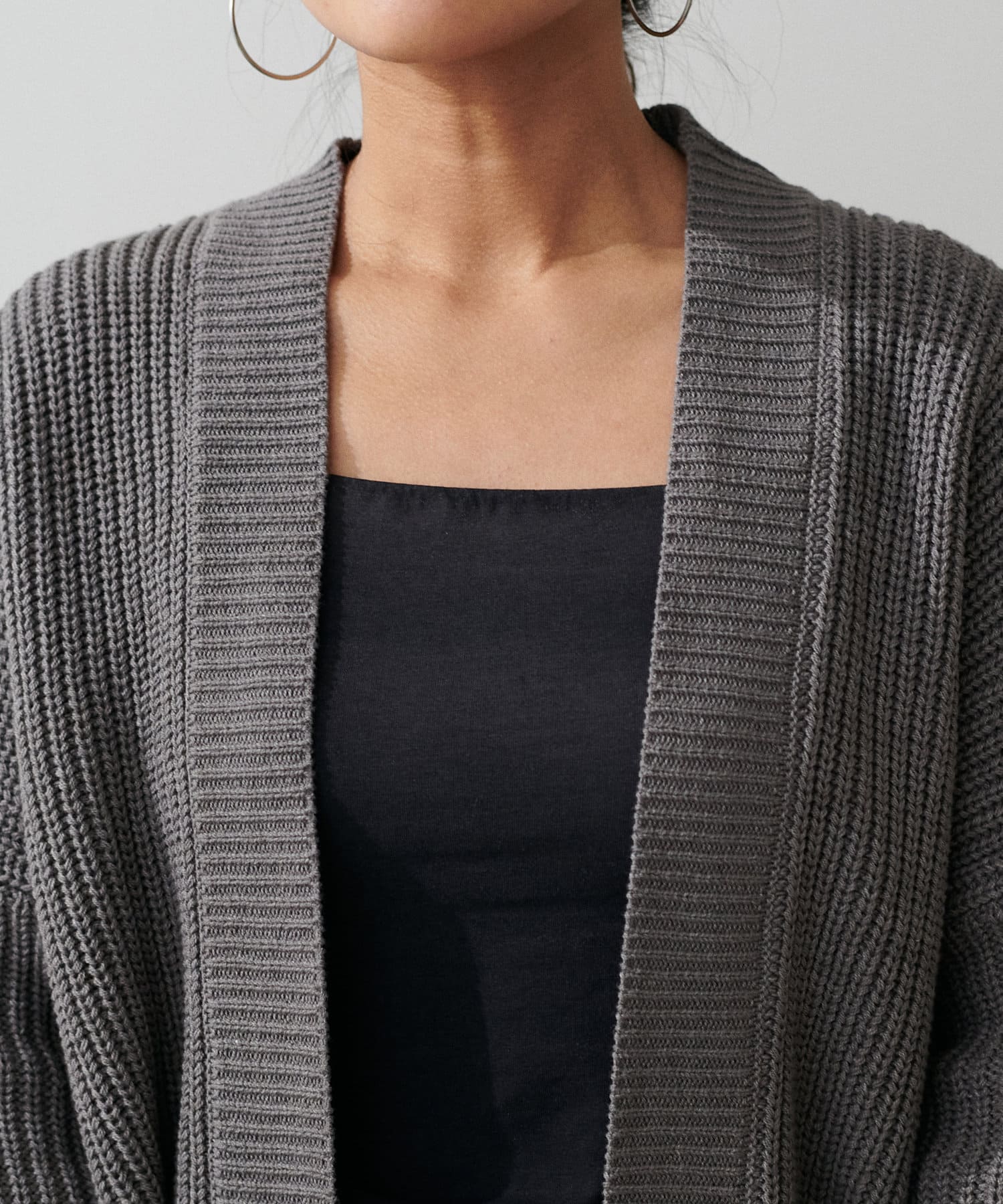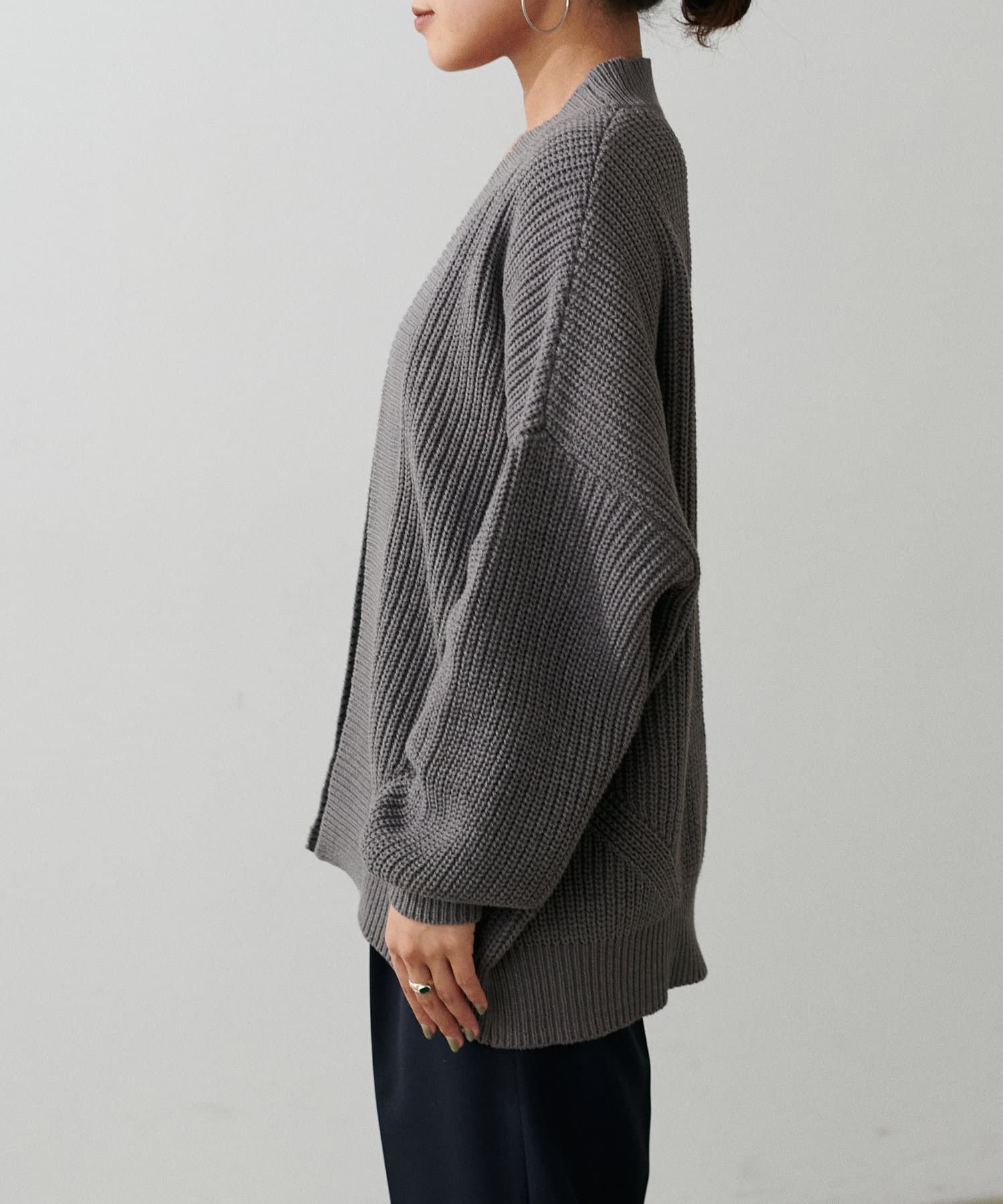 ドロップショルダー片畦ニットカーディガン
