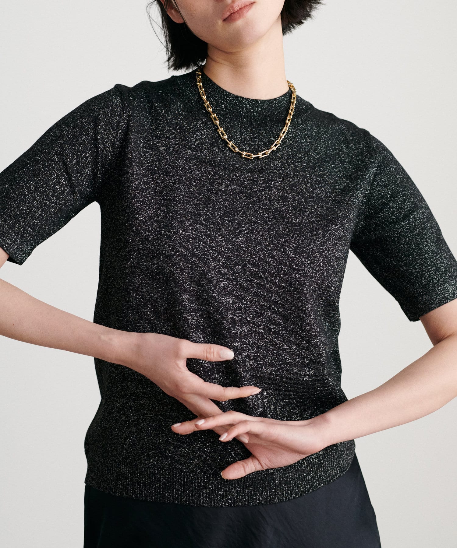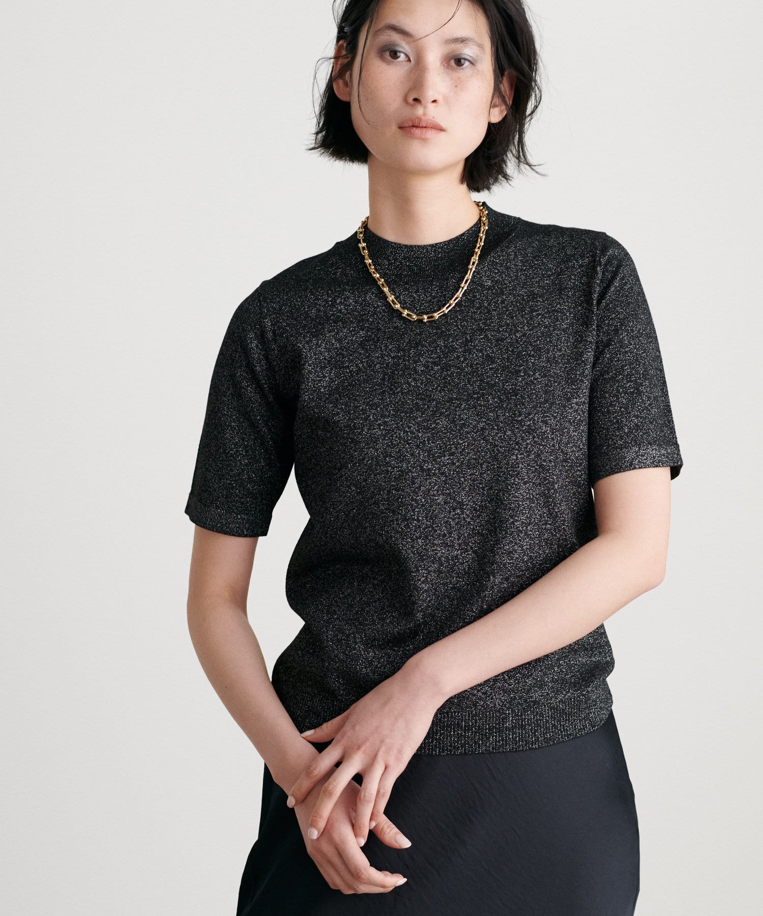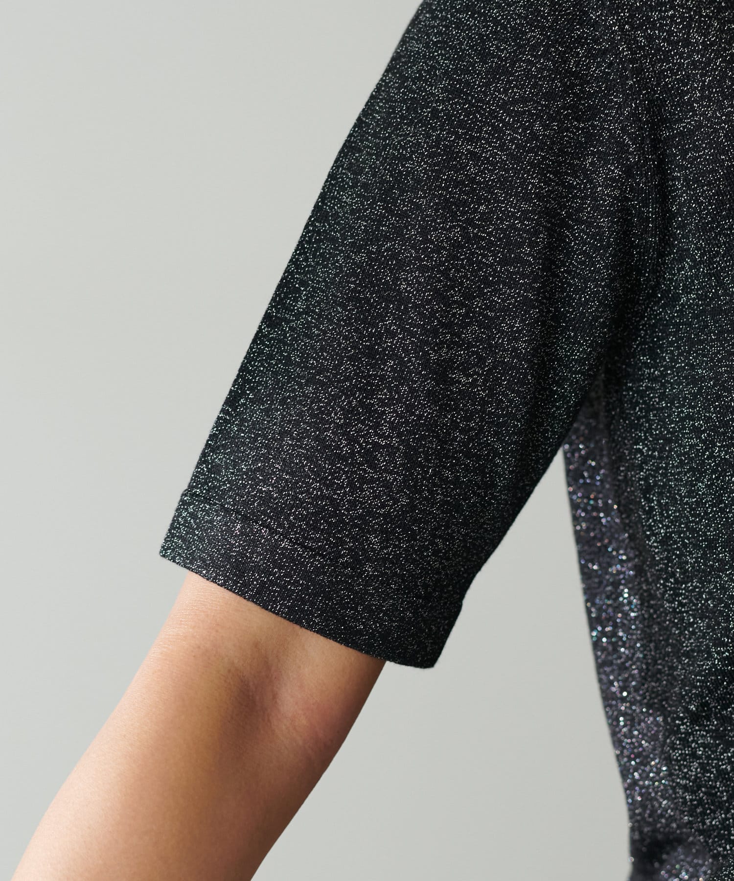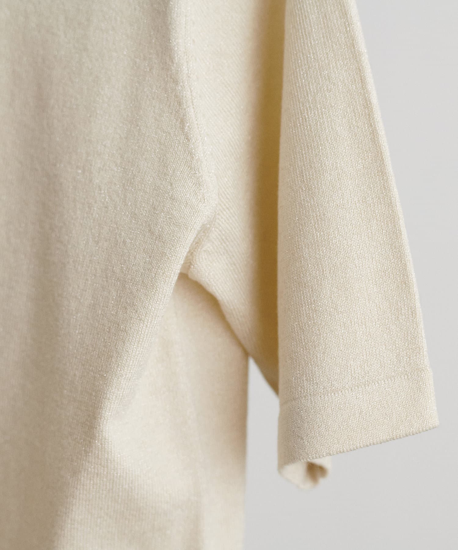 上品なラメの表情がポイントの半袖ニットプルオーバー。