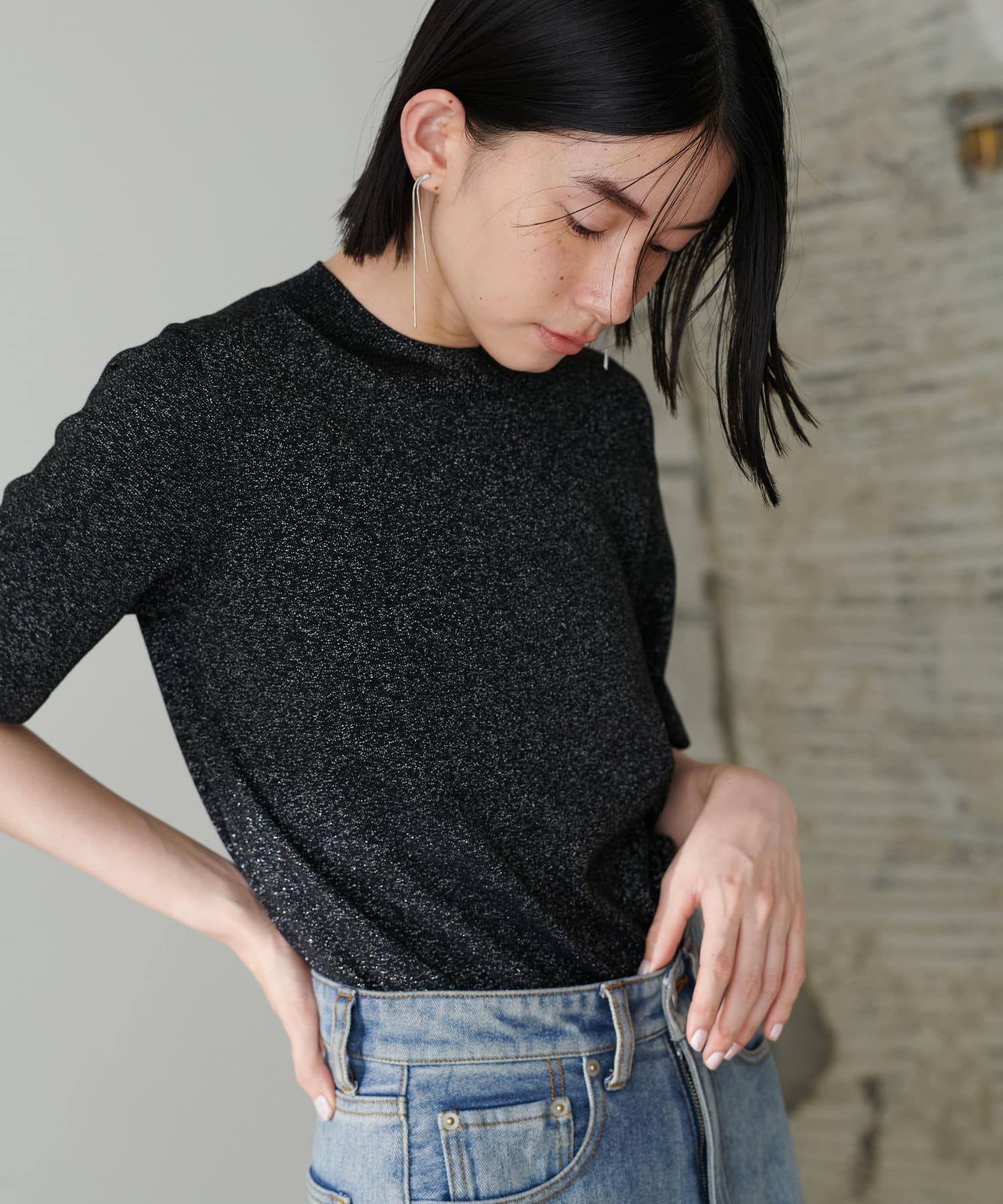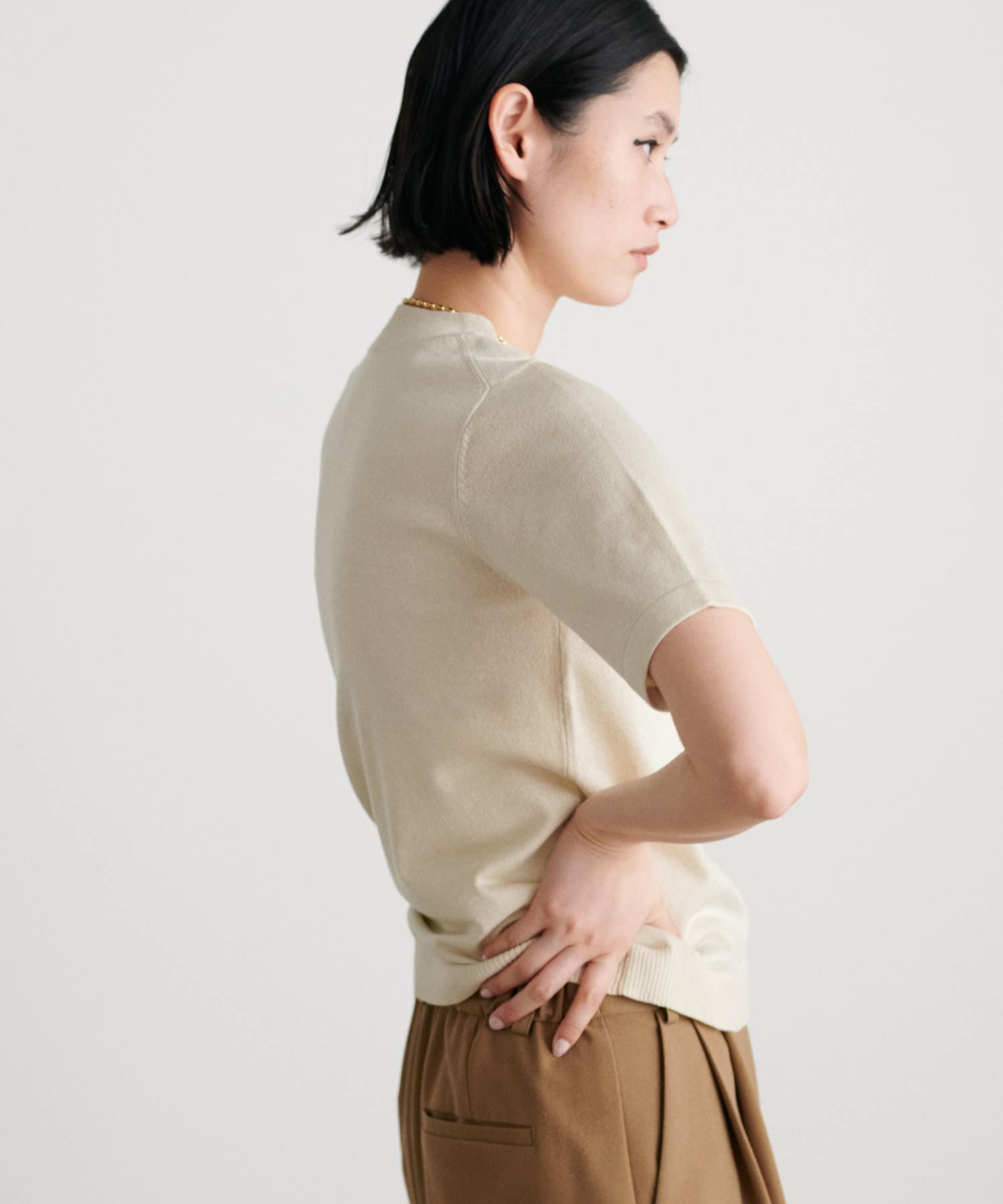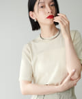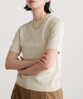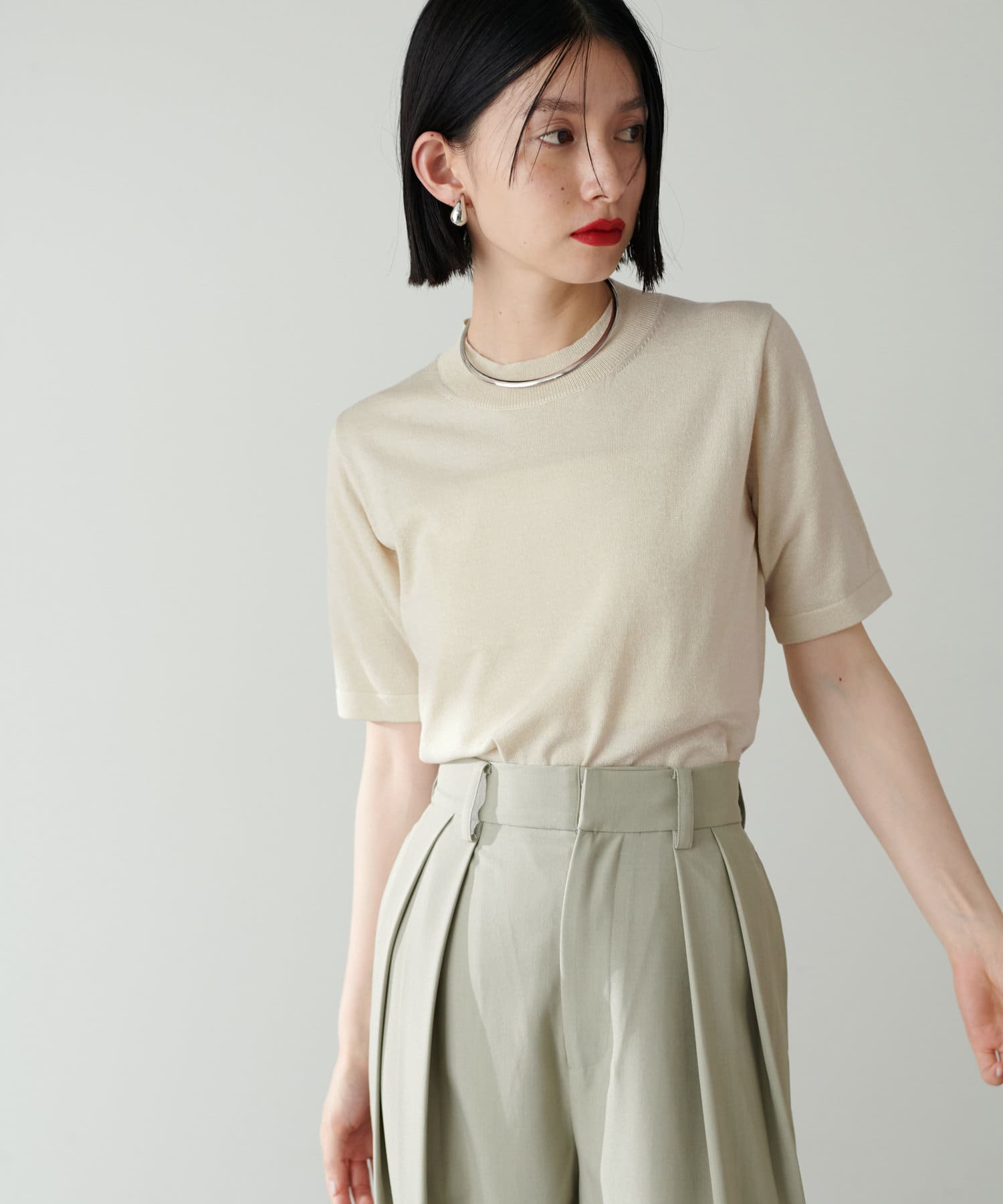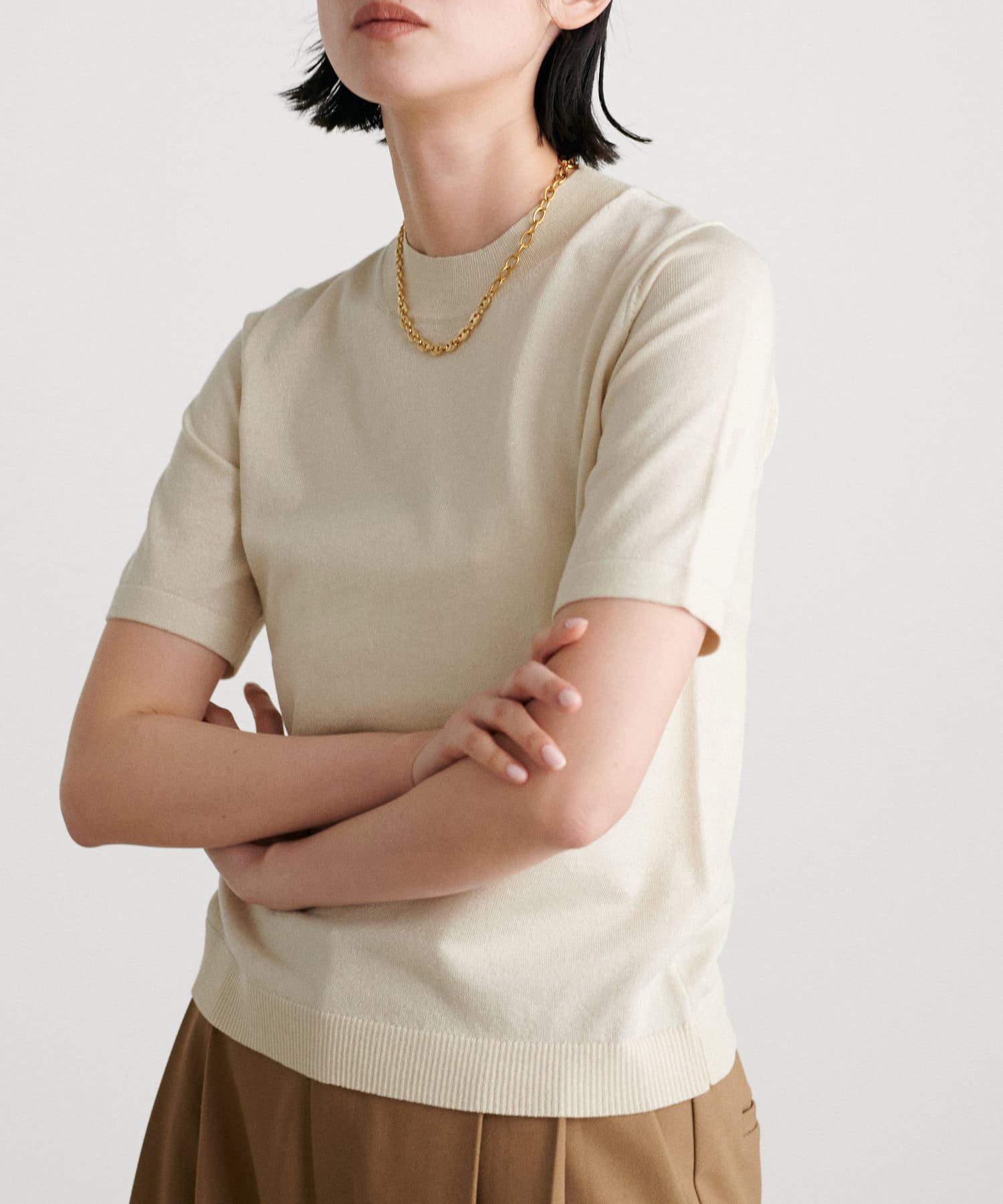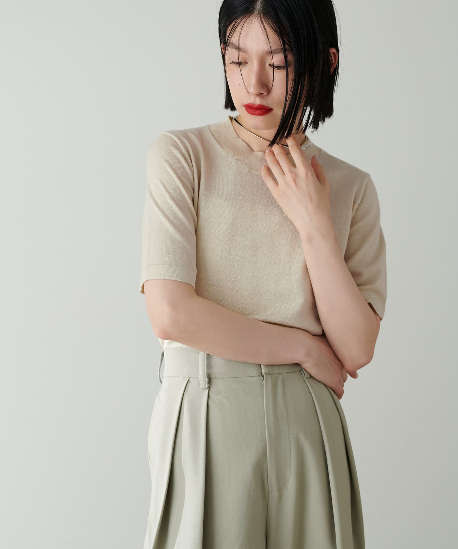上品なラメの表情がポイントの半袖ニットプルオーバー。