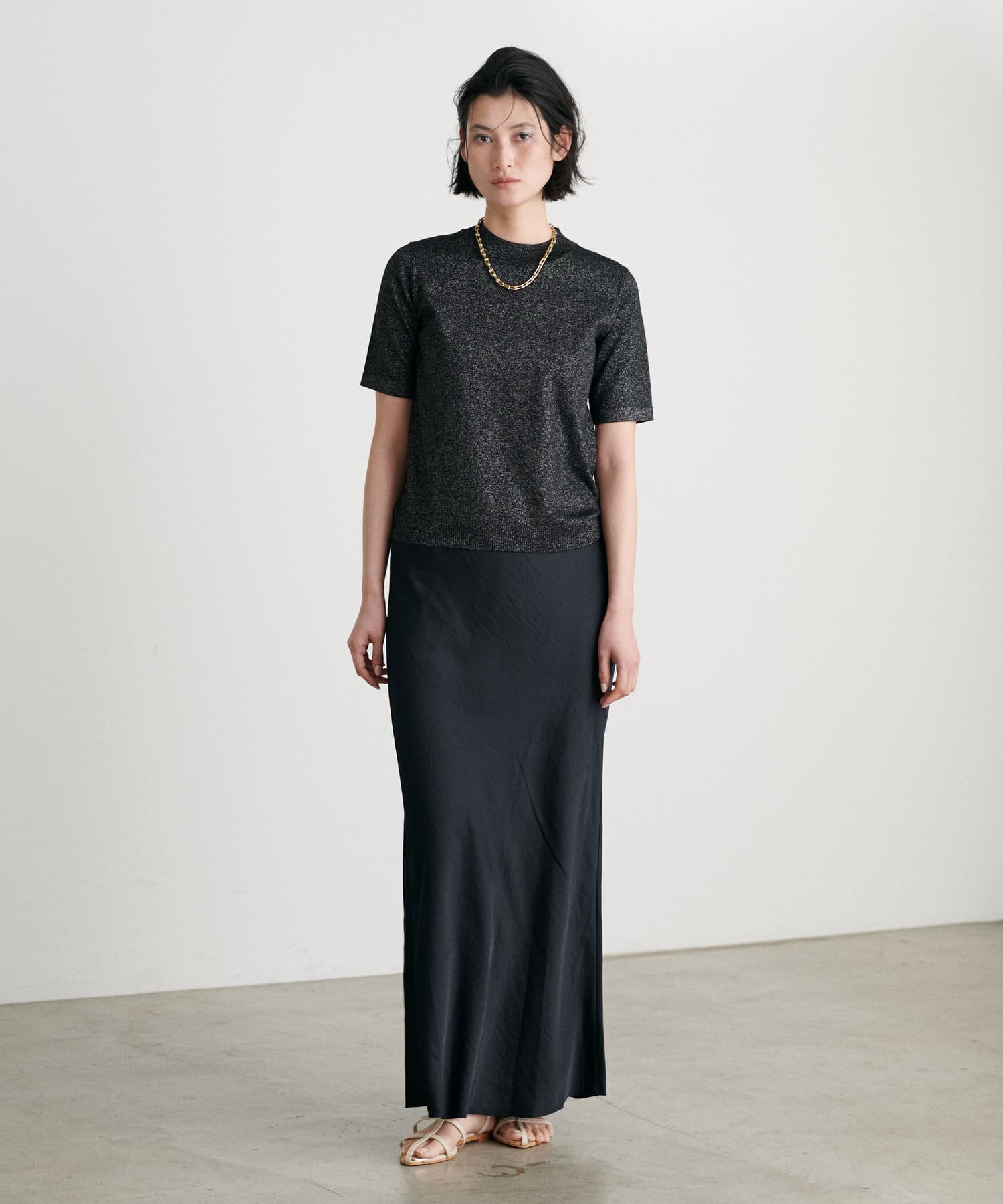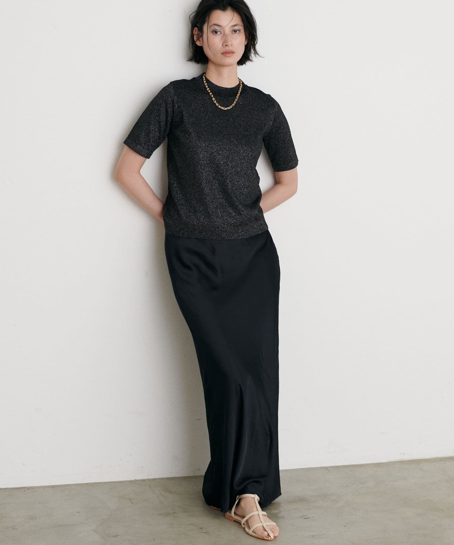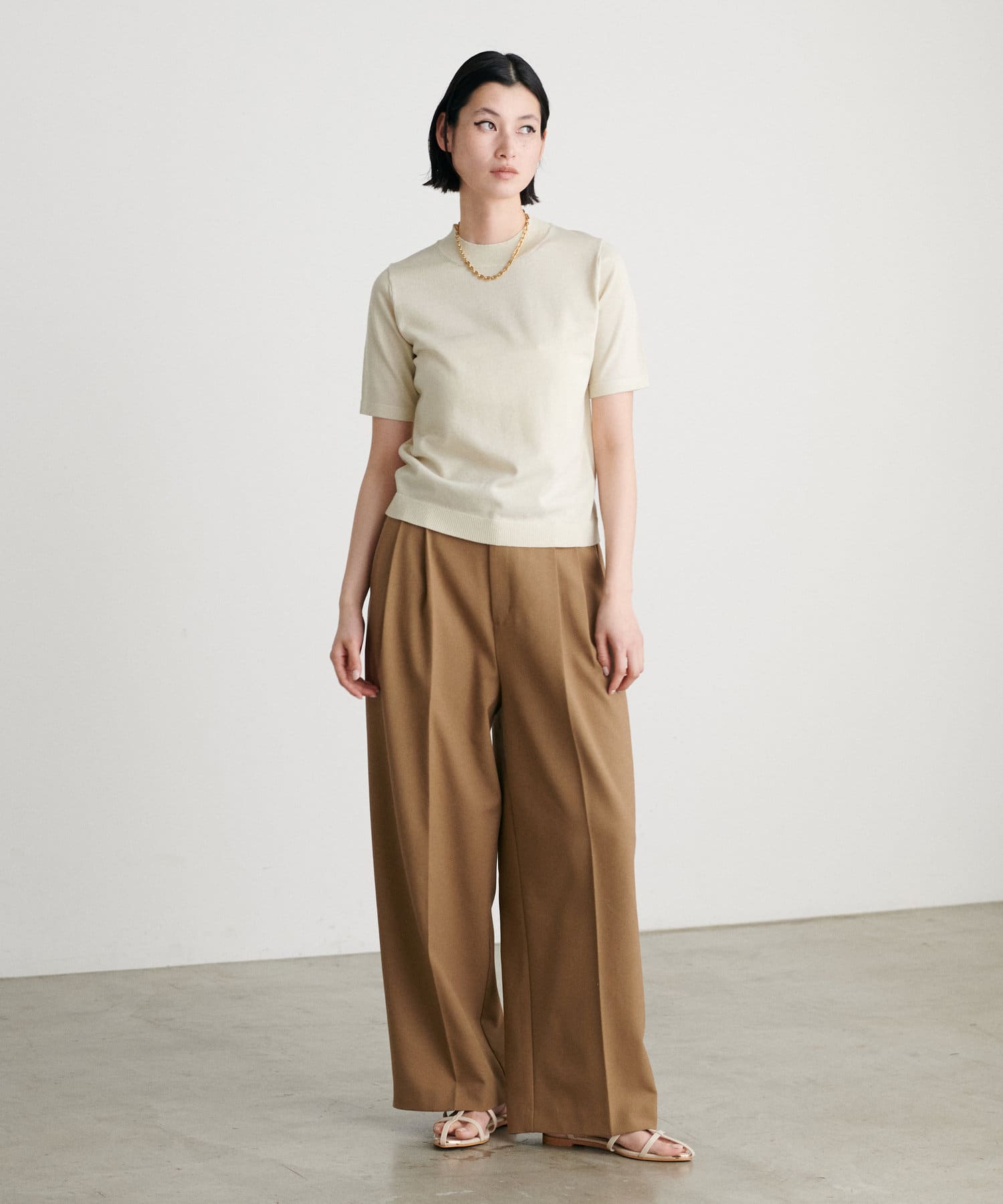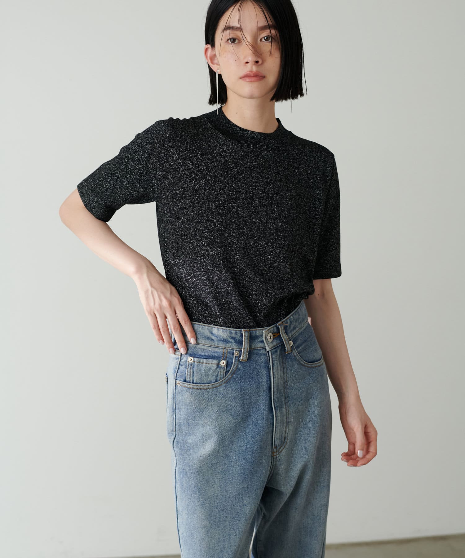 上品なラメの表情がポイントの半袖ニットプルオーバー。