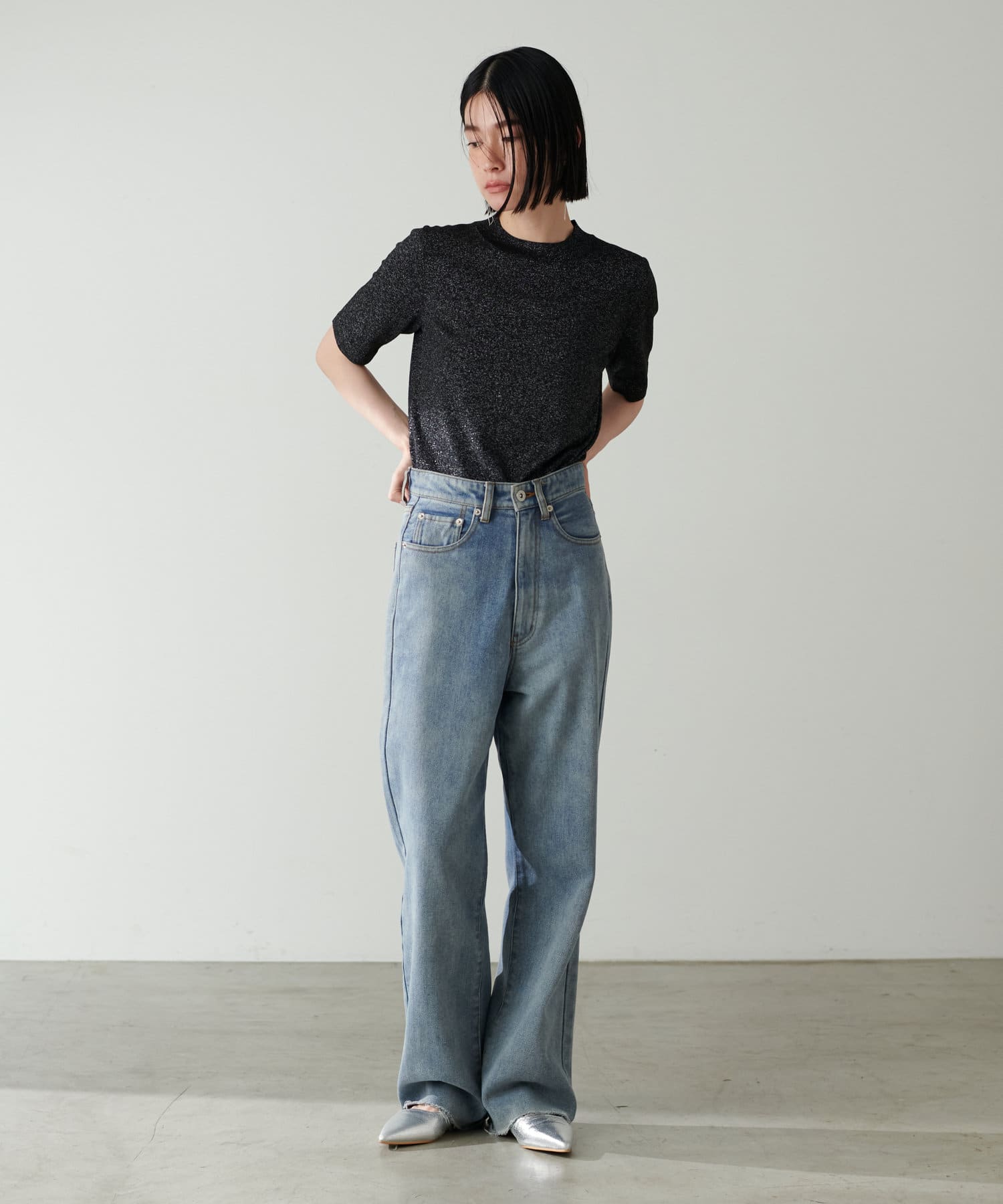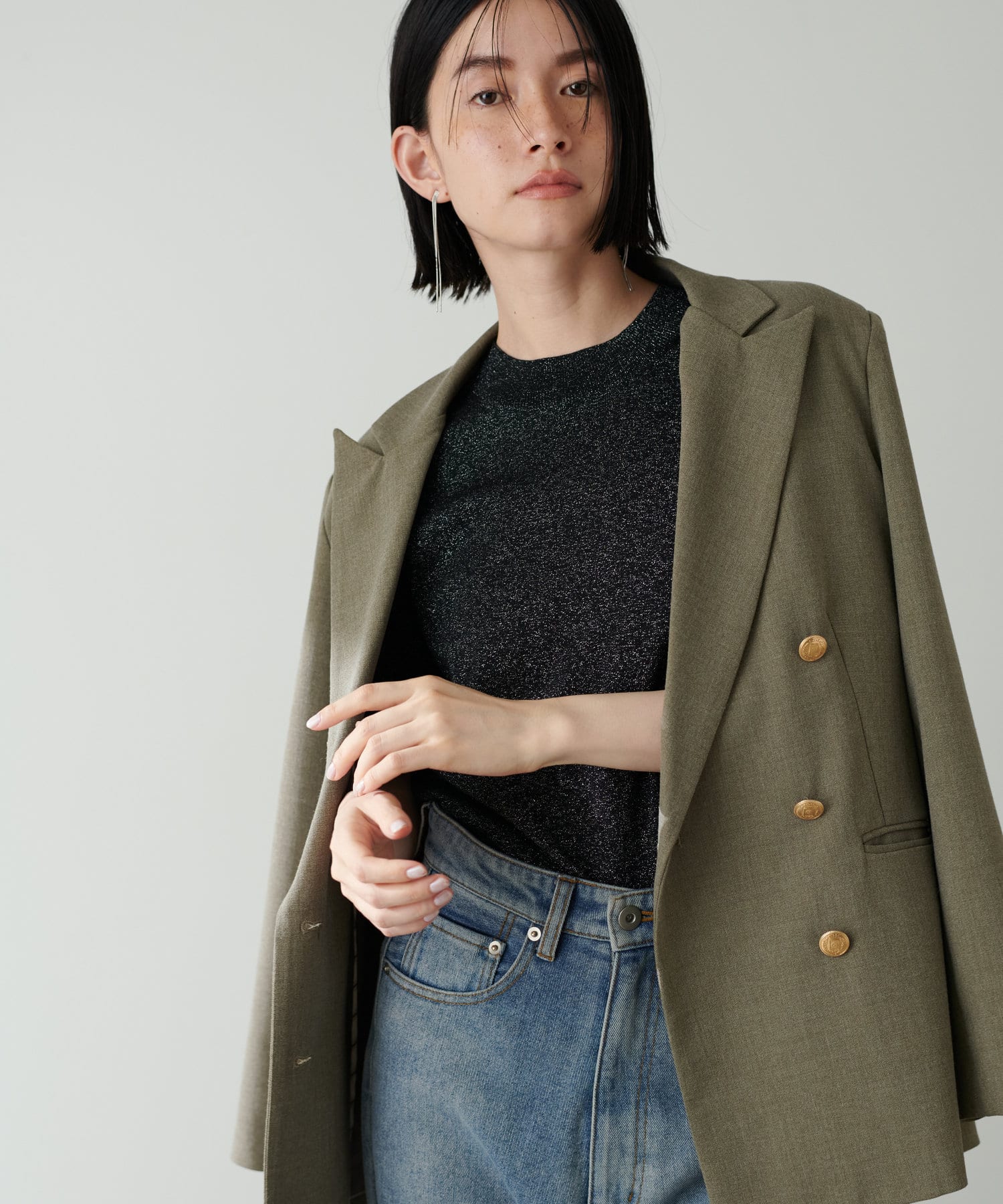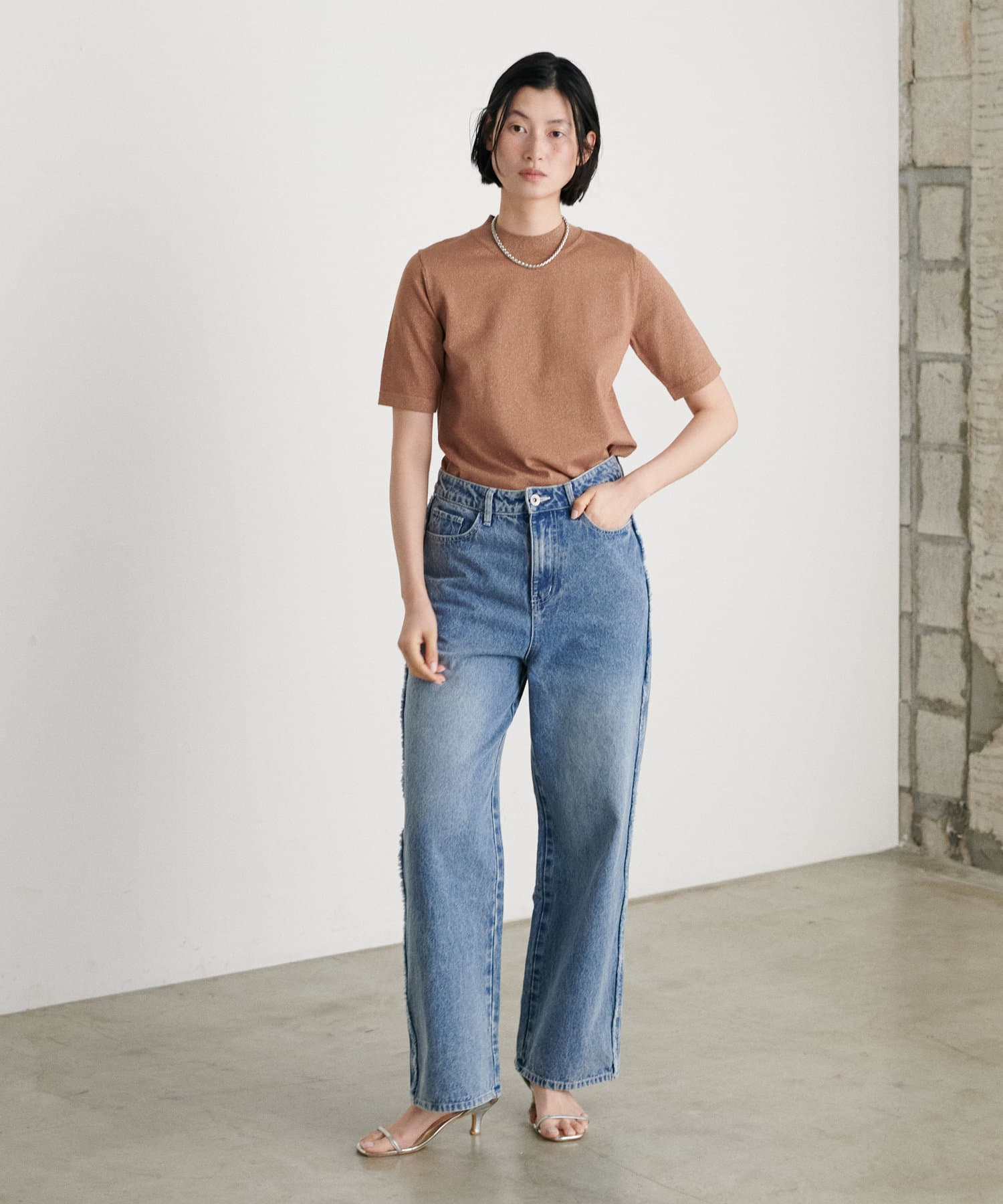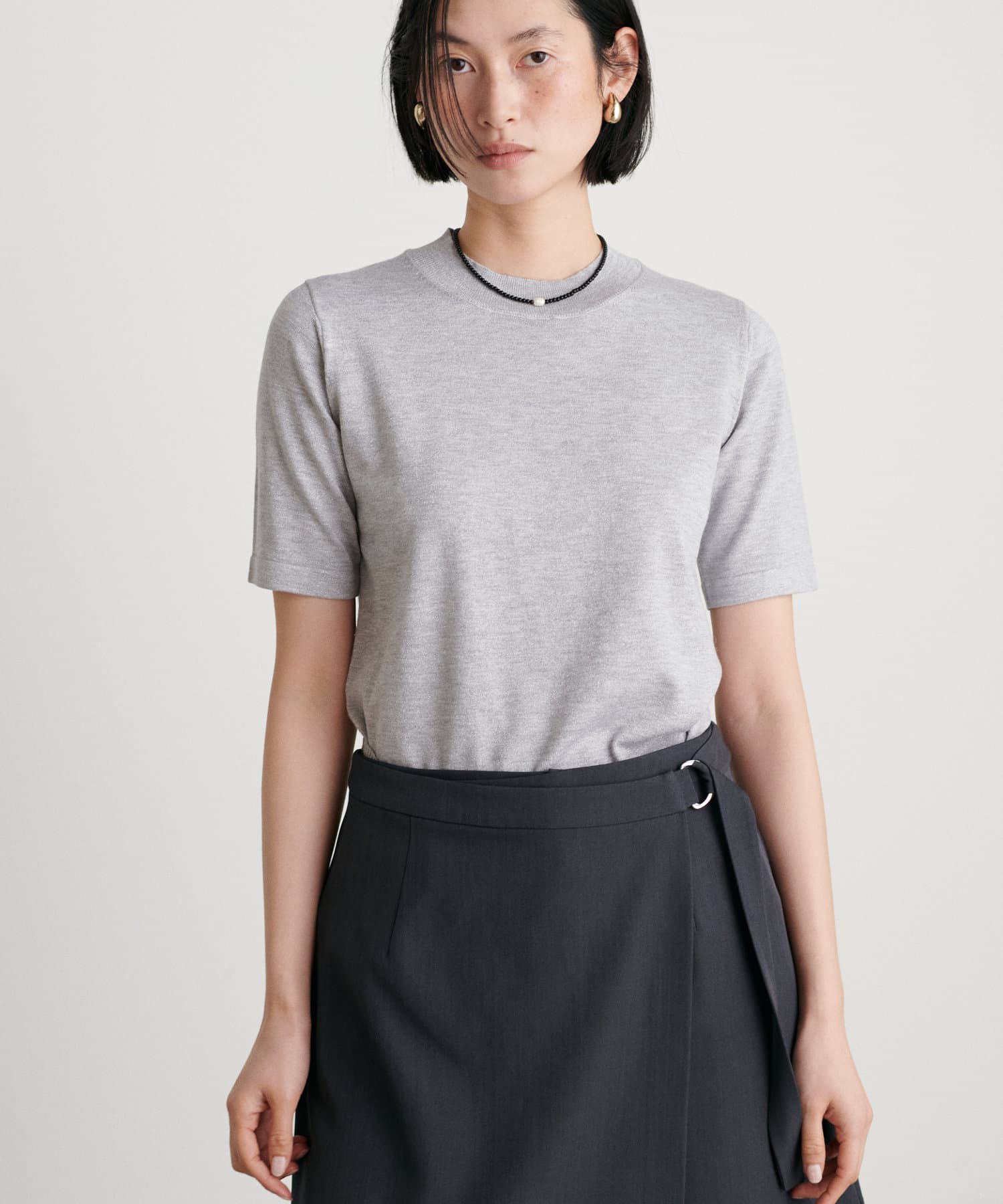 上品なラメの表情がポイントの半袖ニットプルオーバー。