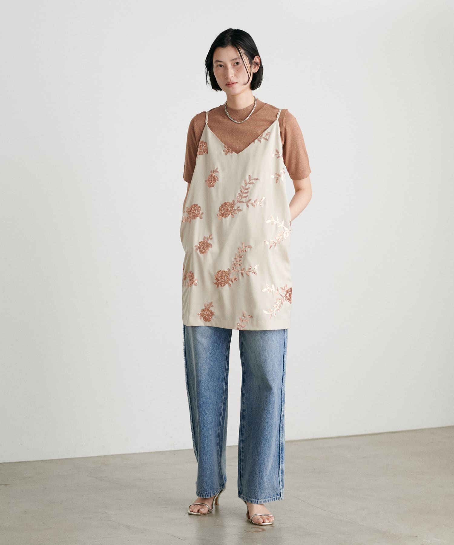 サロペットスカートやキャミワンピースと合わせるとコーデのアクセントに。