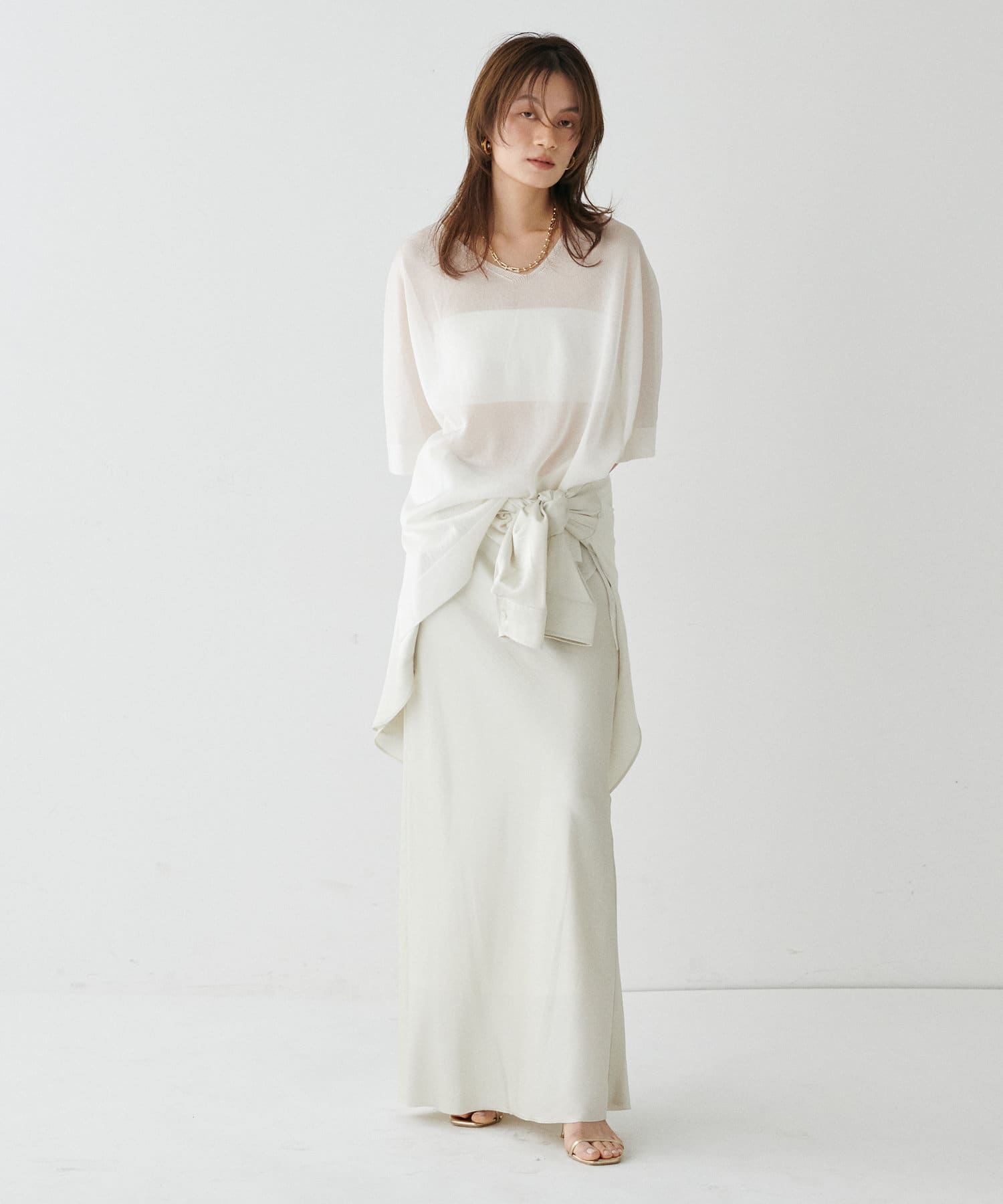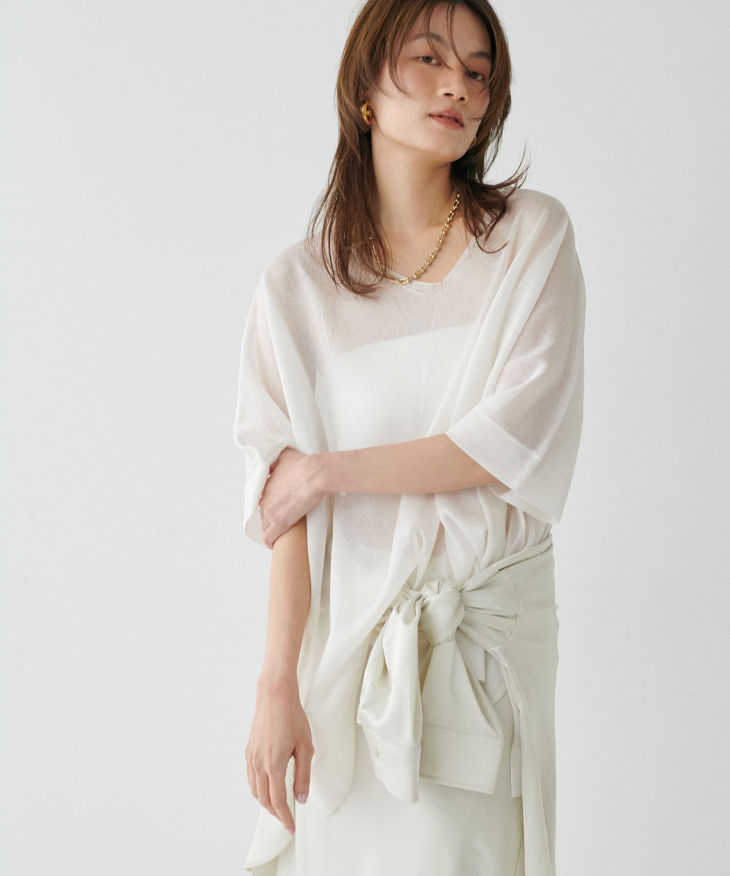 インナー次第で様々な表情にアレンジできるシアーニットは、