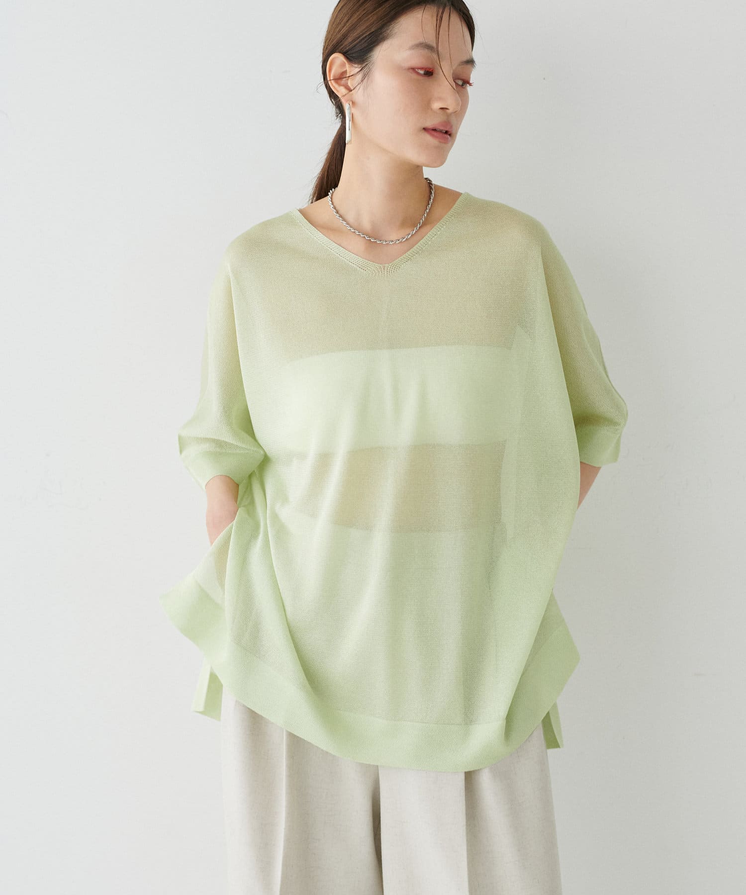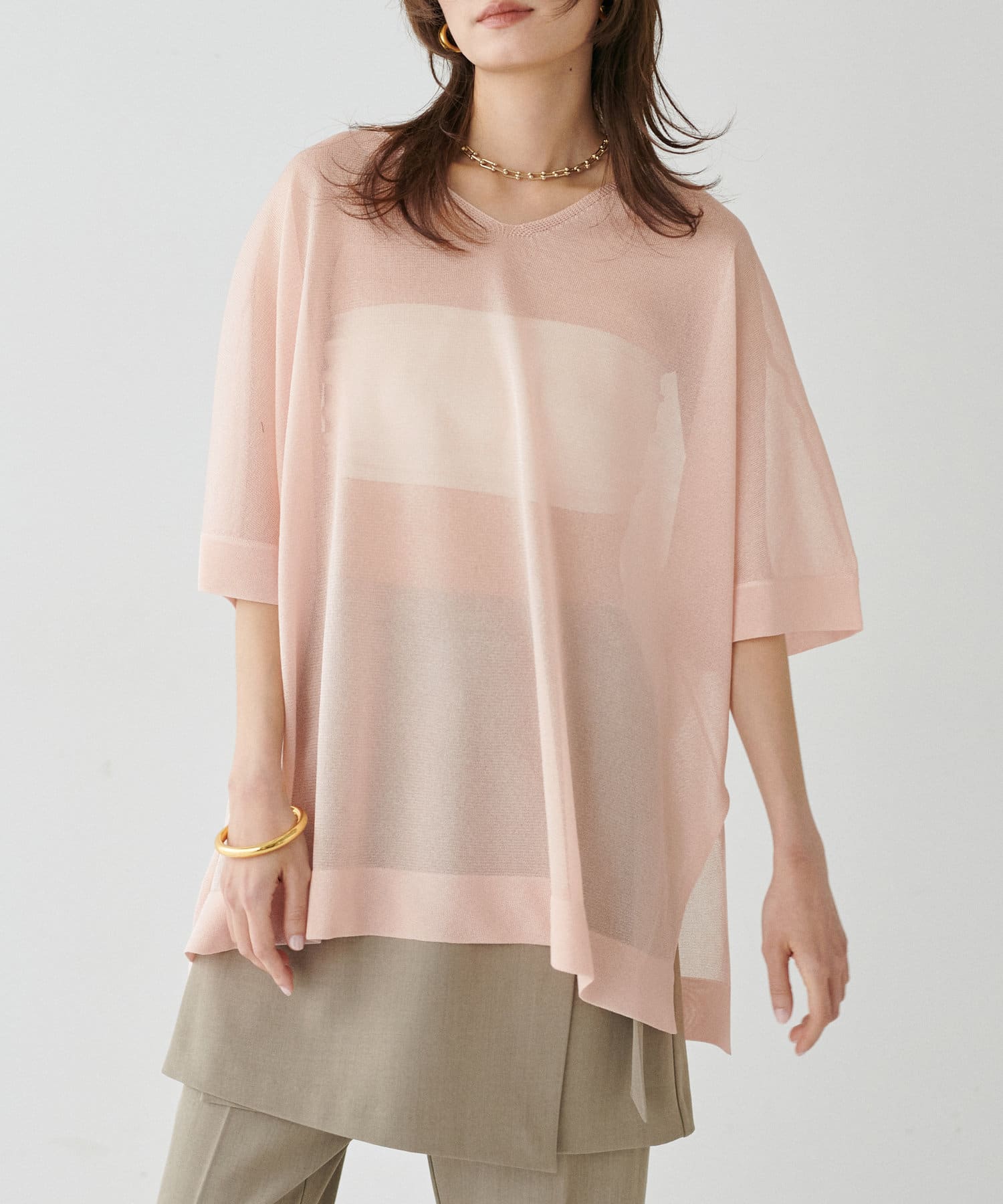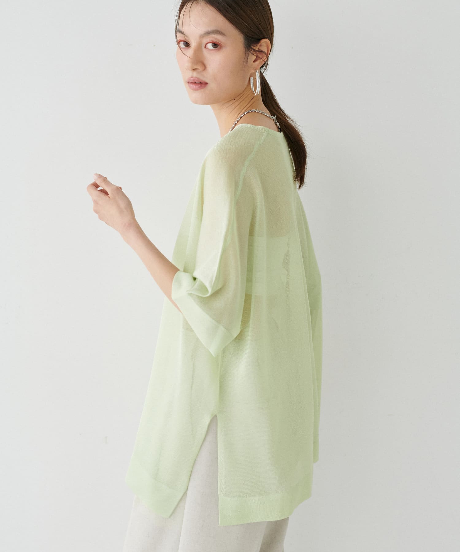 シアー素材で透け感を楽しむ、夏にぴったりのプルオーバー。