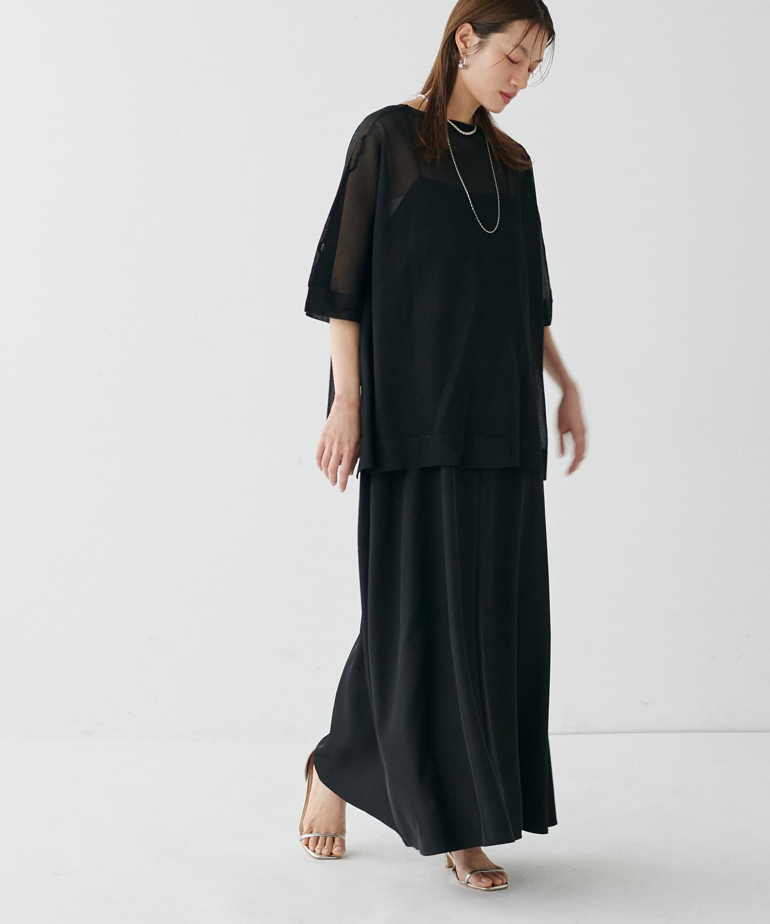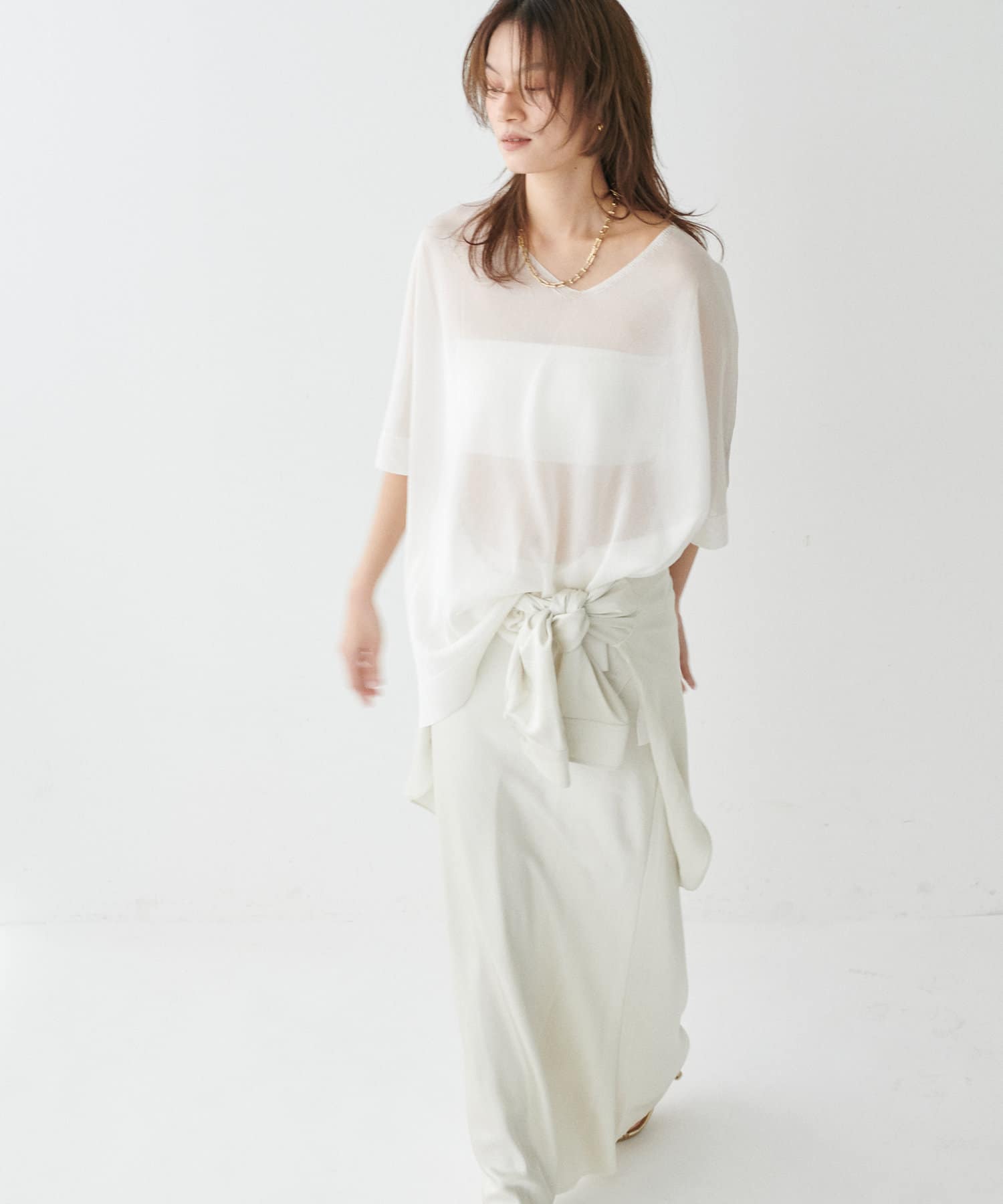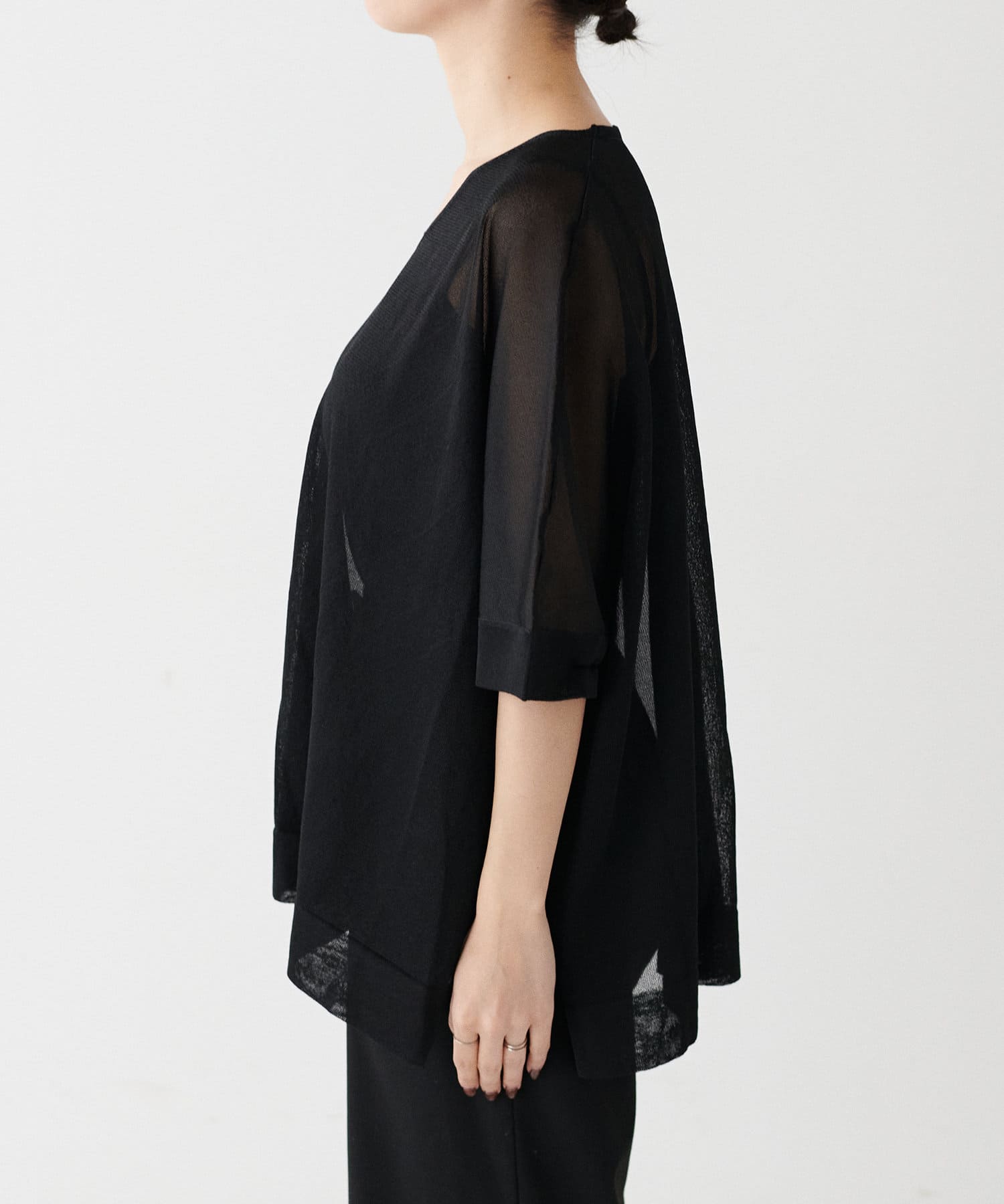 シアー素材で透け感を楽しむ、夏にぴったりのプルオーバー。