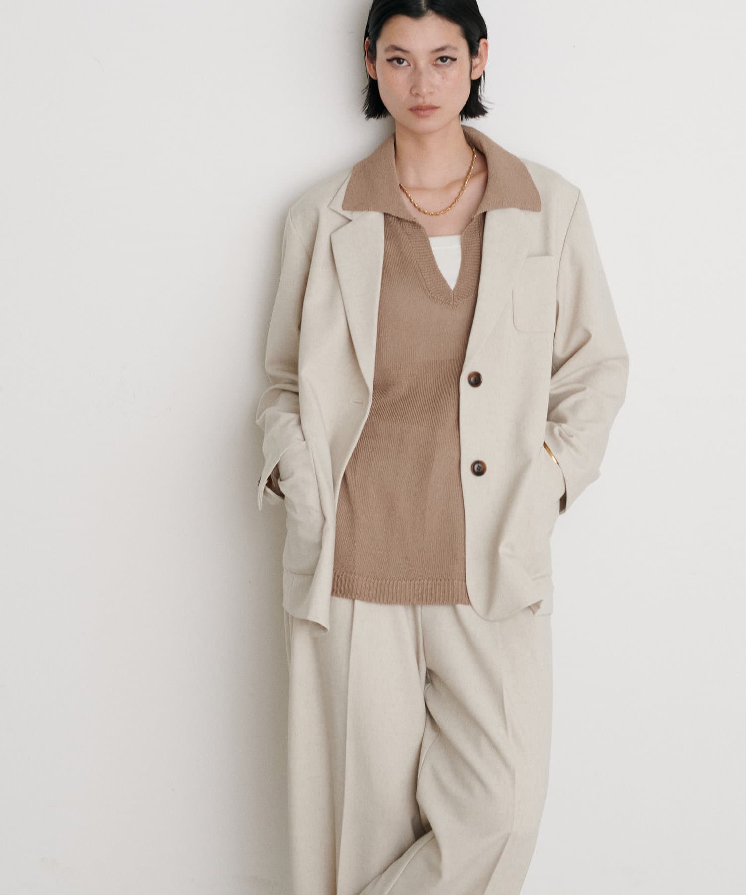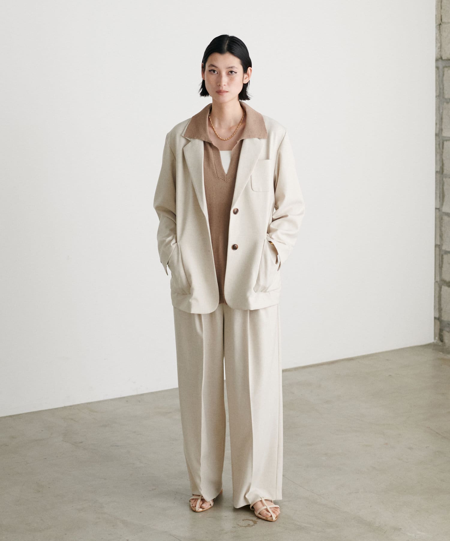 肩を落としてルーズにお召いただくとこなれ感のある印象に。