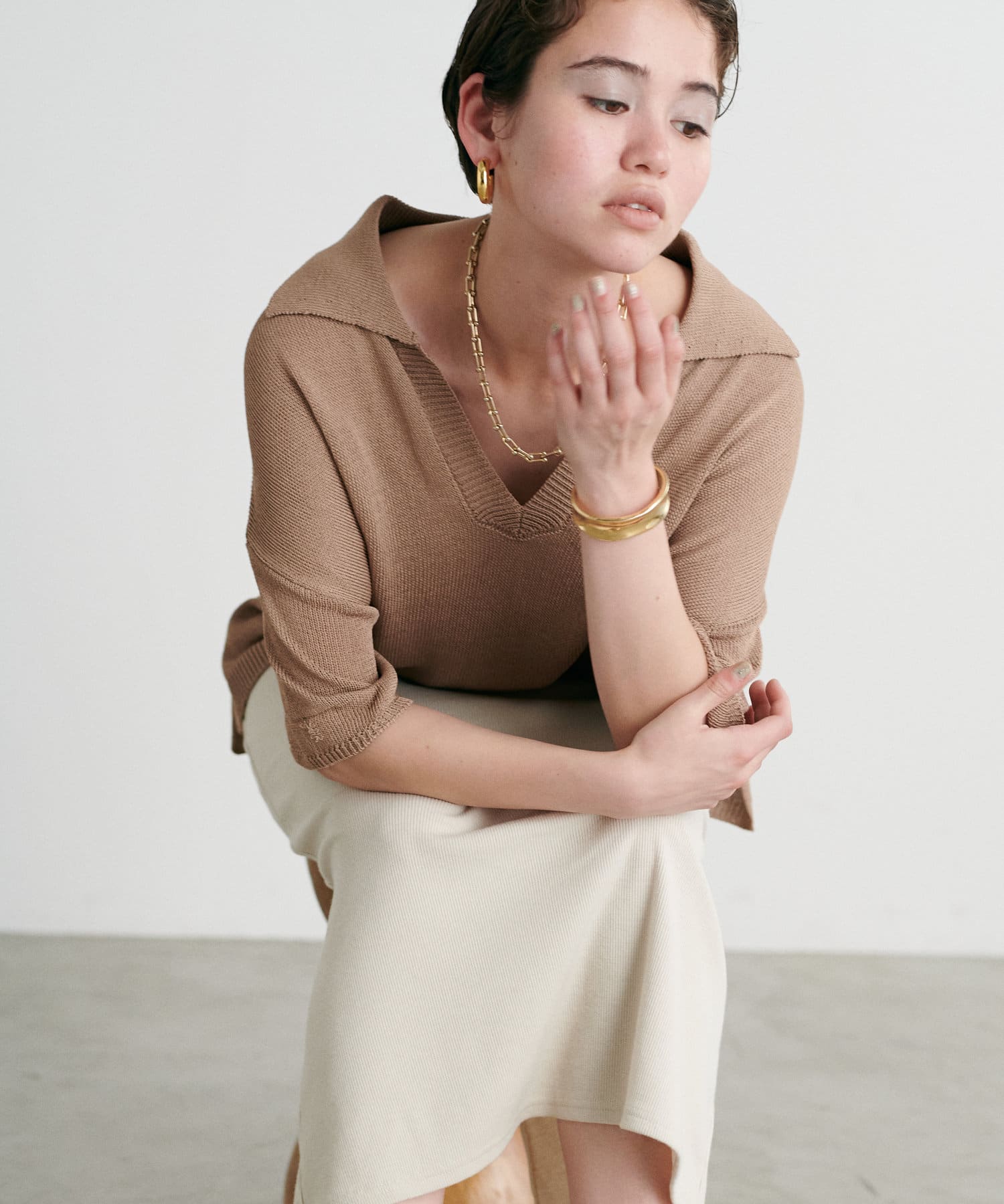 落ち感のある柔らかな素材が、女性らしい曲線を描いてくれます。