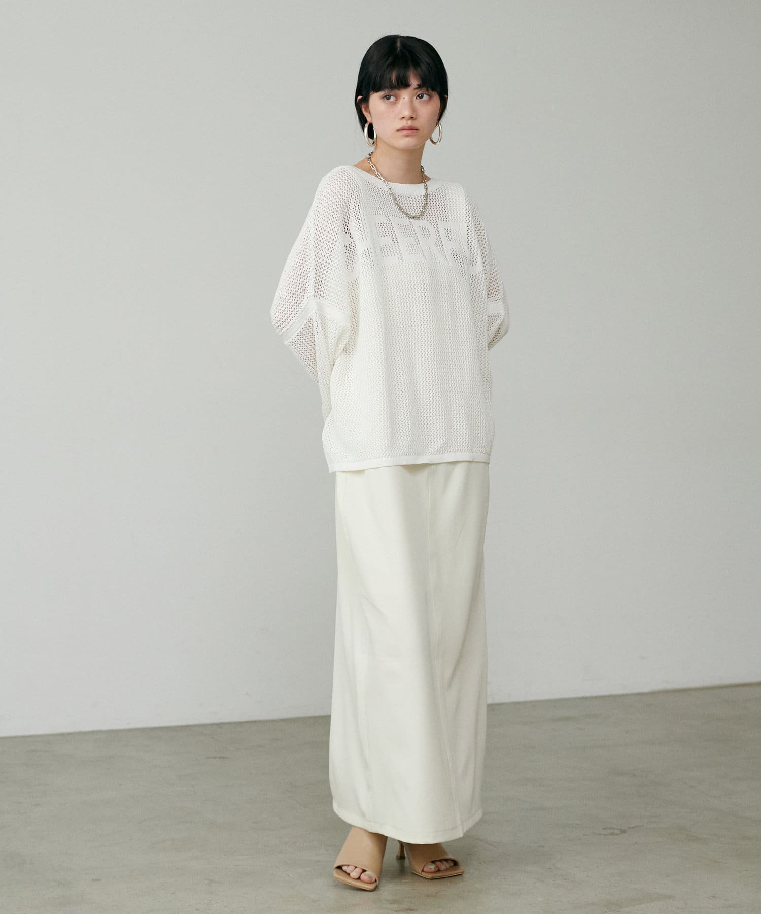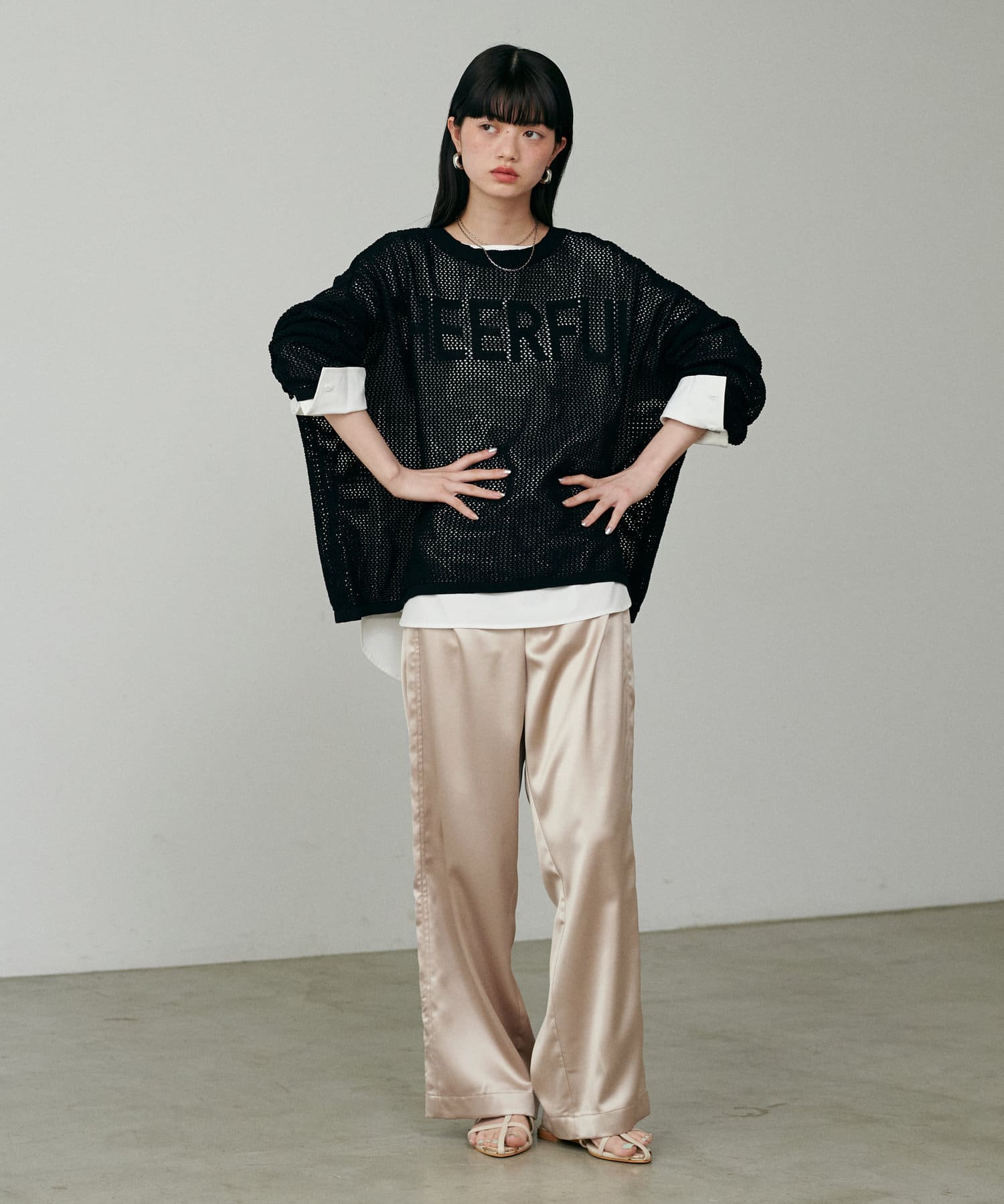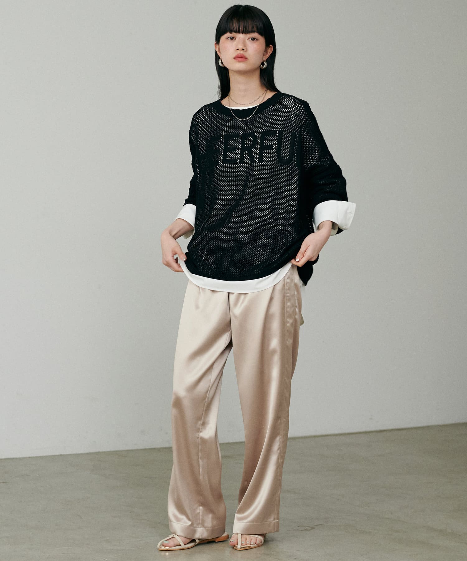 程良く透ける素材感と同色のブランドロゴが着映えるデザイン。