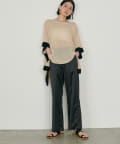 広めのネックラインは、デコルテを美しく見せ、抜け感をプラス。
