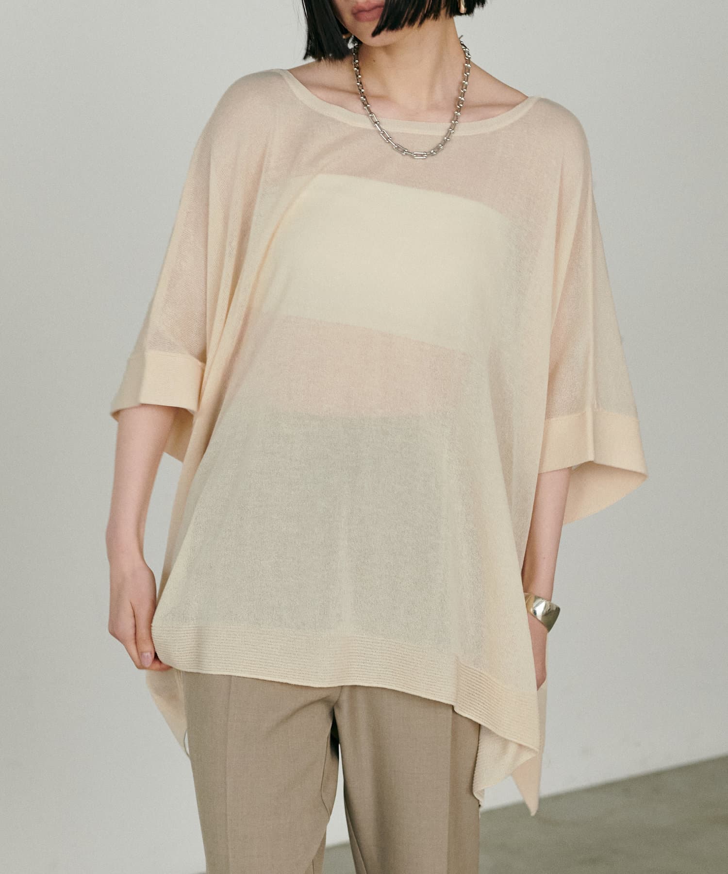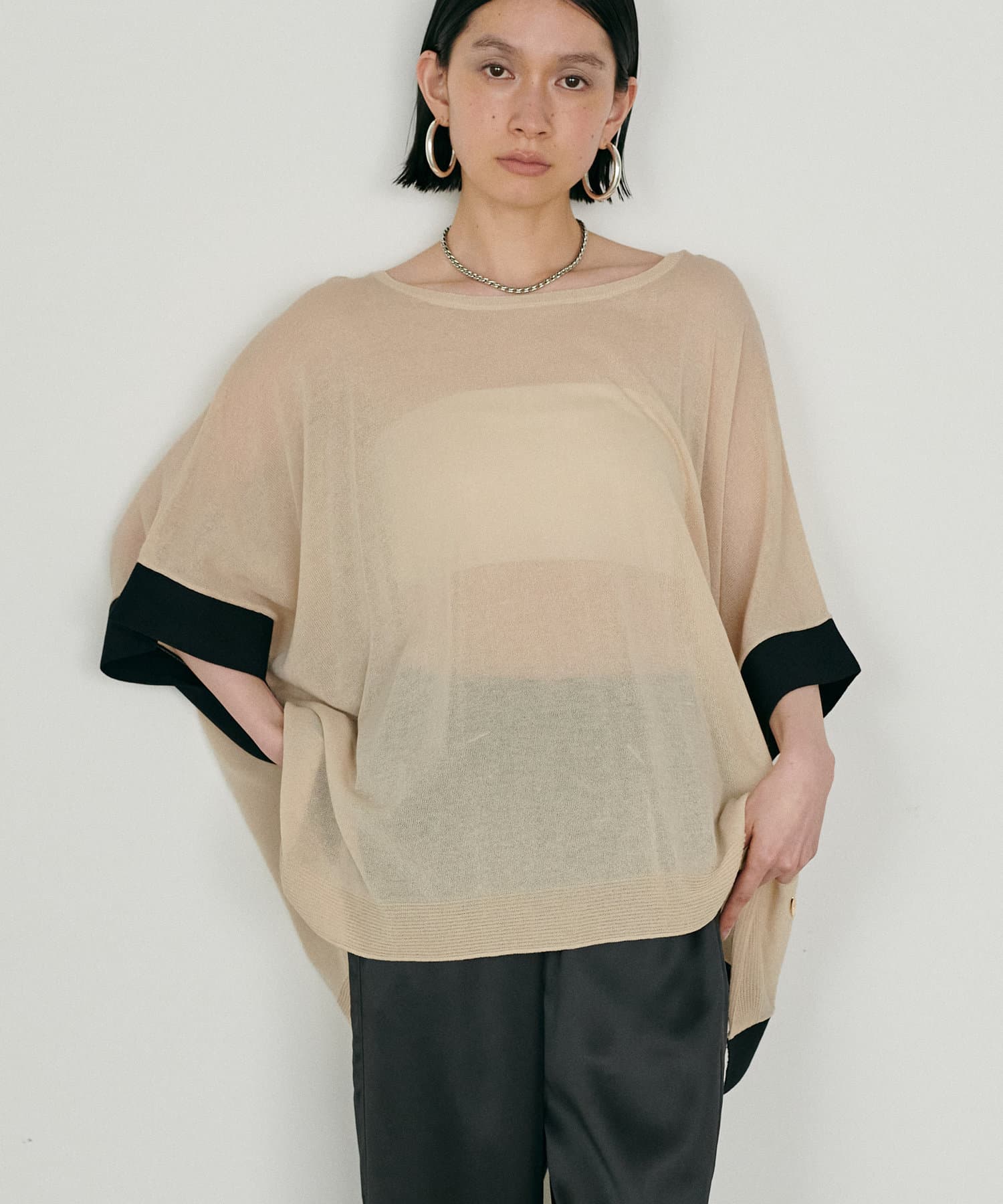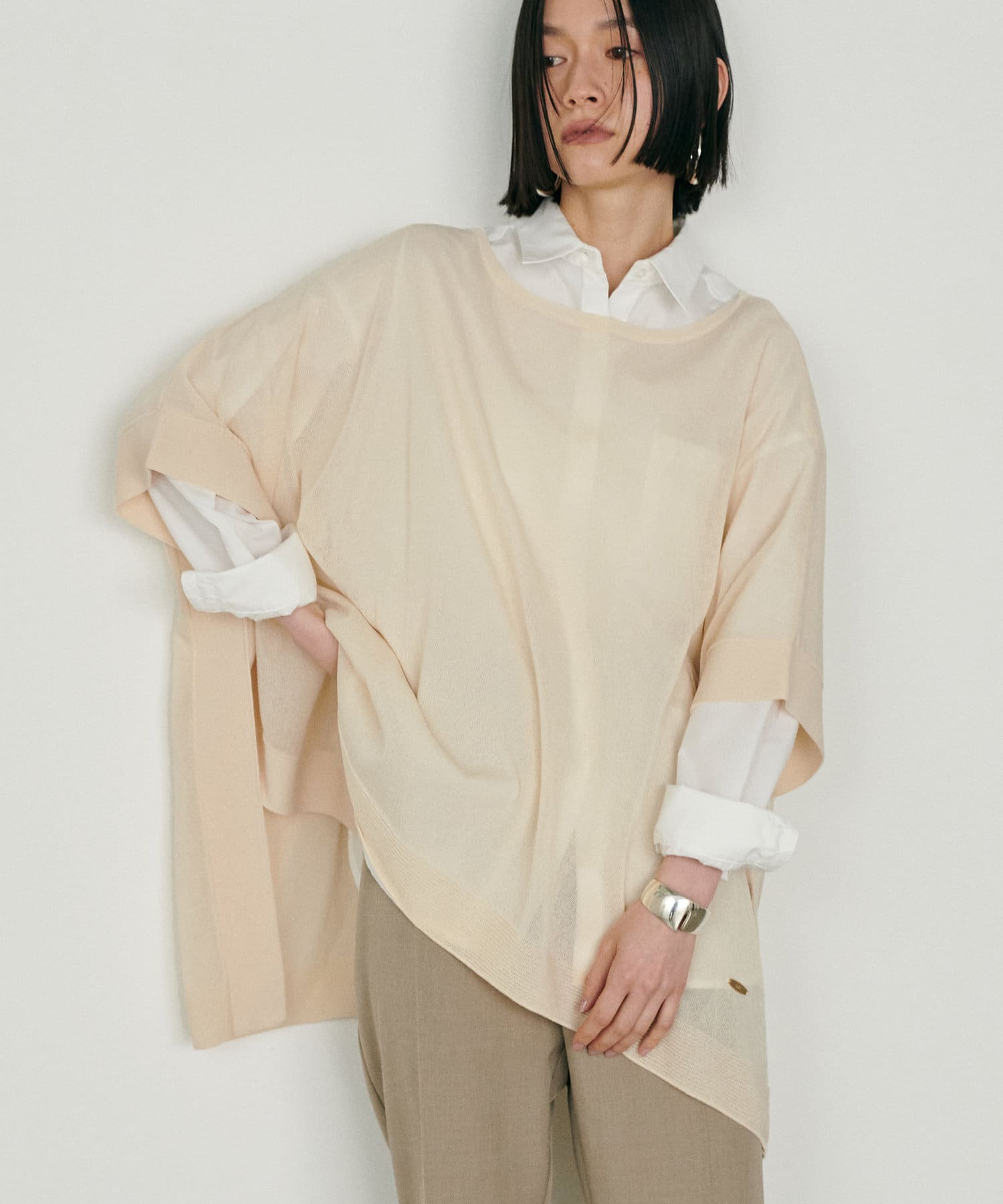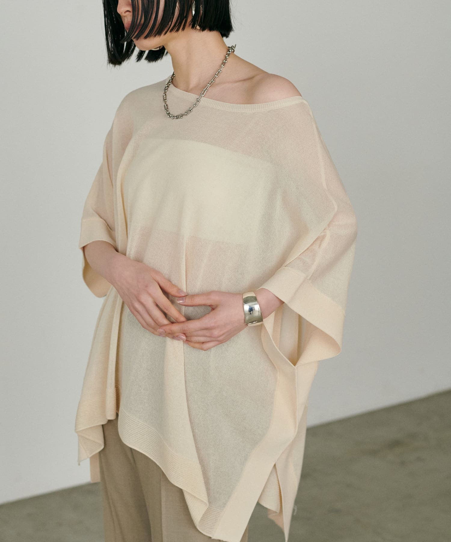 シアーポンチョニットプルオーバー