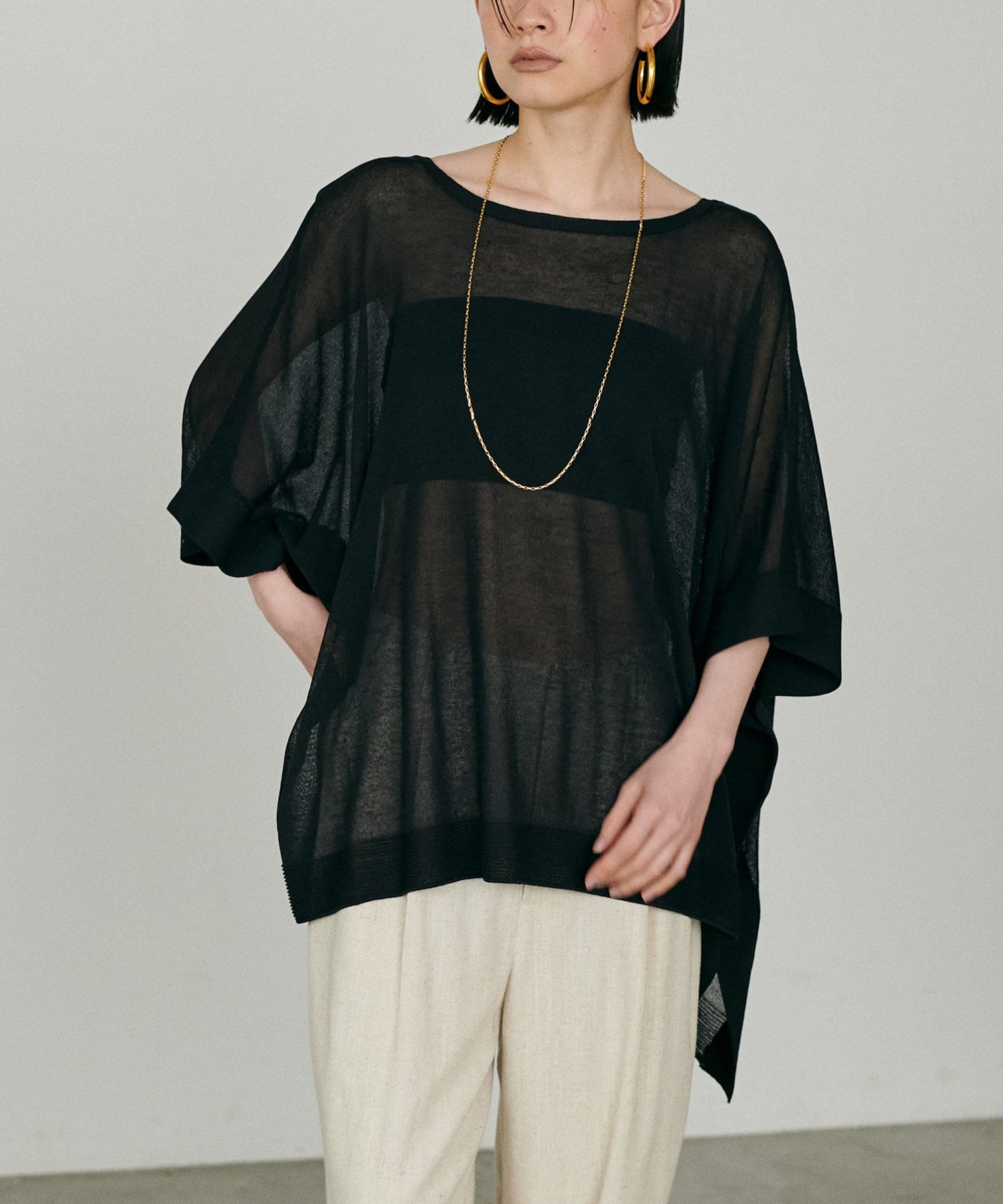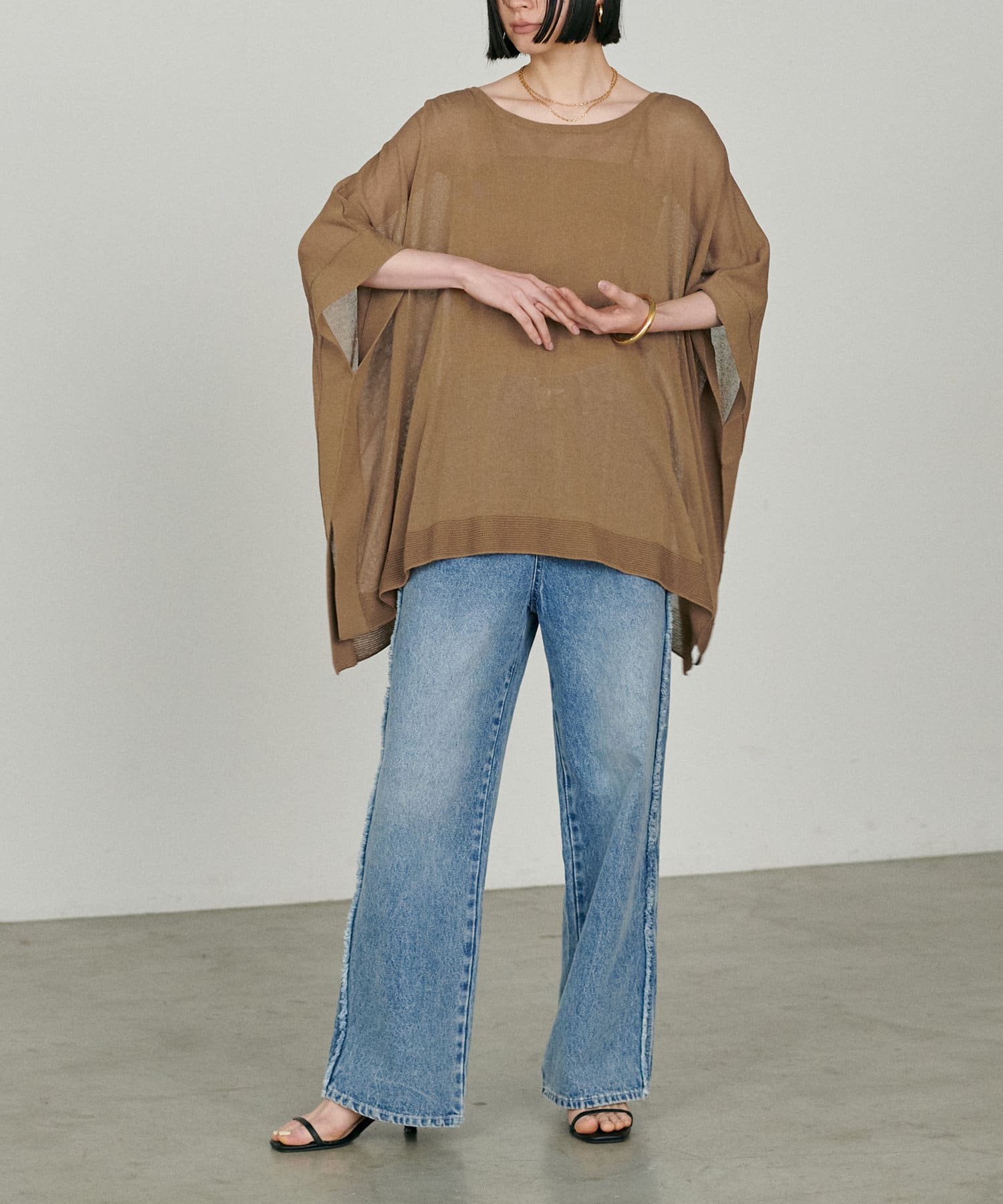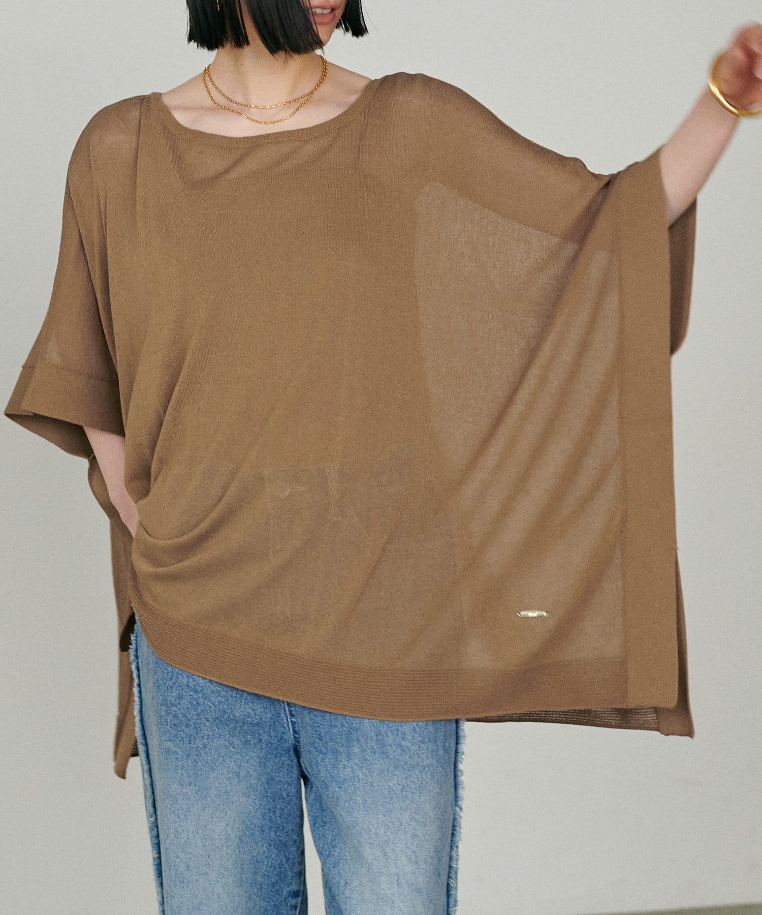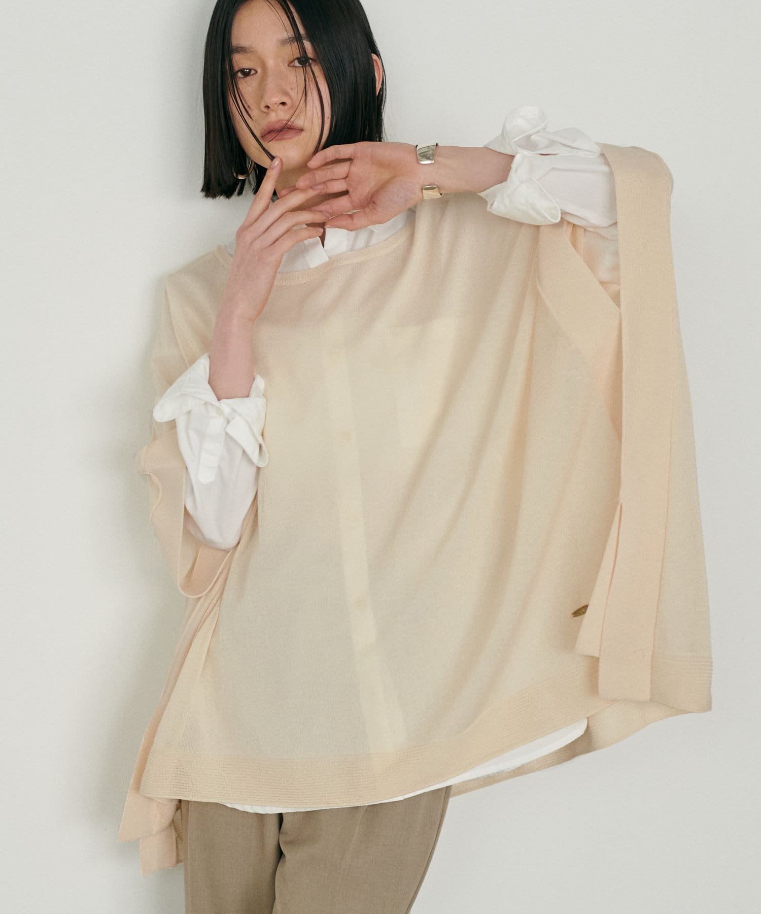 シアーポンチョニットプルオーバー