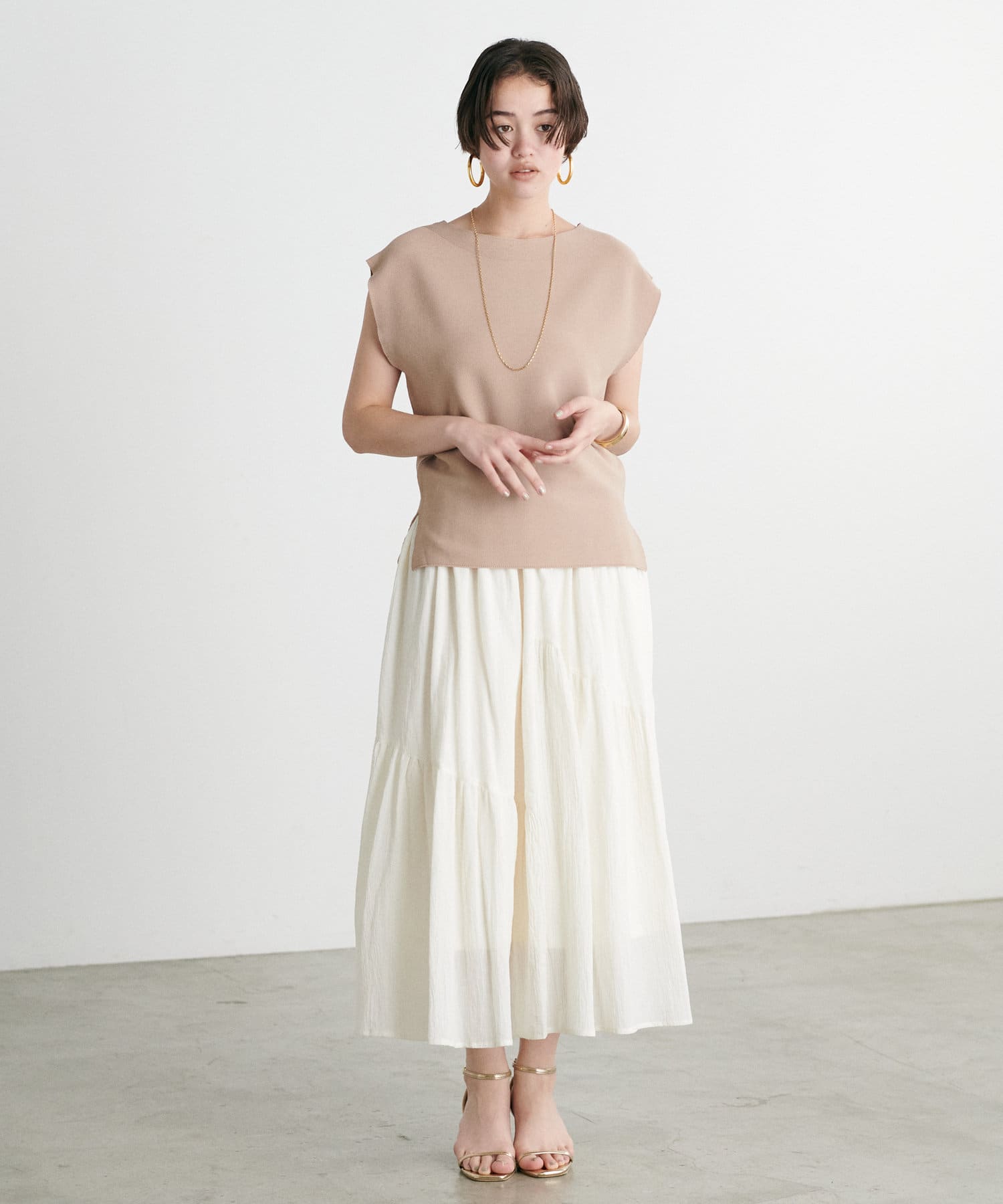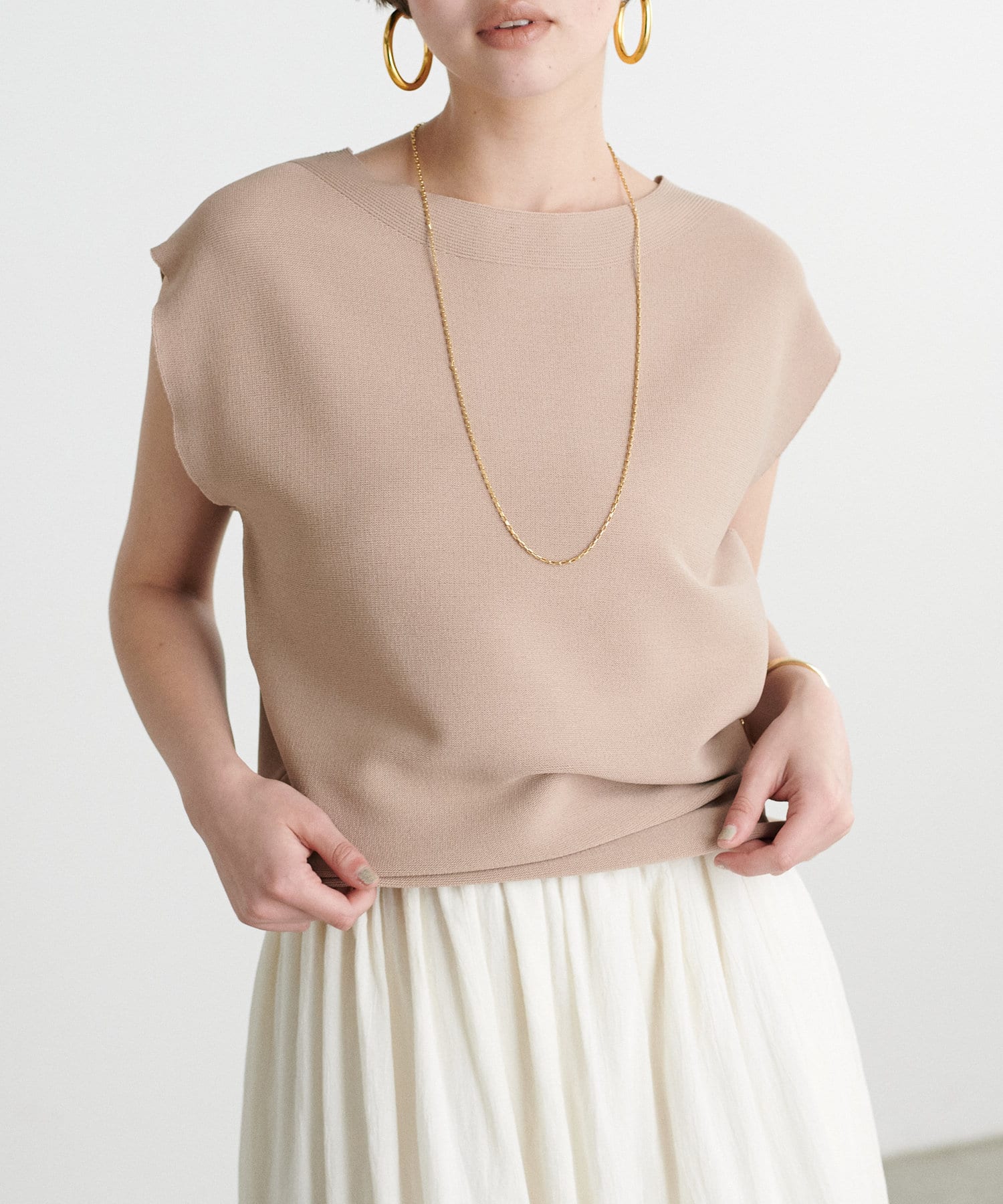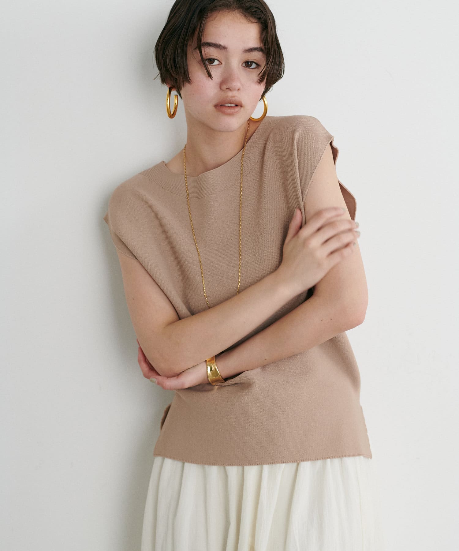 シンプルながらも洗練された大人な印象を与えるノースリニット。
