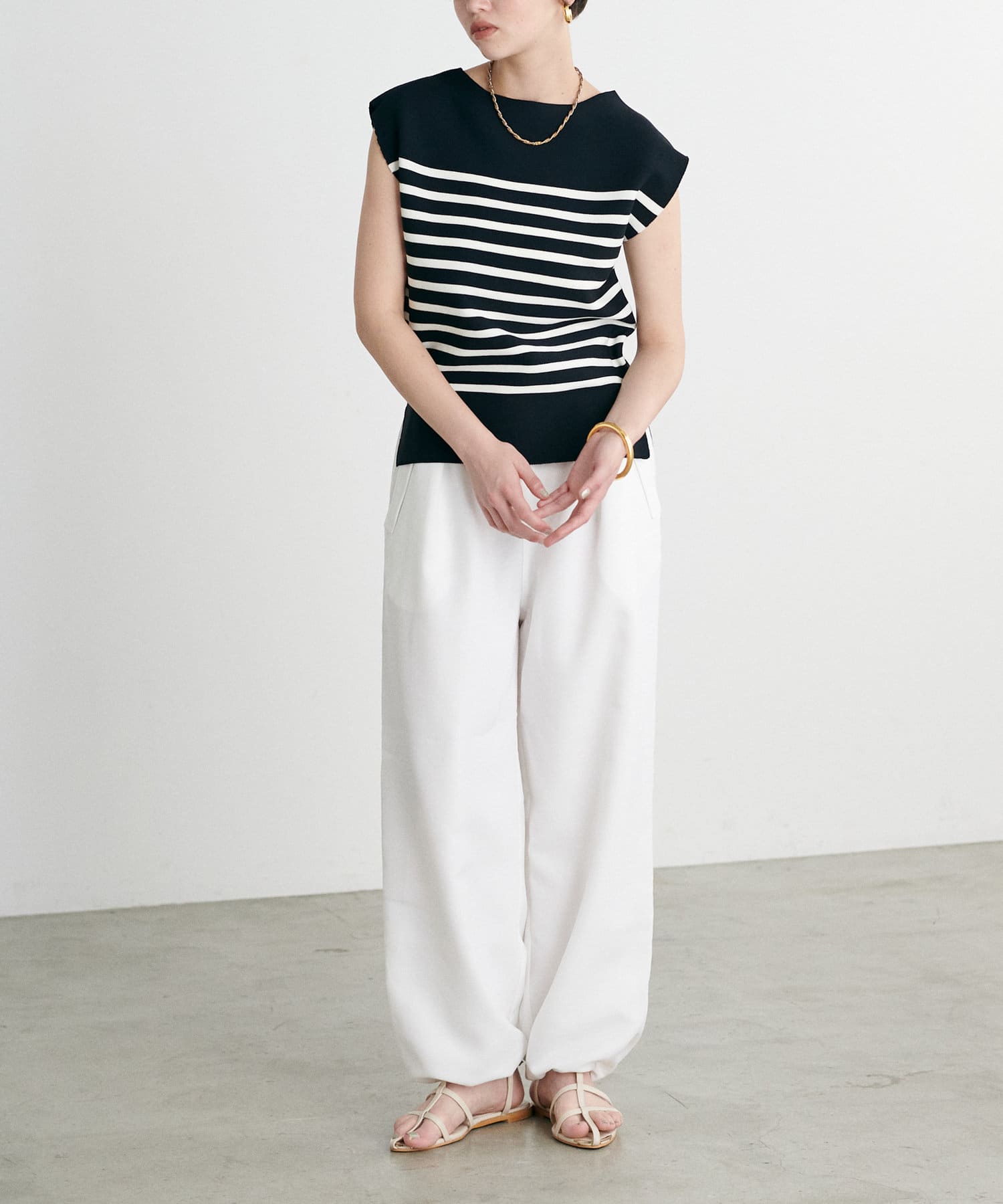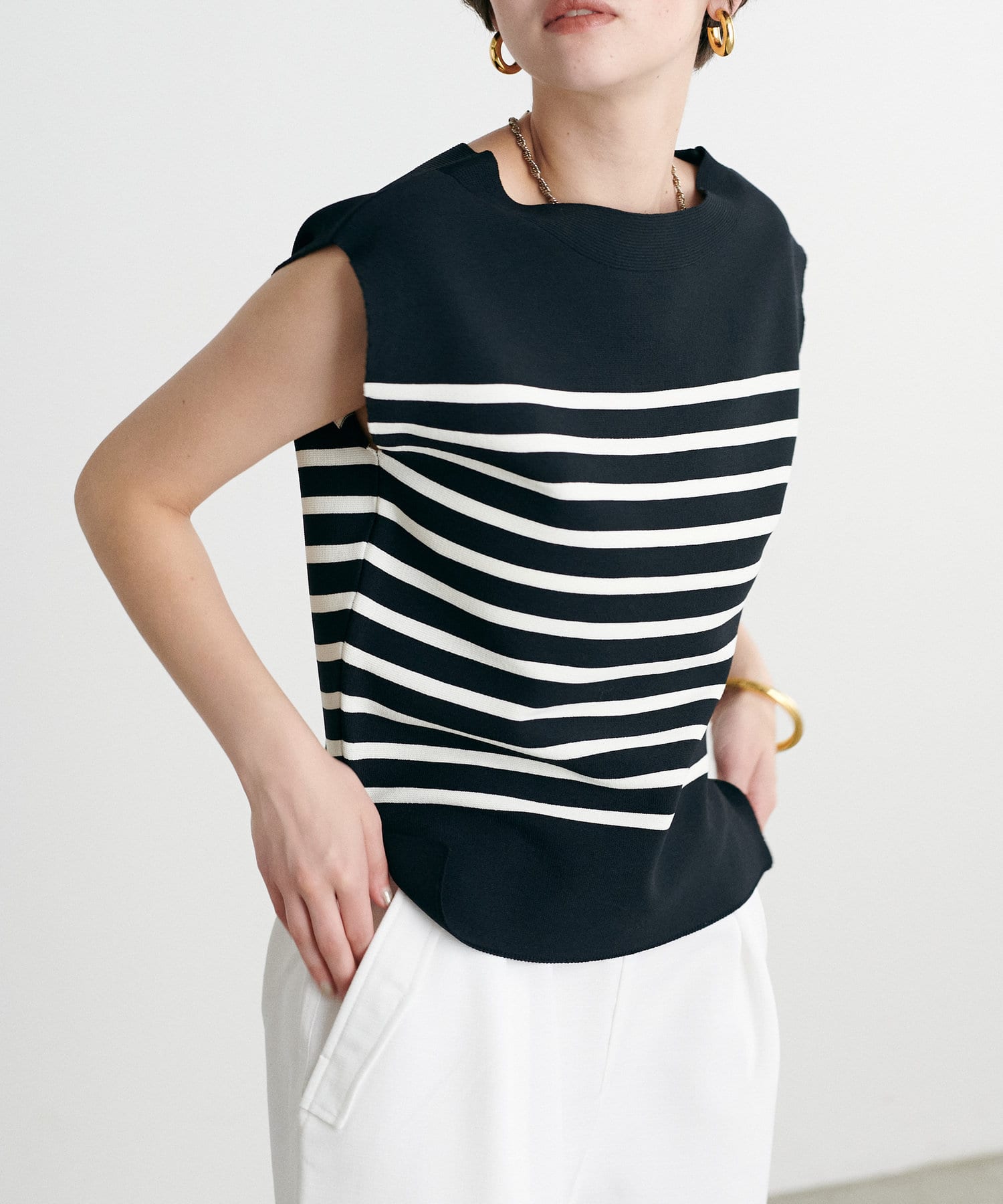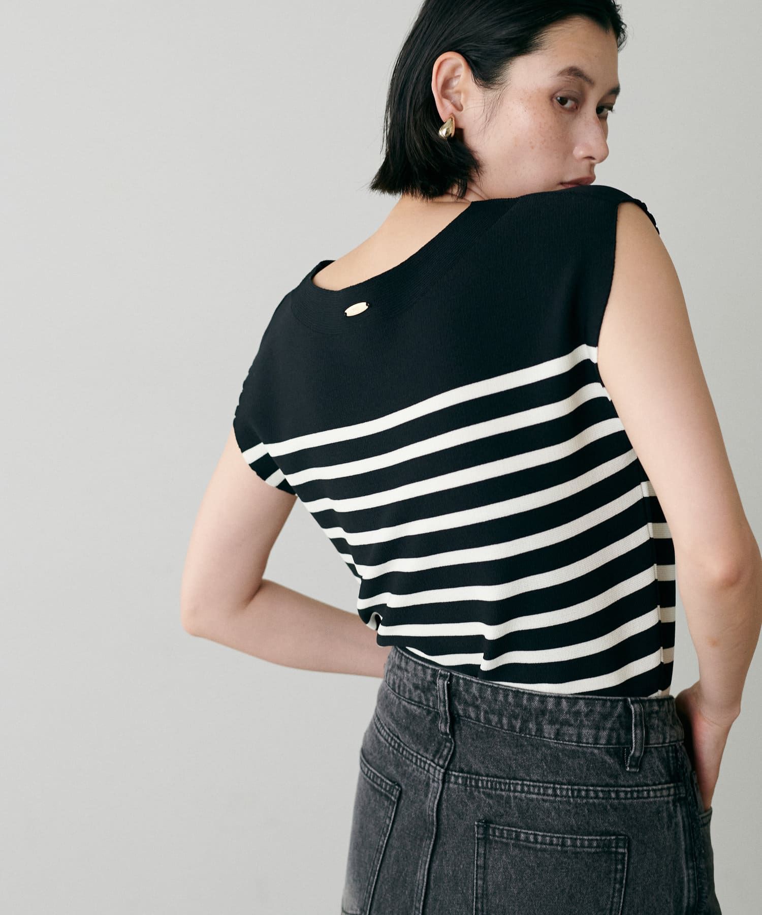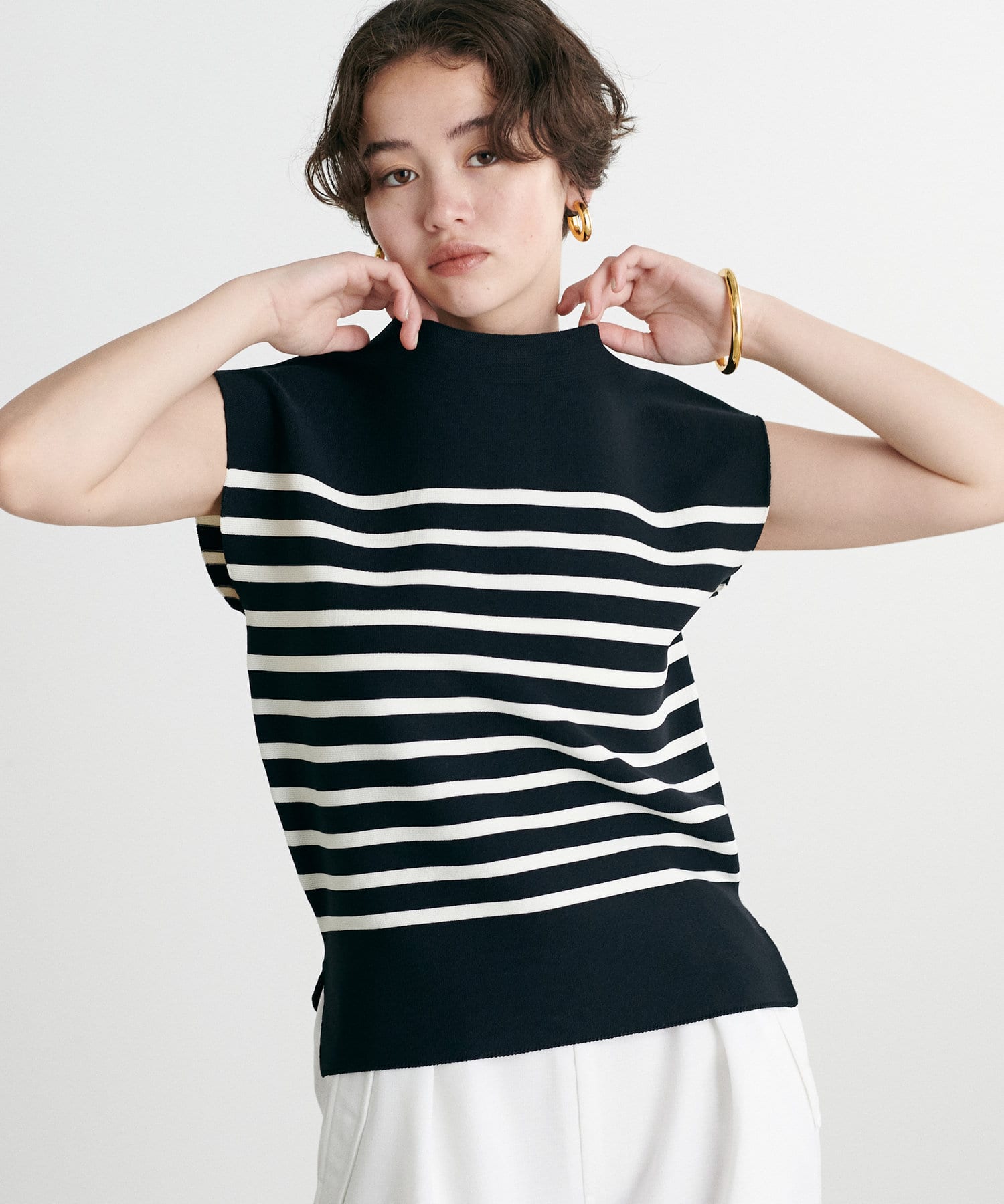 シンプルながらも洗練された大人な印象を与えるノースリニット。