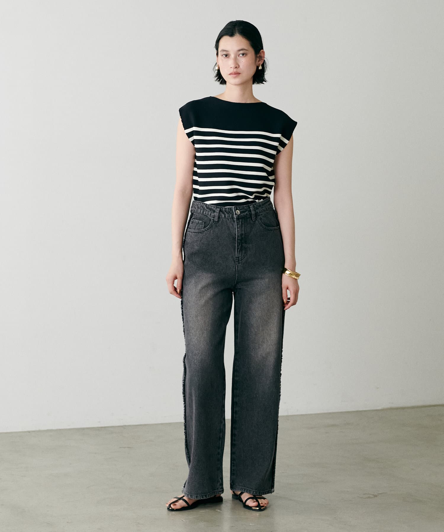 首元を美しく見せるボートネックは、デコルテをすっきりと見せ、