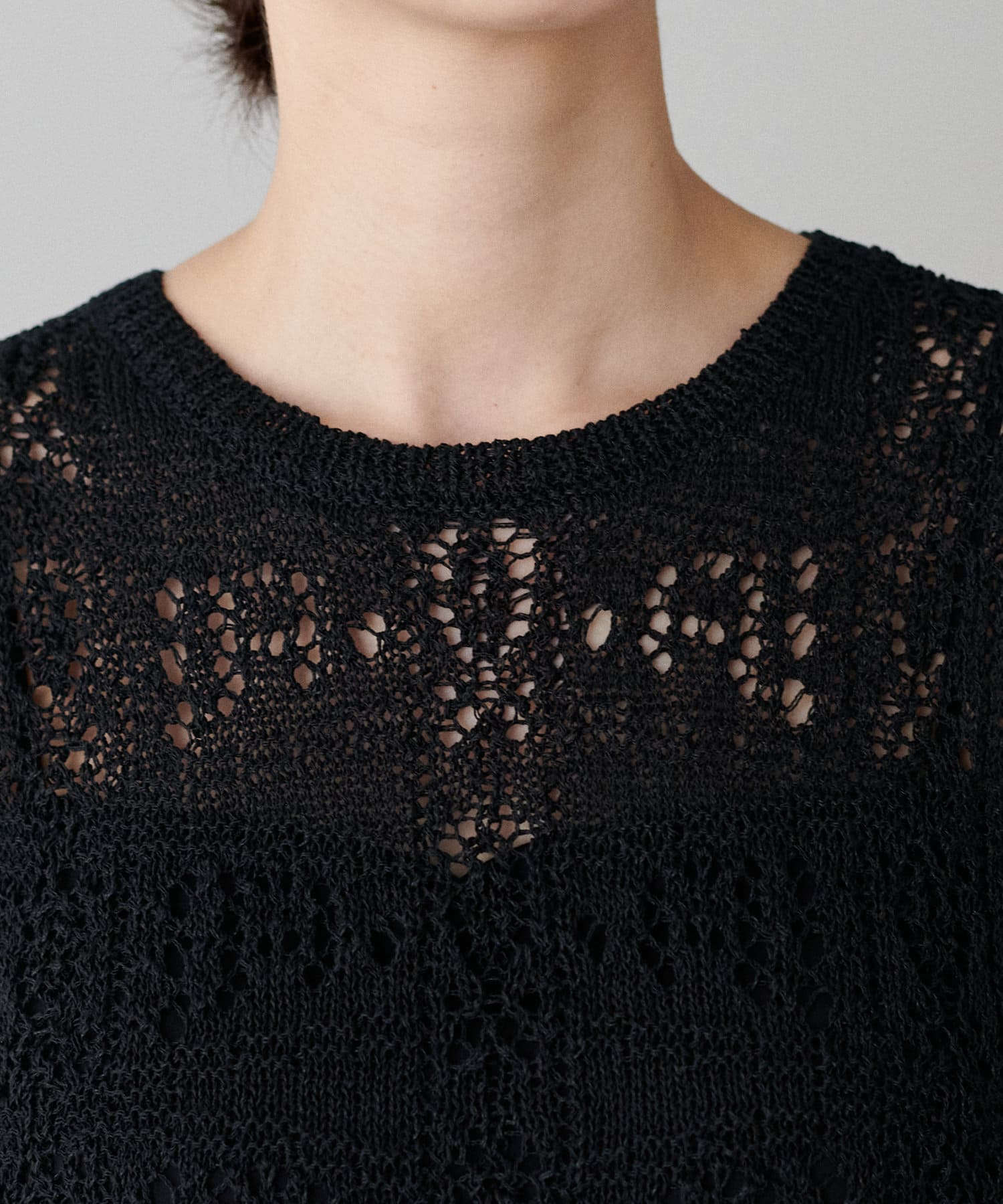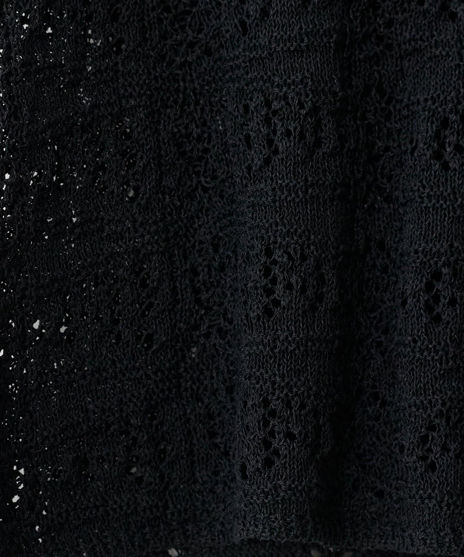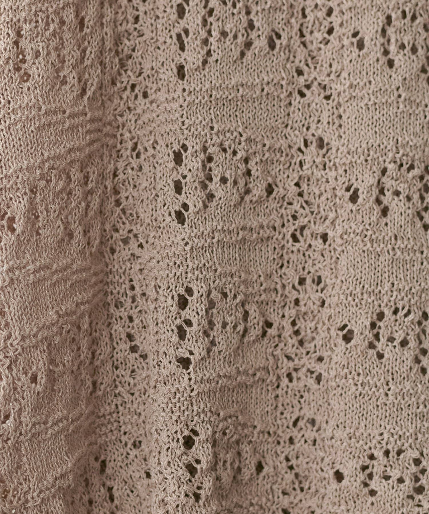 全体に施された繊細な透かし編みが、涼しげで軽やかな印象を与えます。