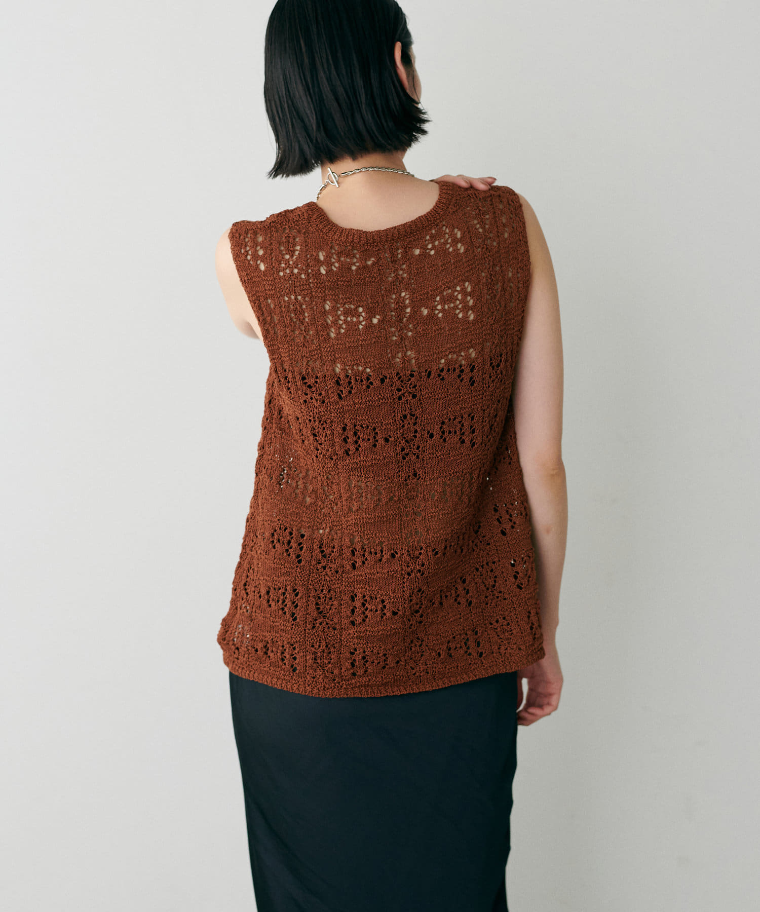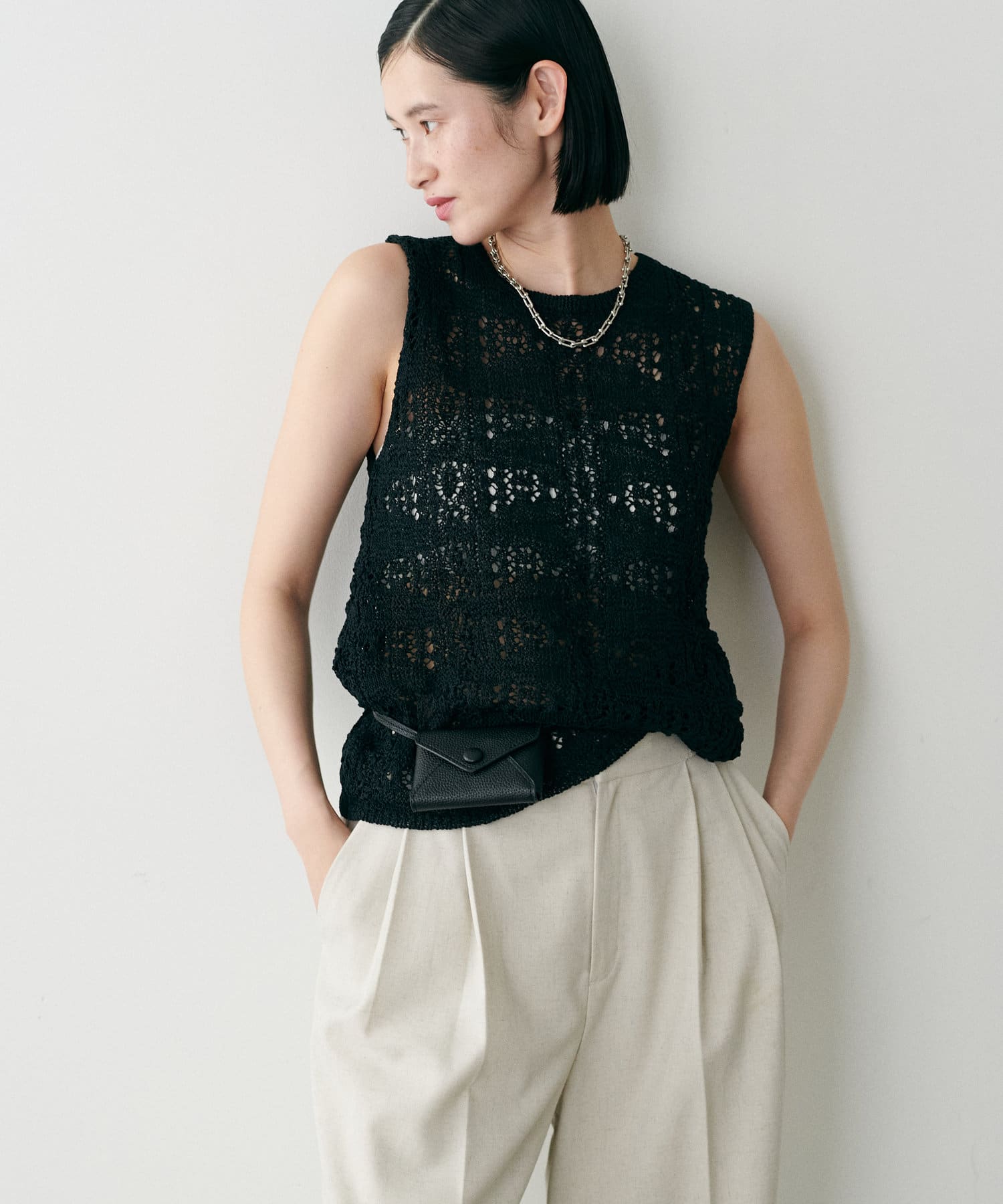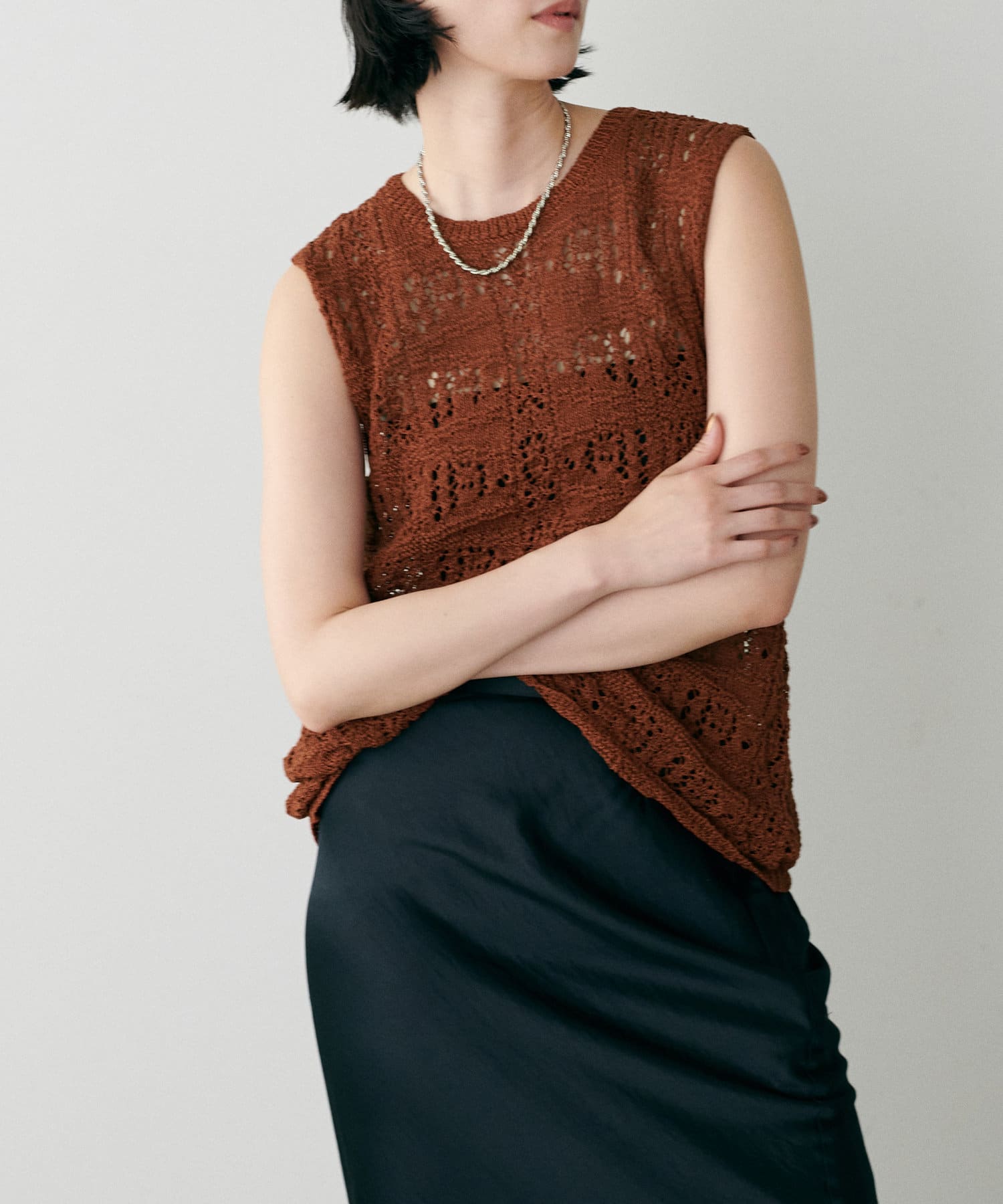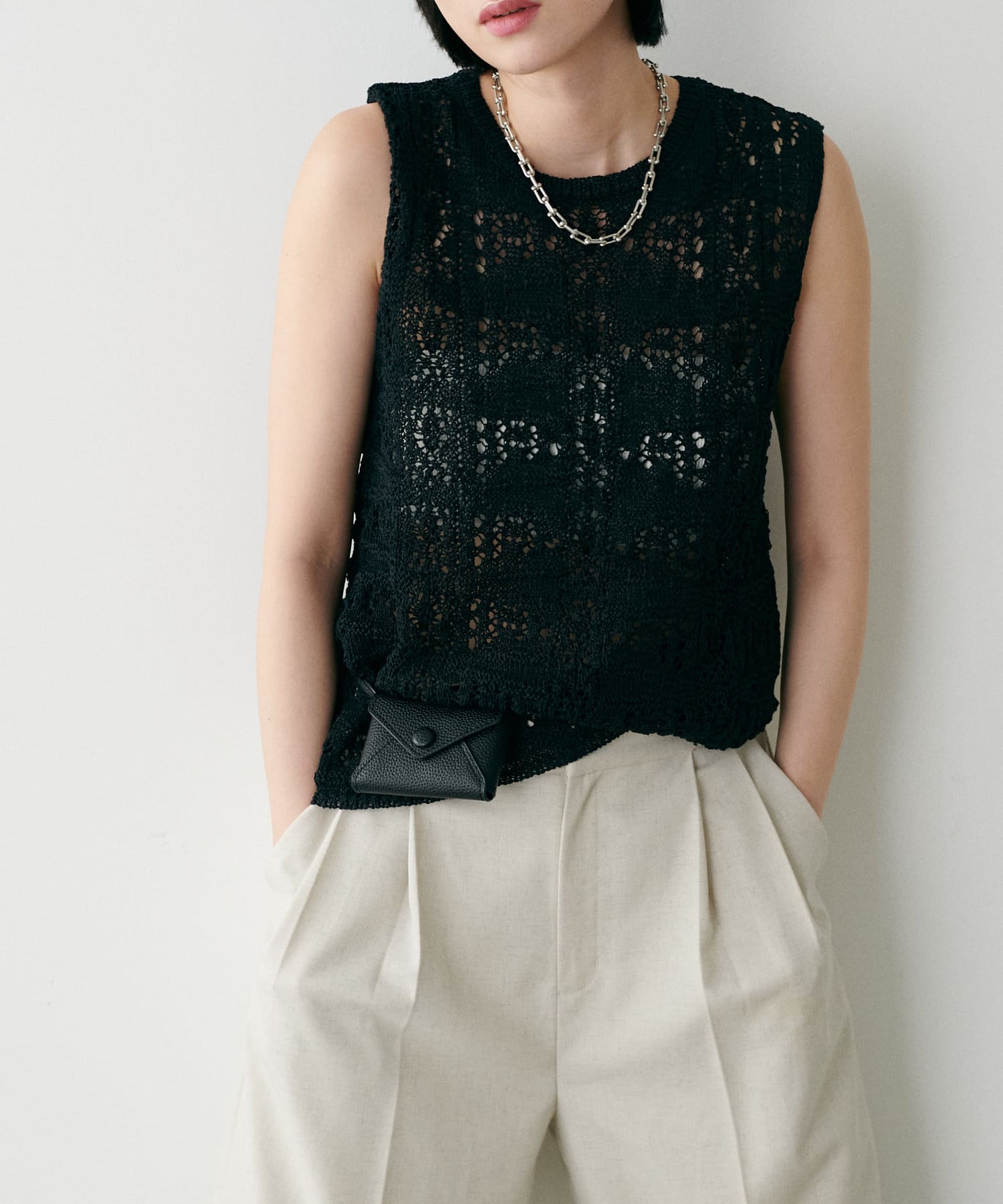 表情豊かな編み目が目を惹く、ニットタンクトップが登場。