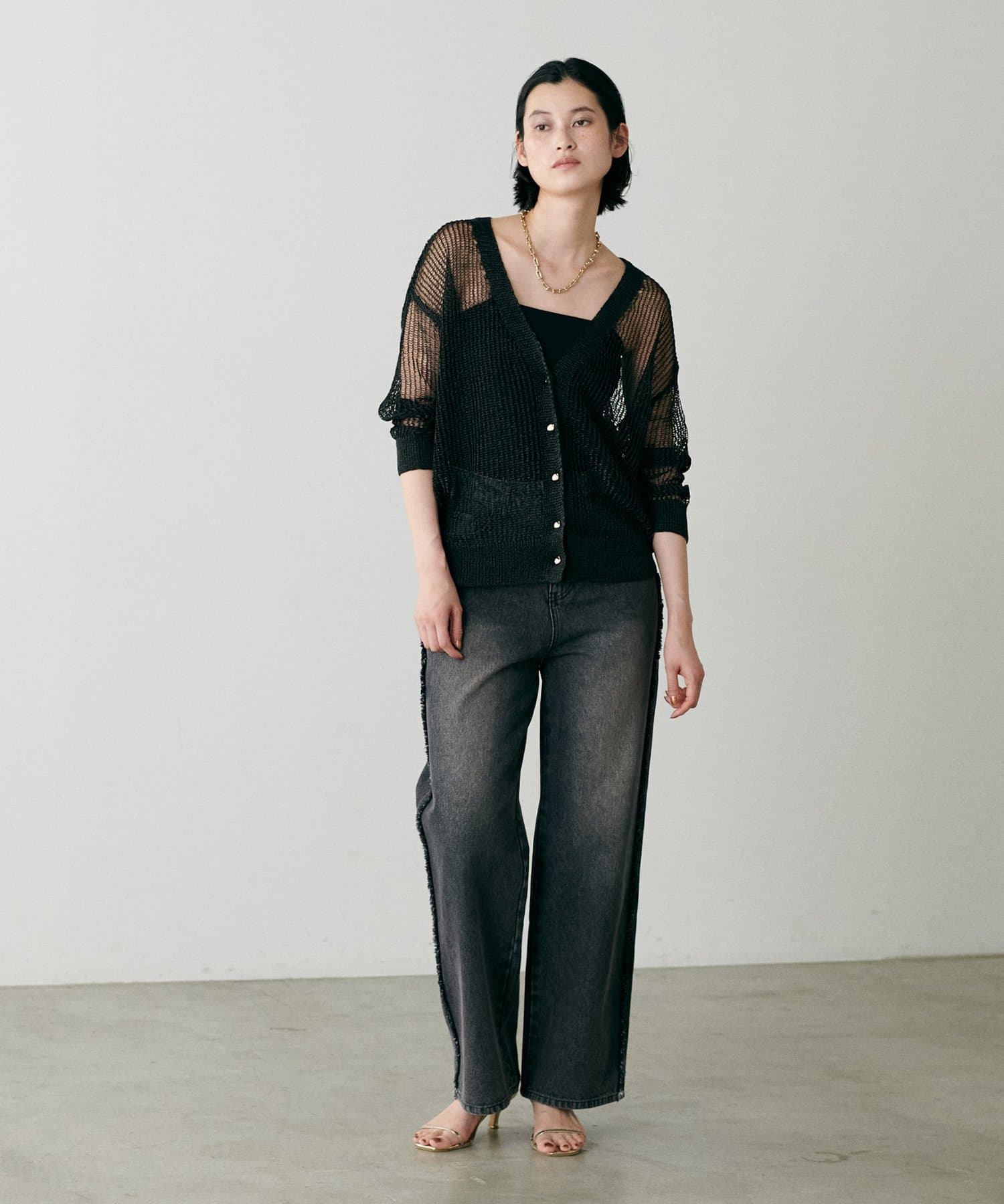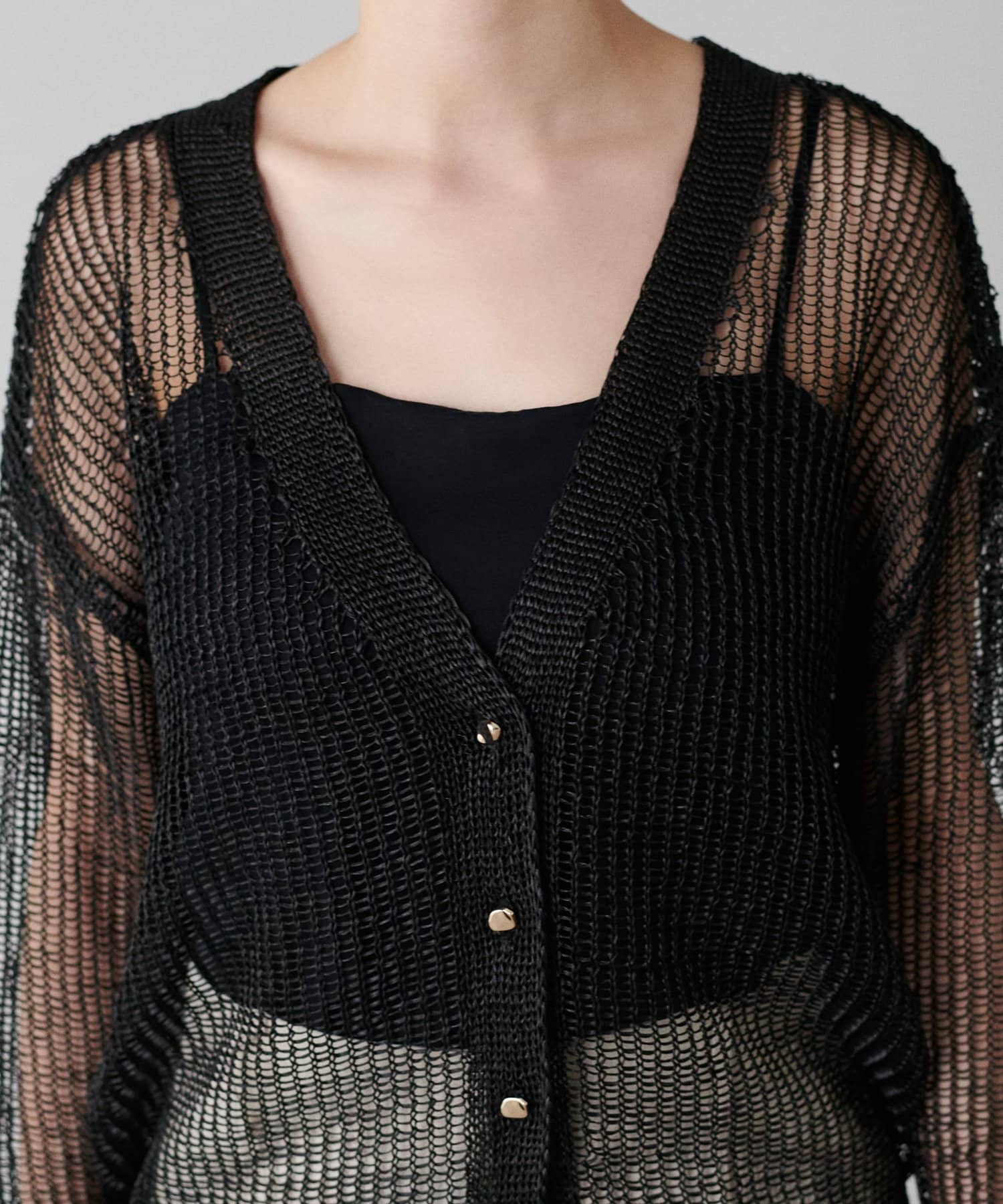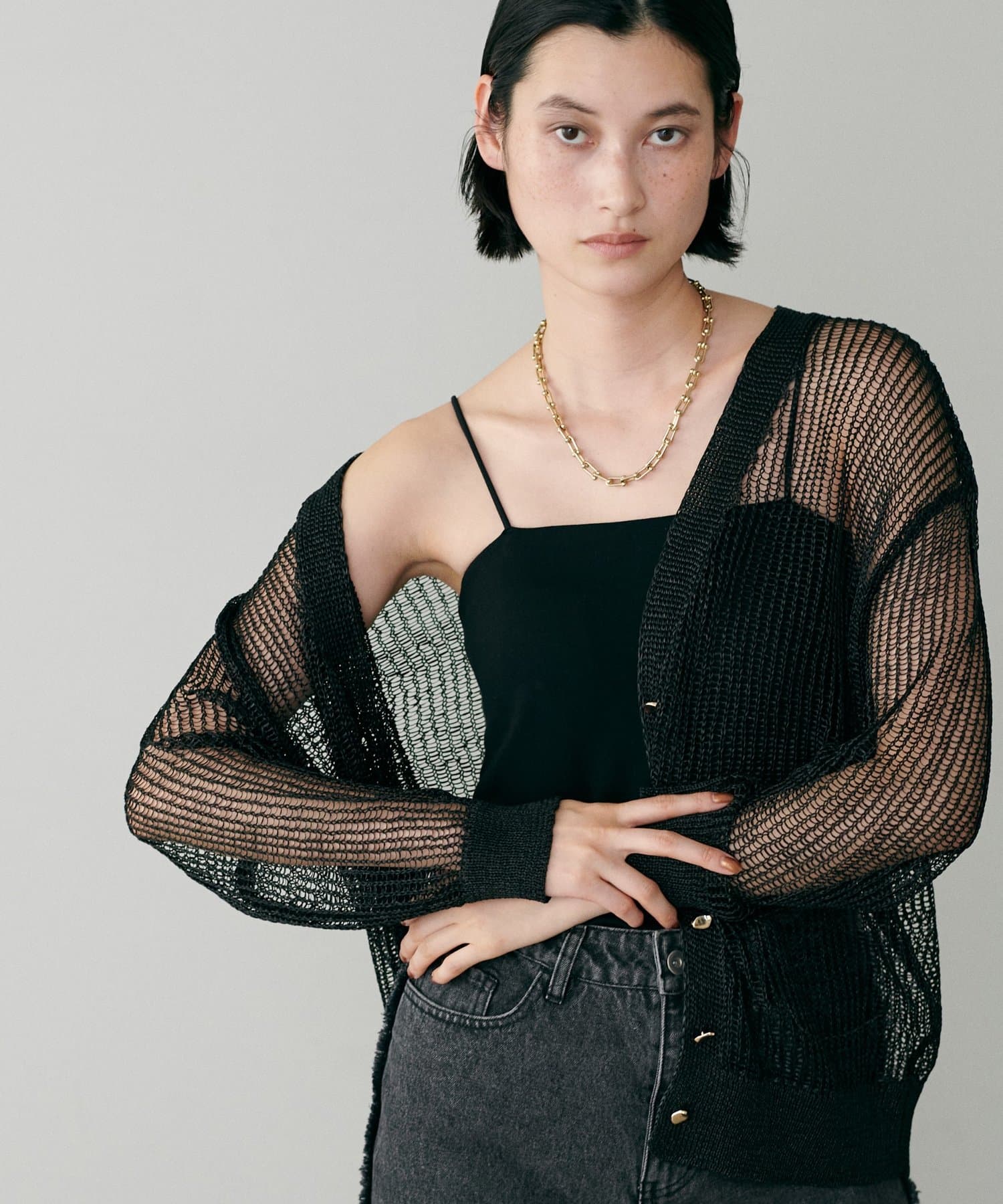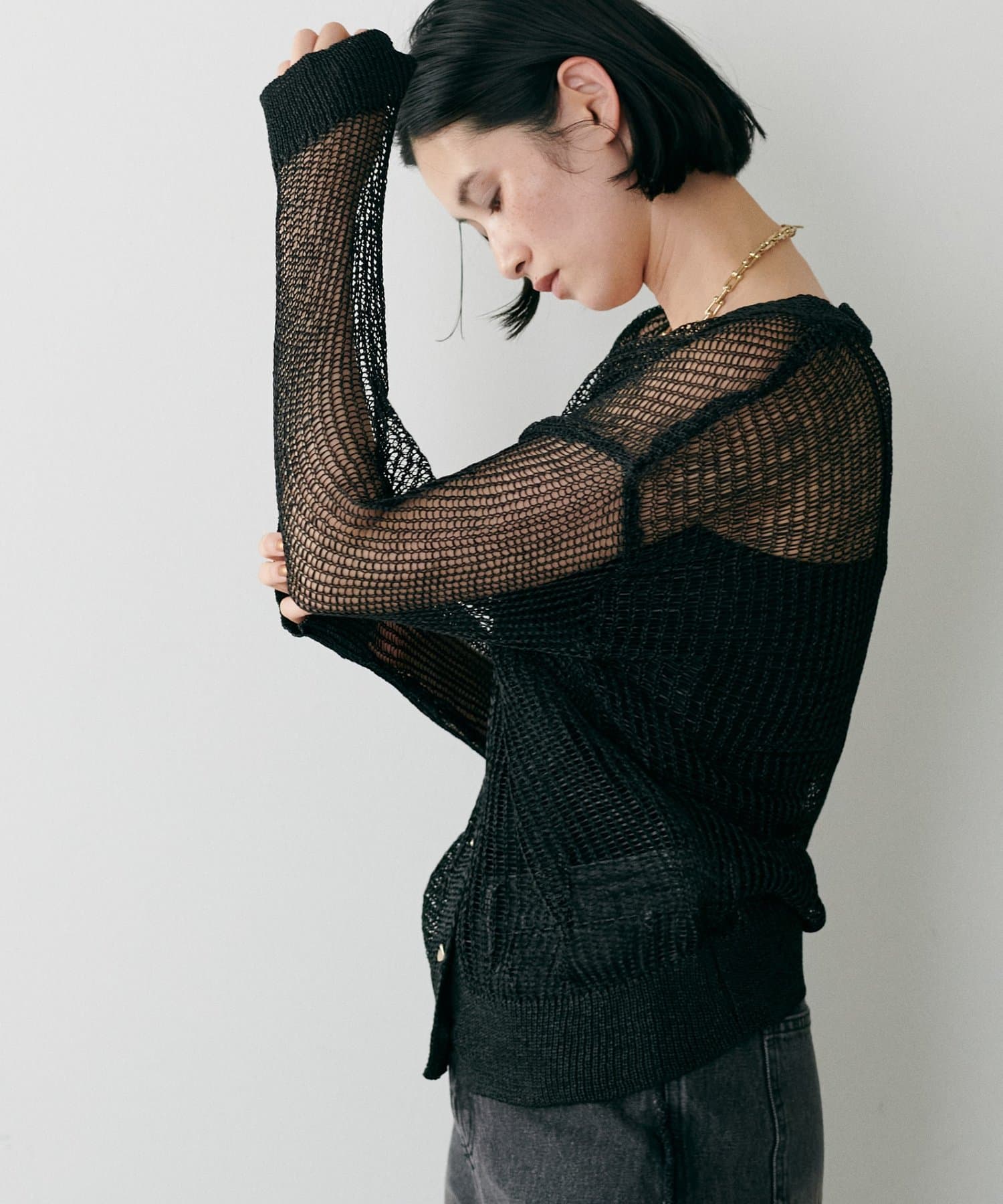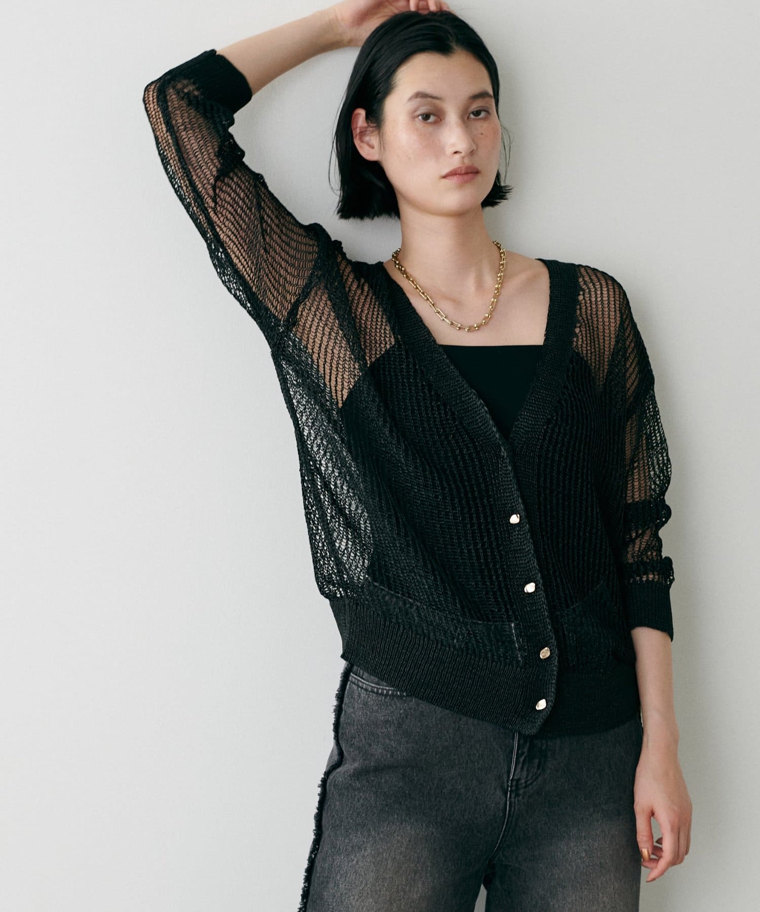 透け感のある編み地が、涼しげで軽やかな印象を与えてくれるカーディガン。