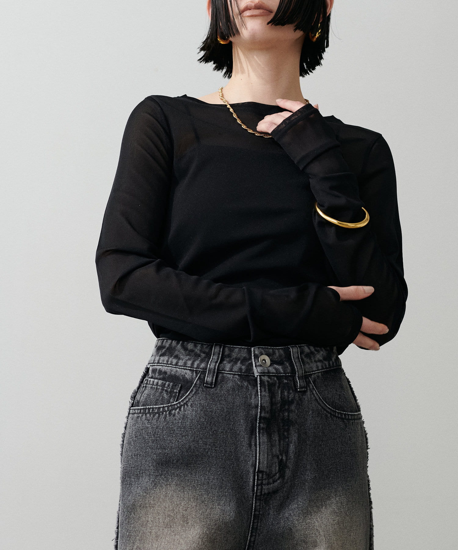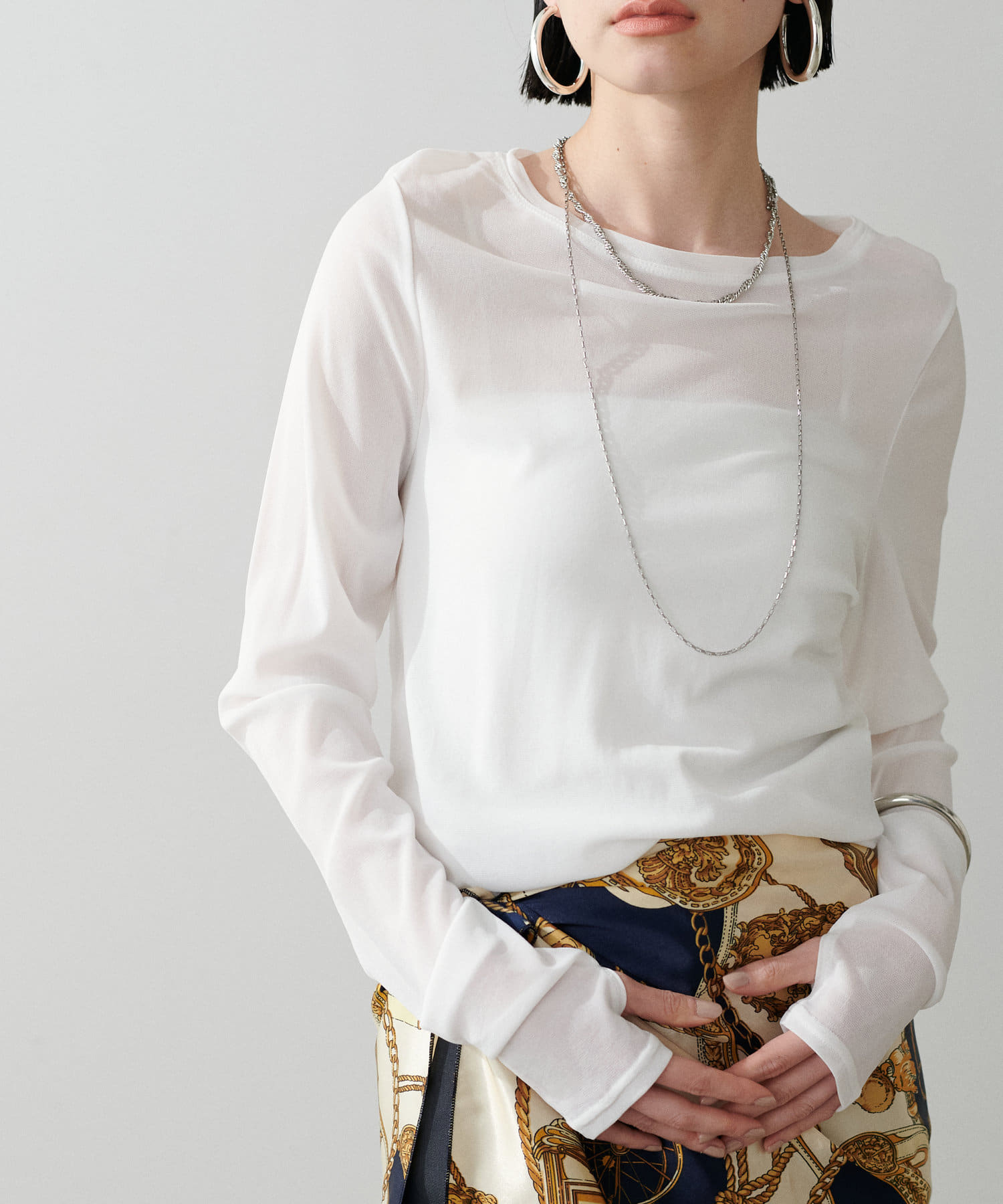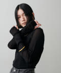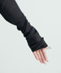 フィンガーホールのある長めのスリーブを生かして