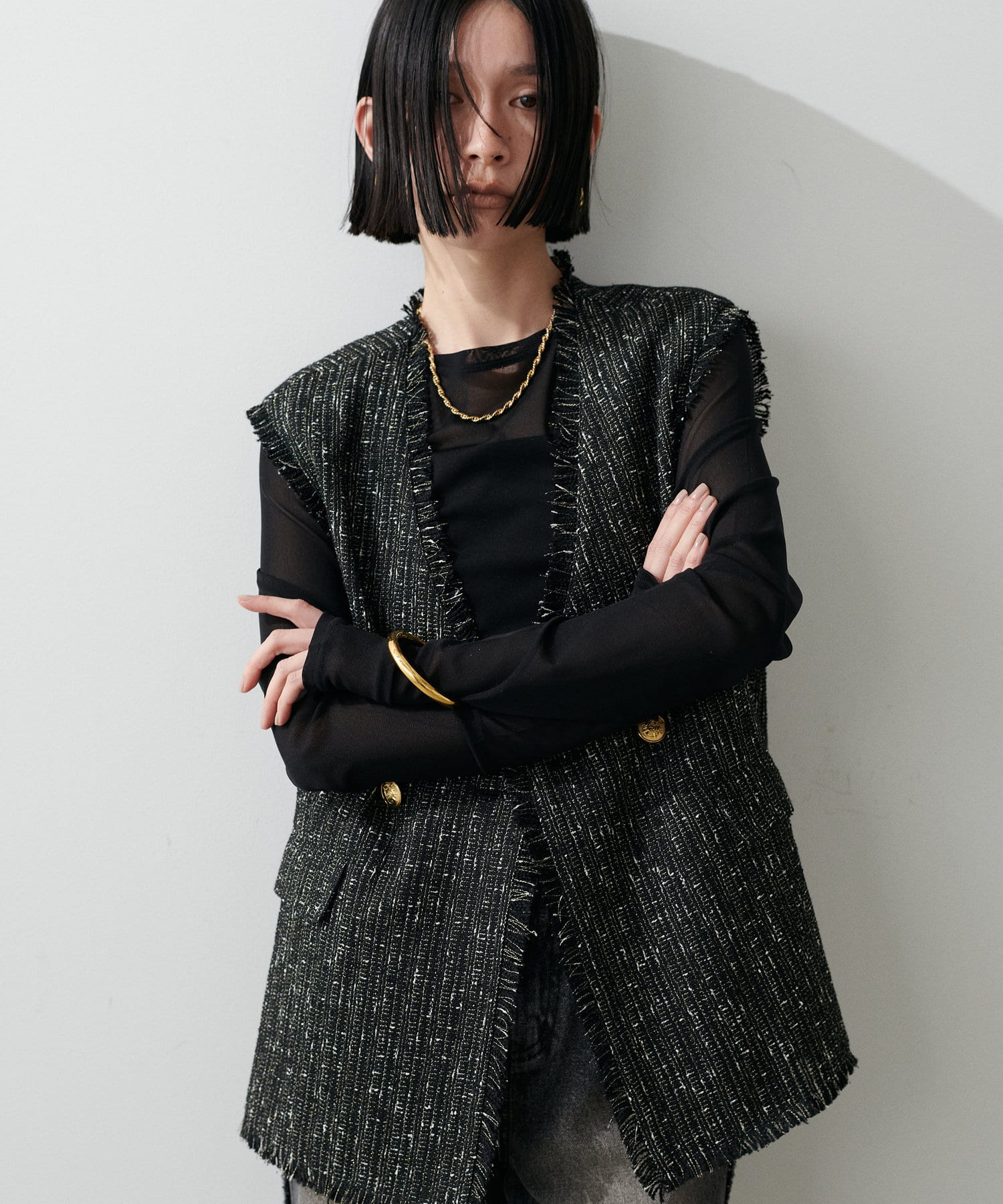 シルエットはベーシックなためインナーアレンジも可能。