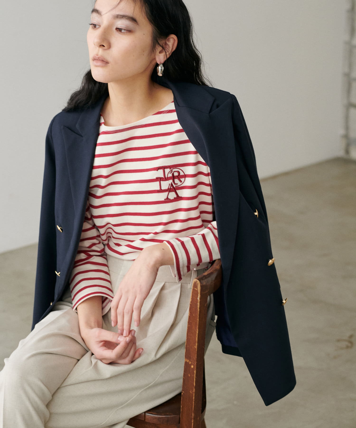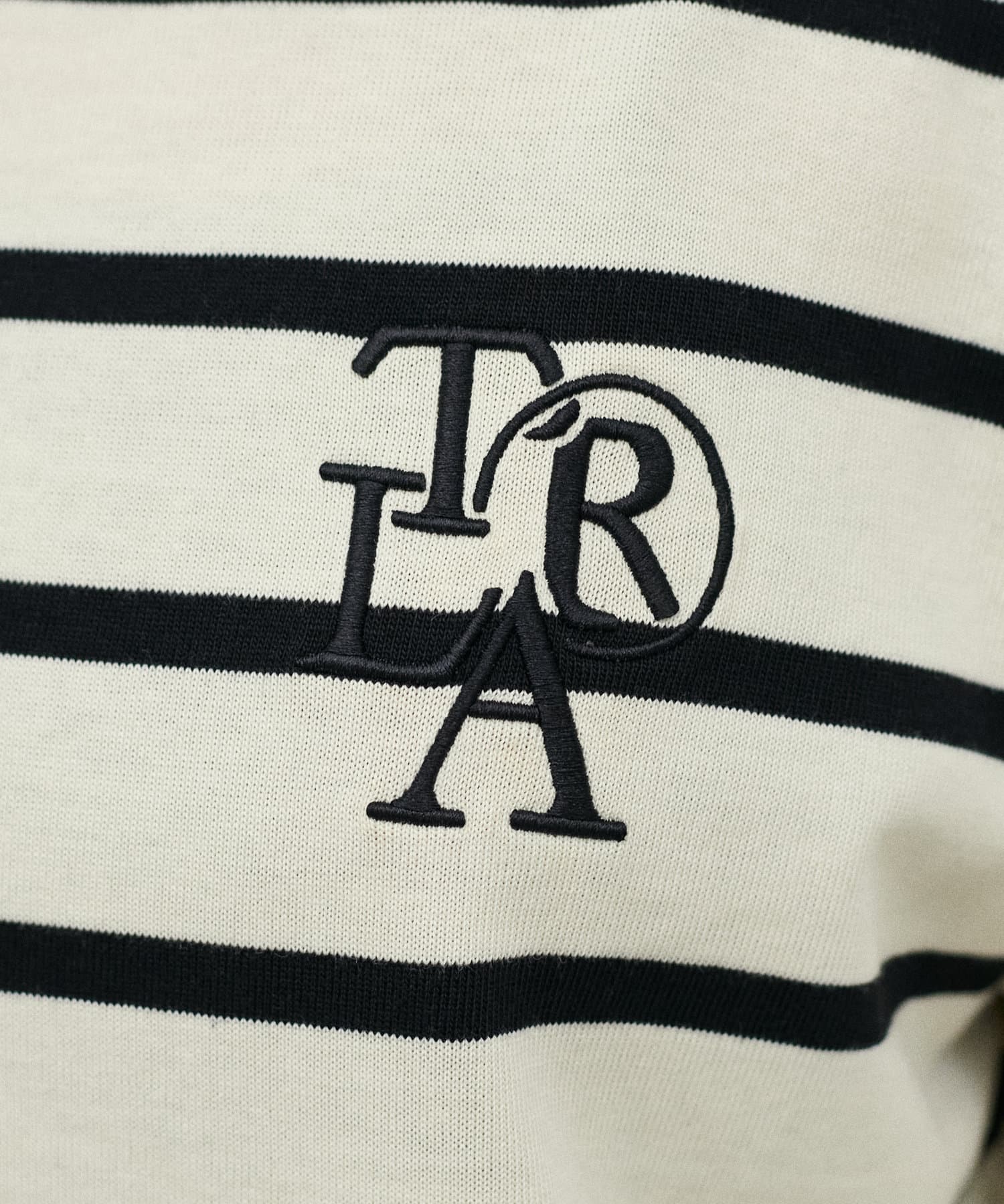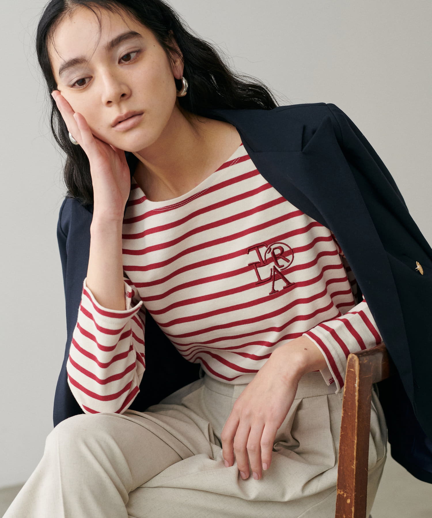 胸元の小さめなLARUTAの刺繍が可愛らしさをプラス。