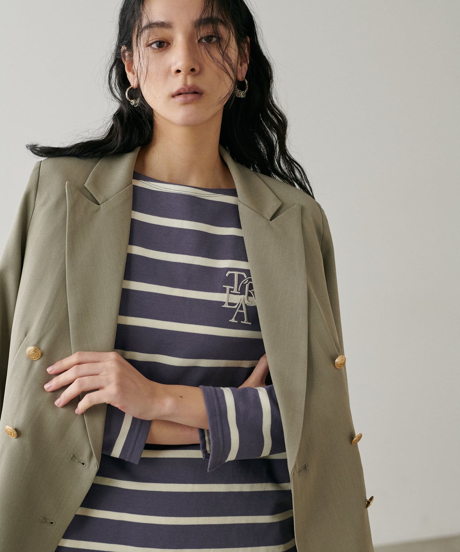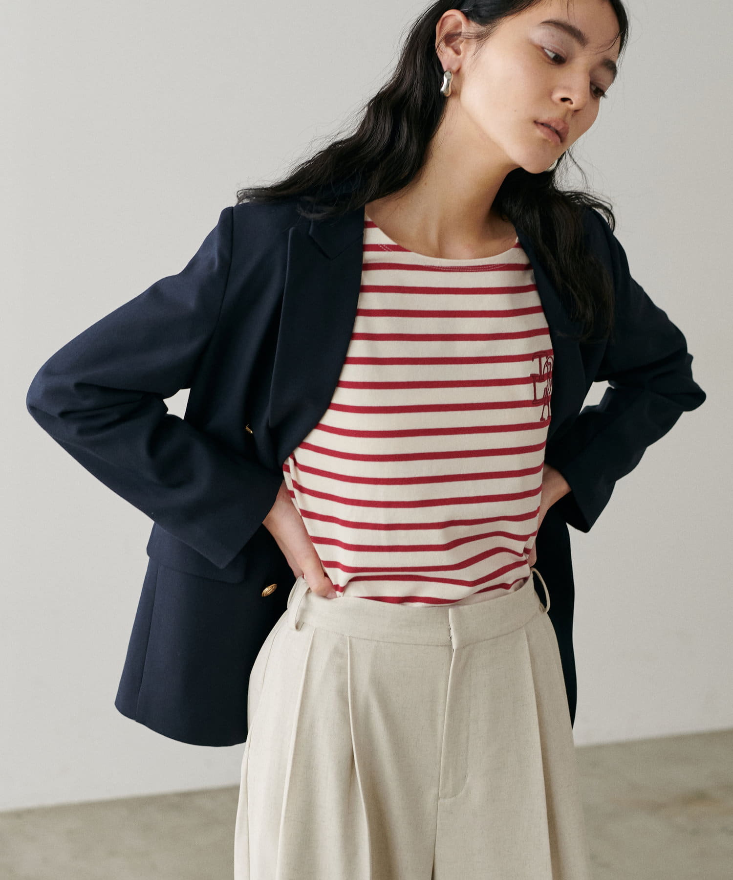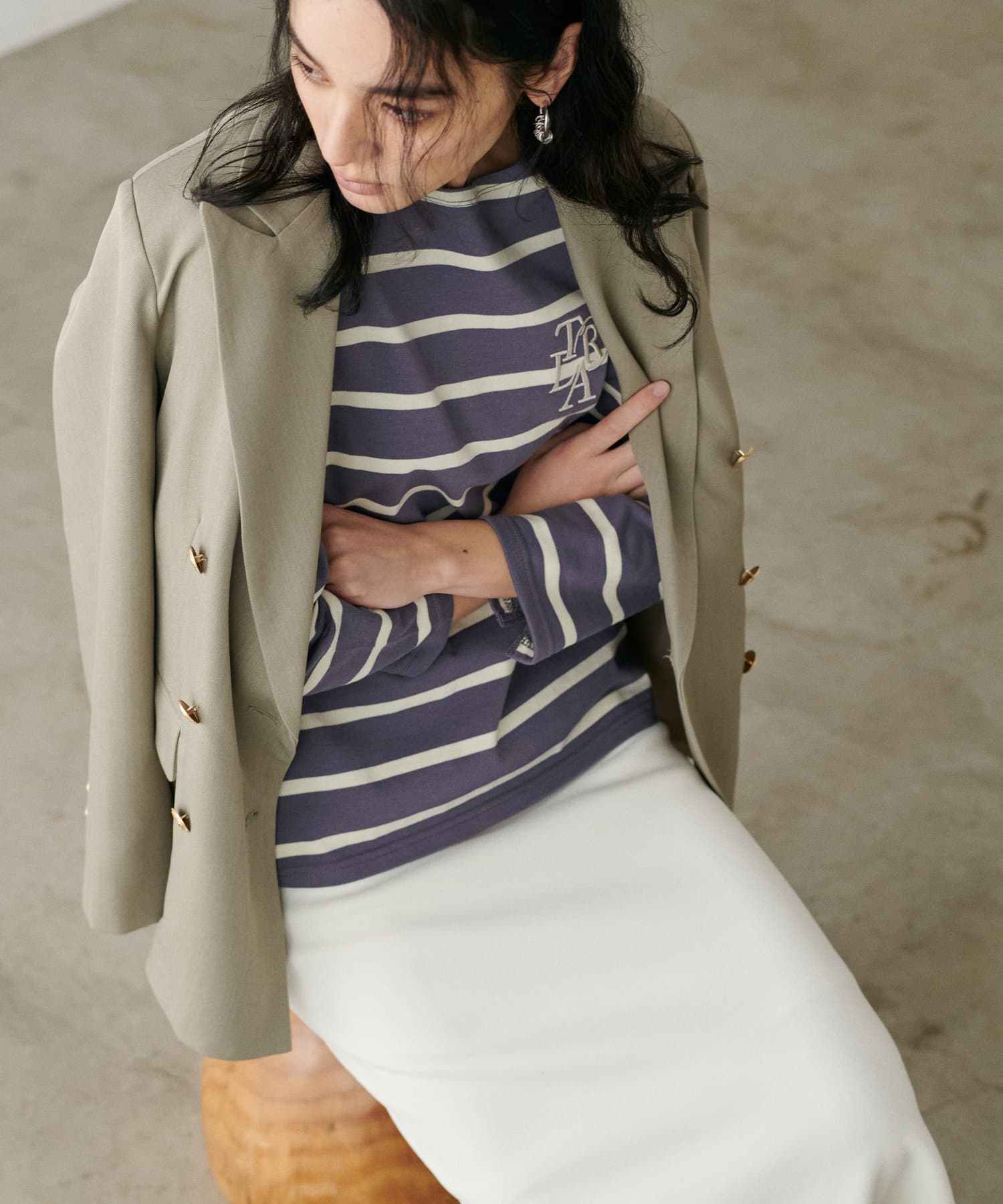 胸元の小さめなLARUTAの刺繍が可愛らしさをプラス。