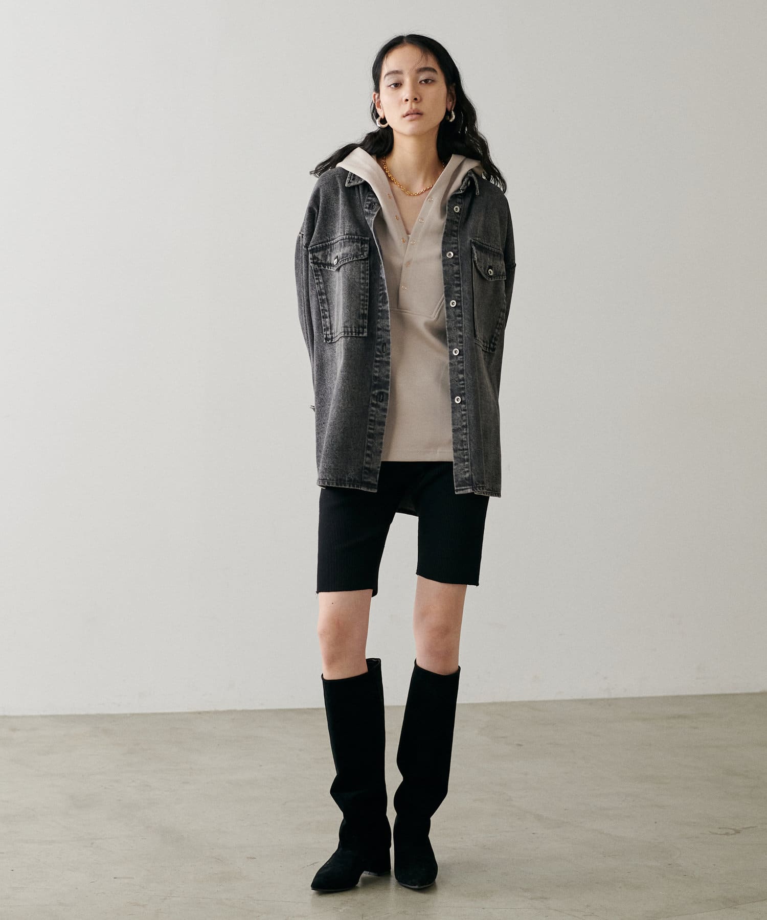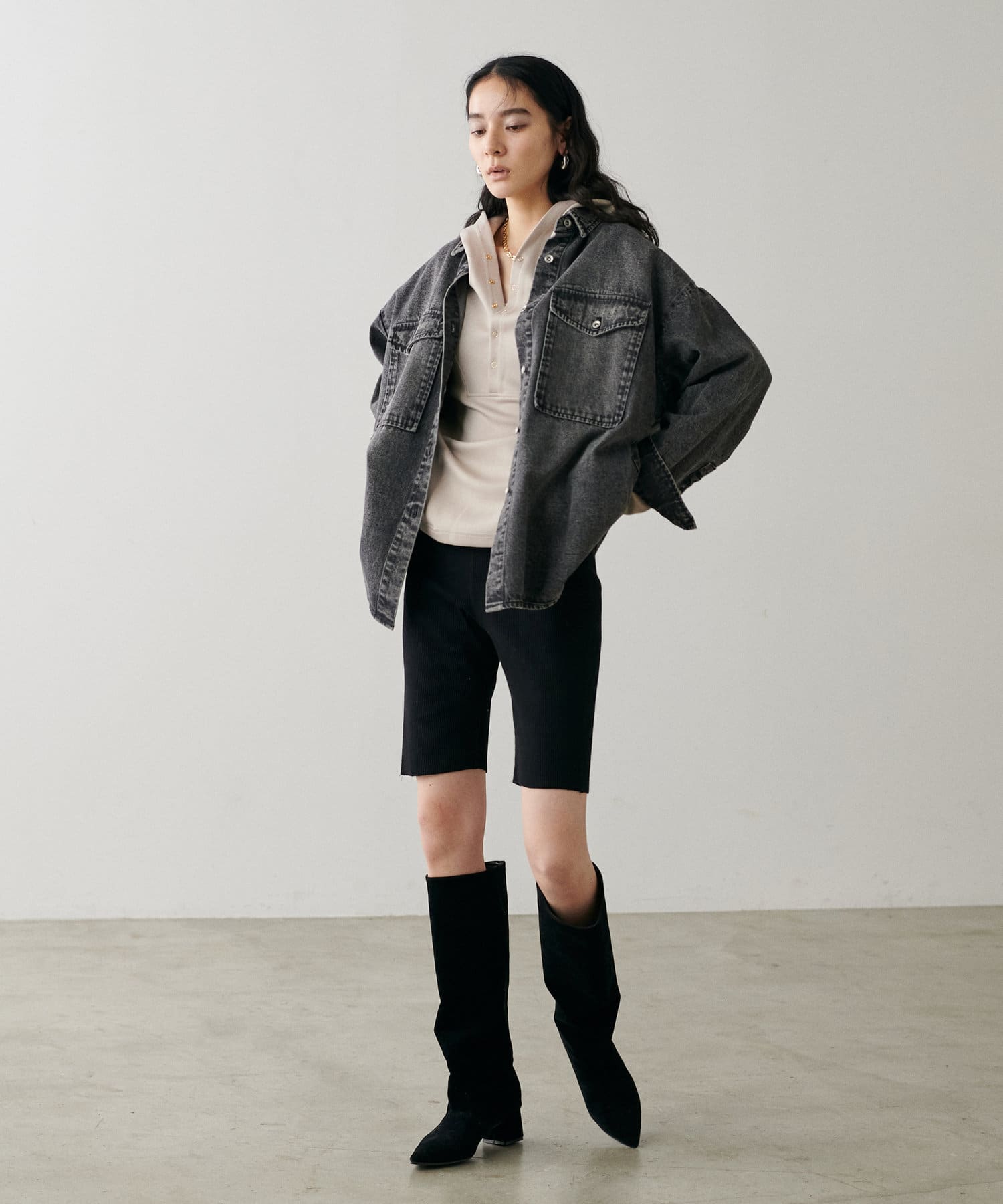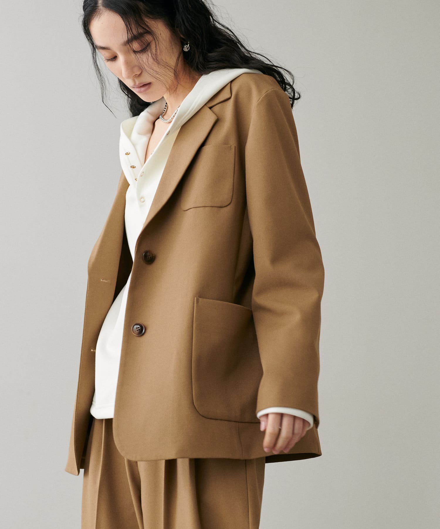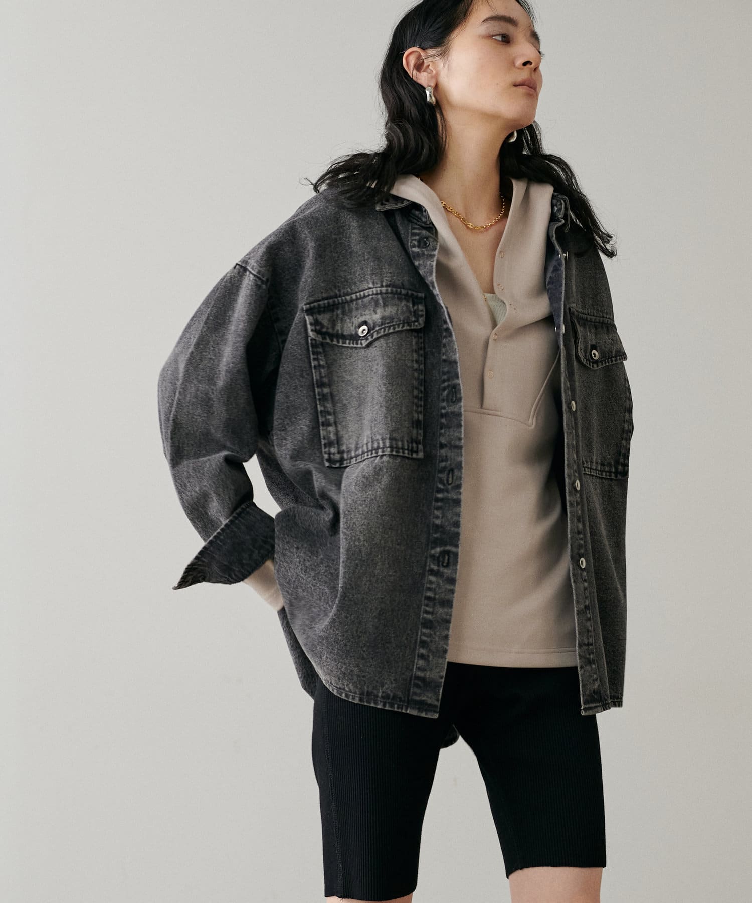 軽めのアウターのような感覚で着られる1枚。