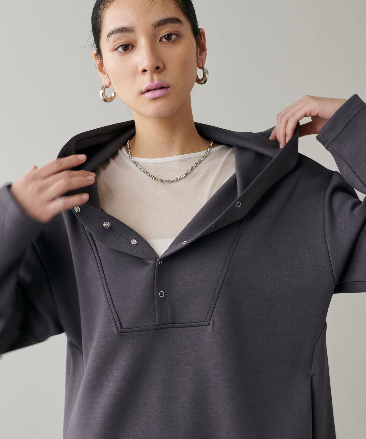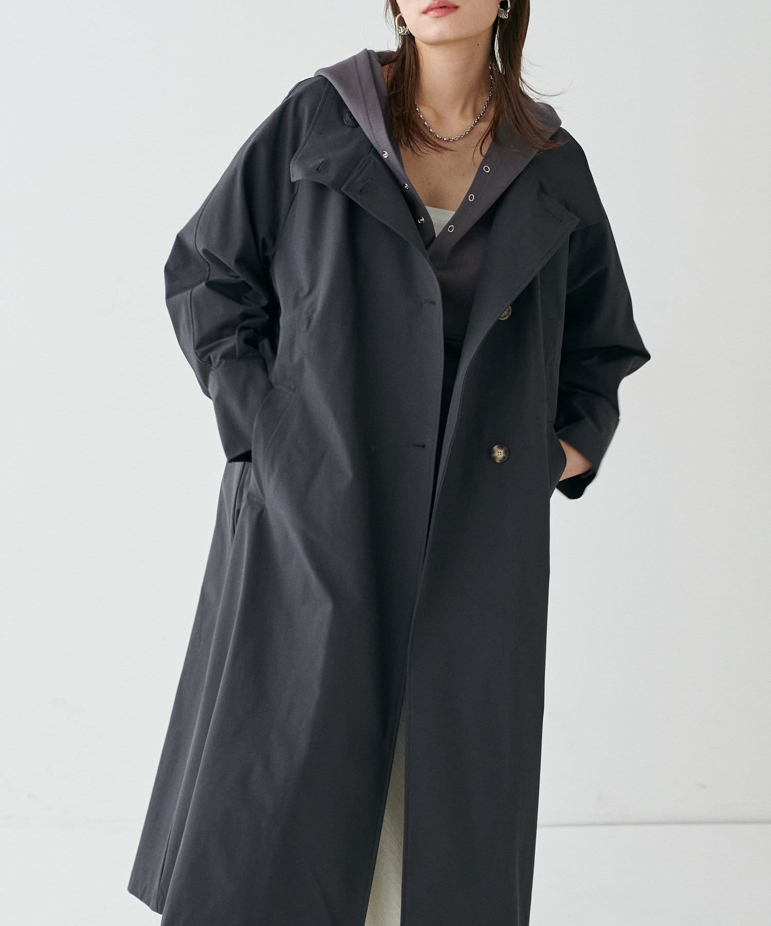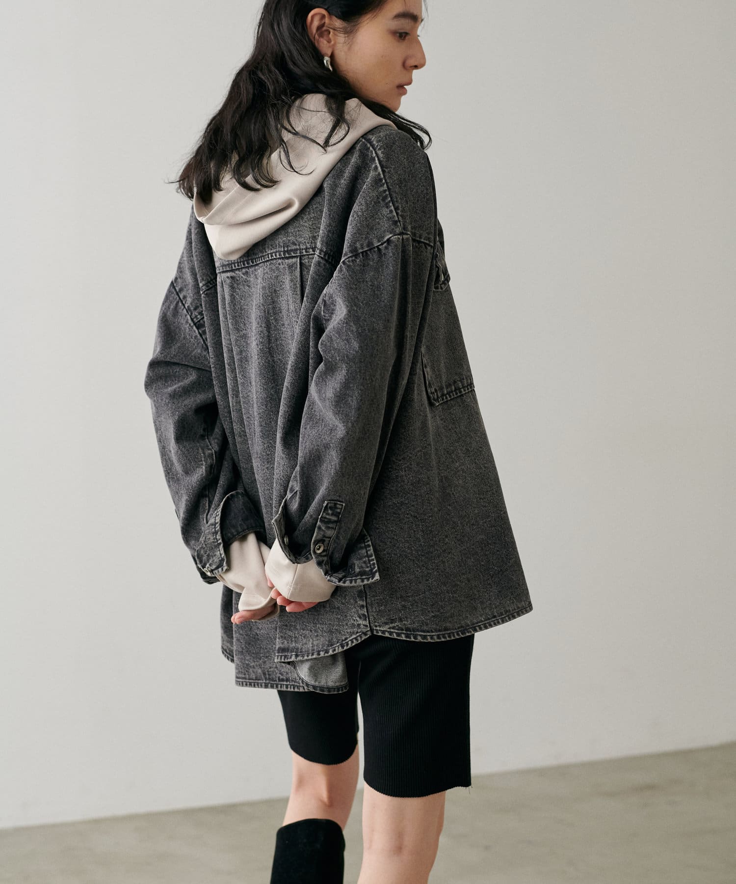 素材の特性を生かした大きめのフードや