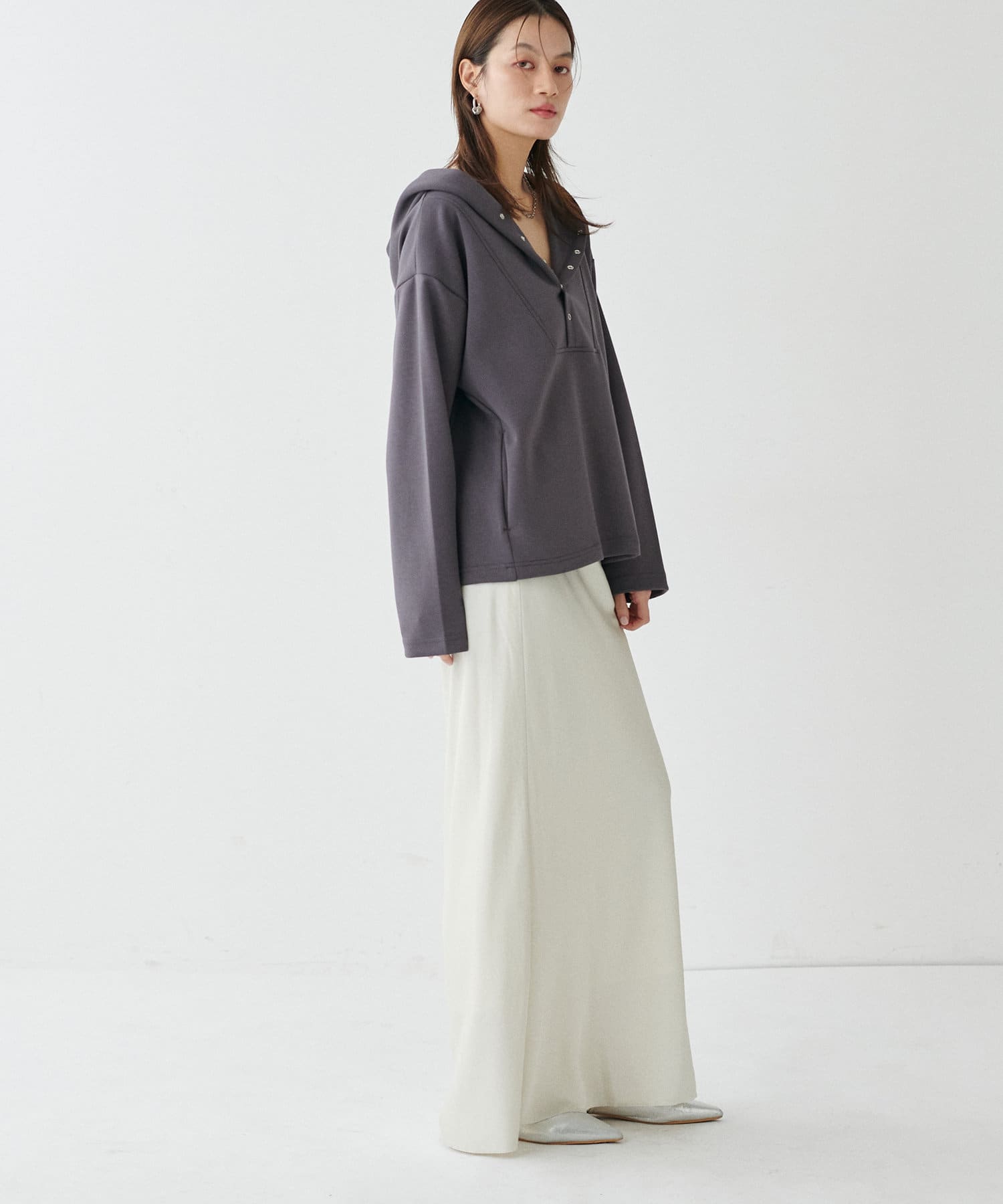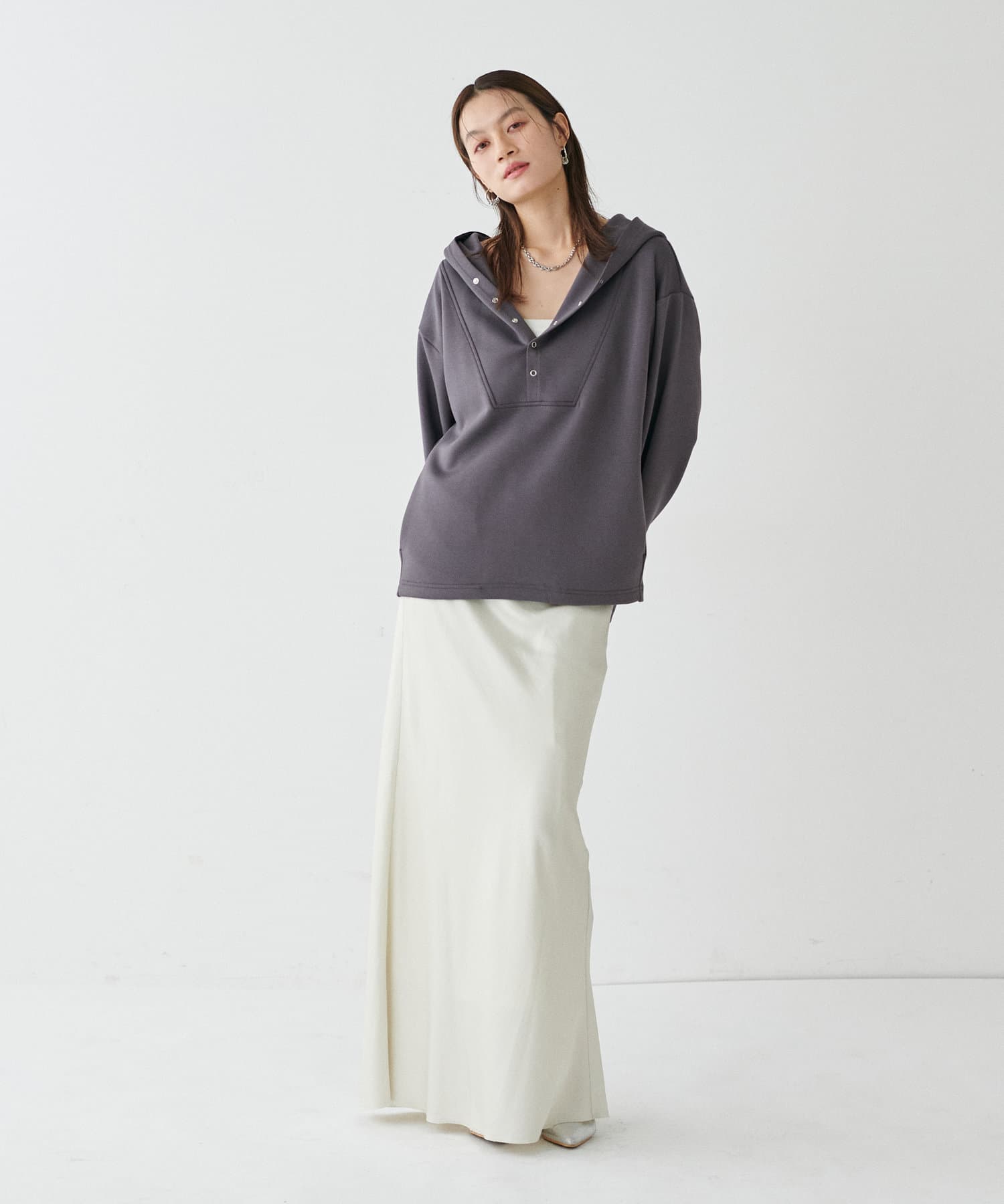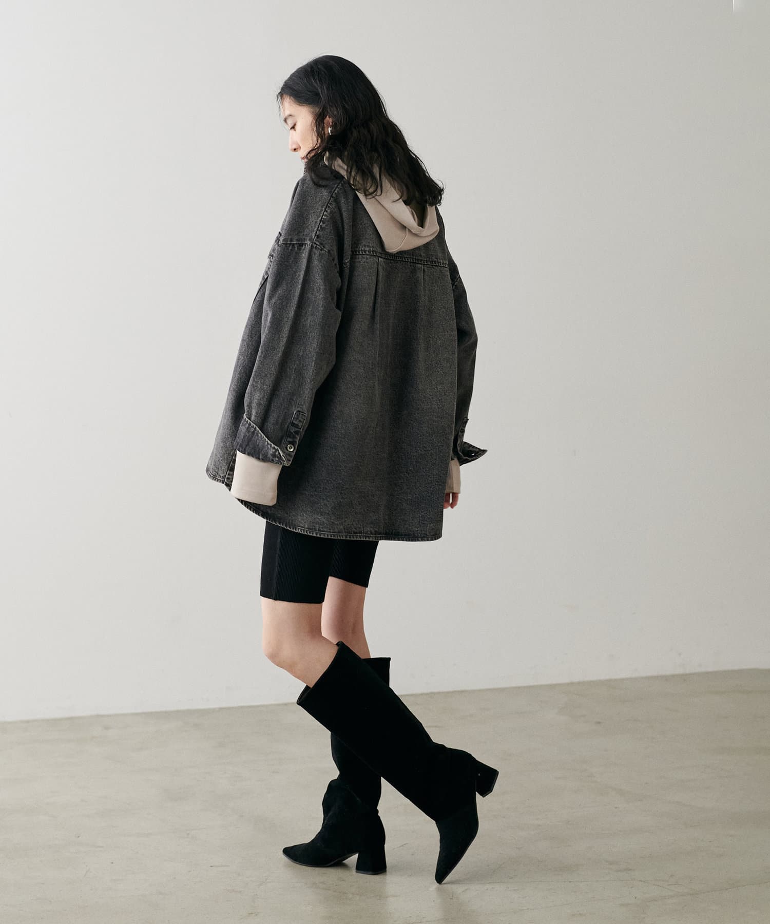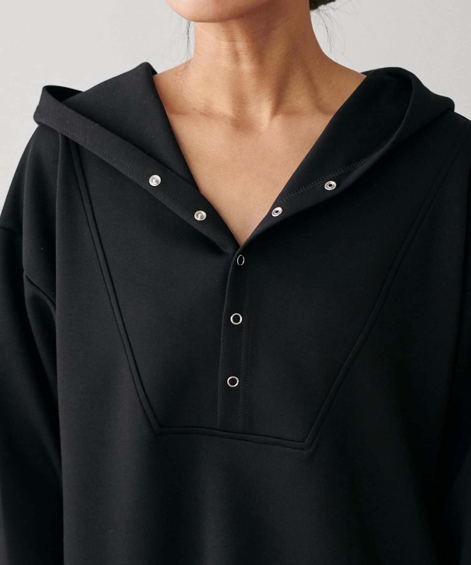 素材の特性を生かした大きめのフードや