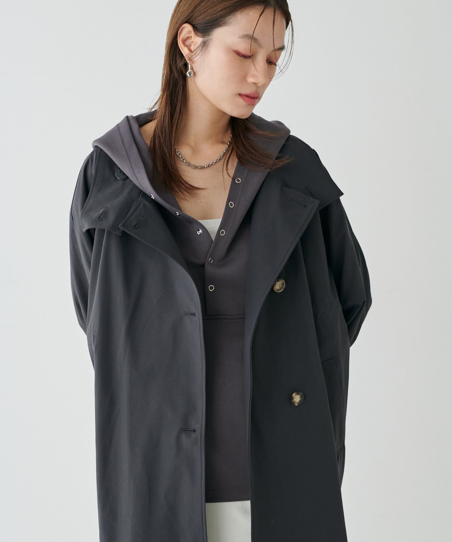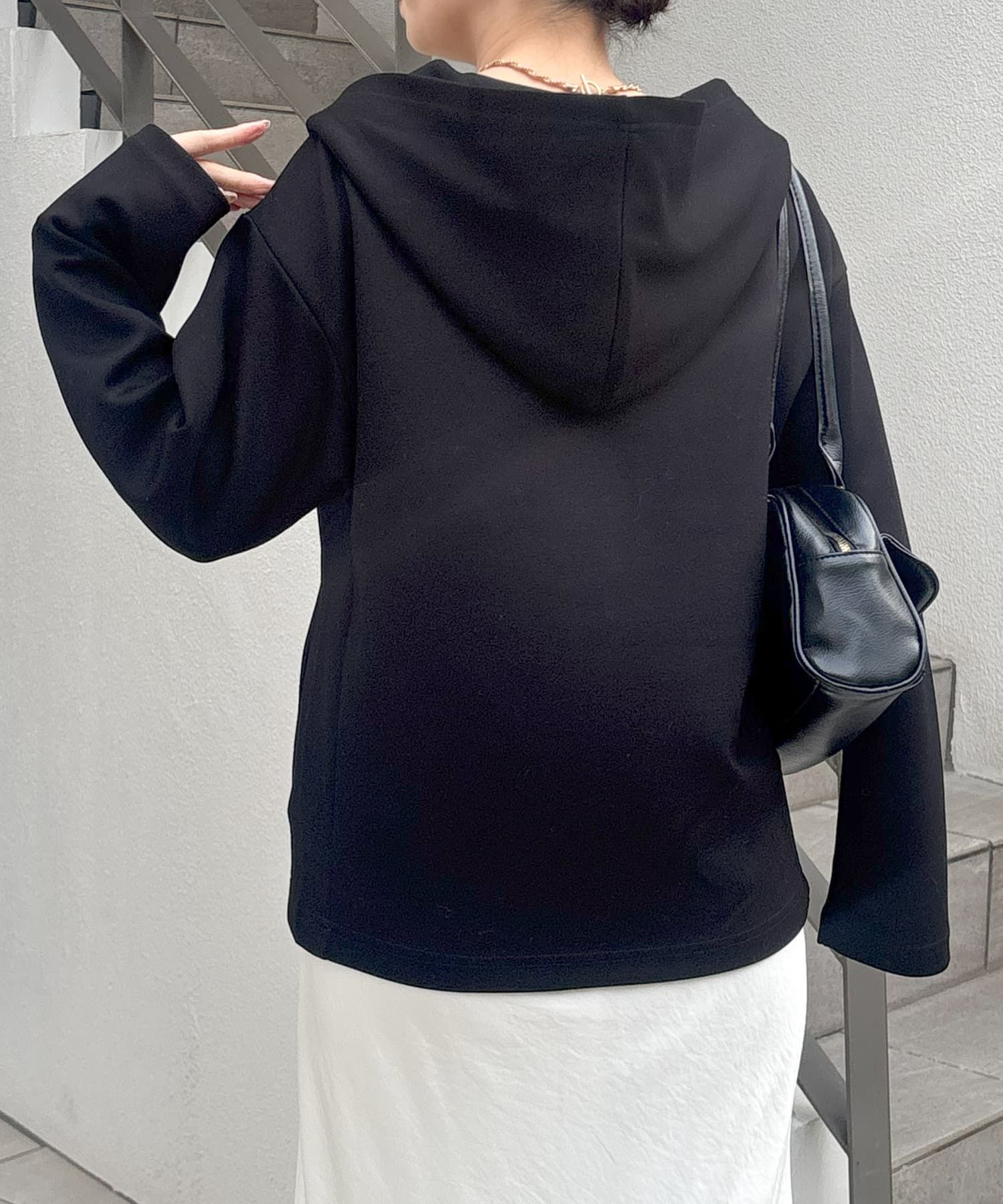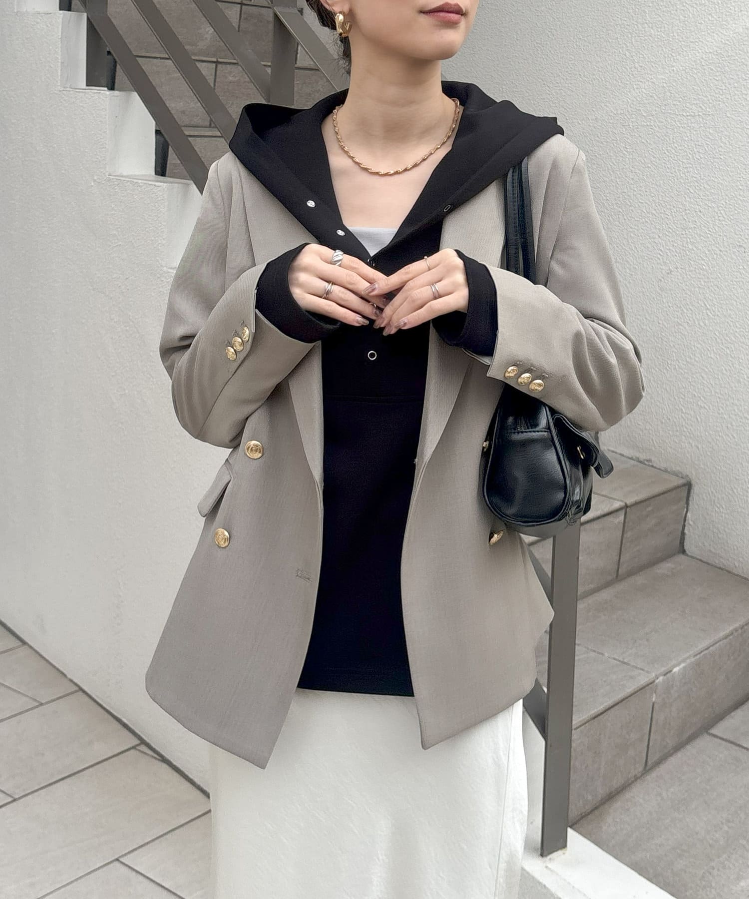 アウターの中からフードを覗かせる着こなしも今年らしくておすすめです。