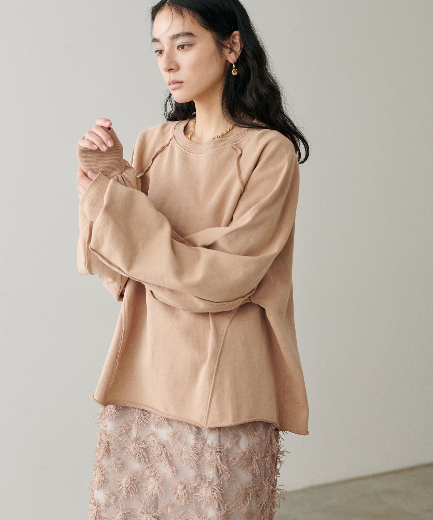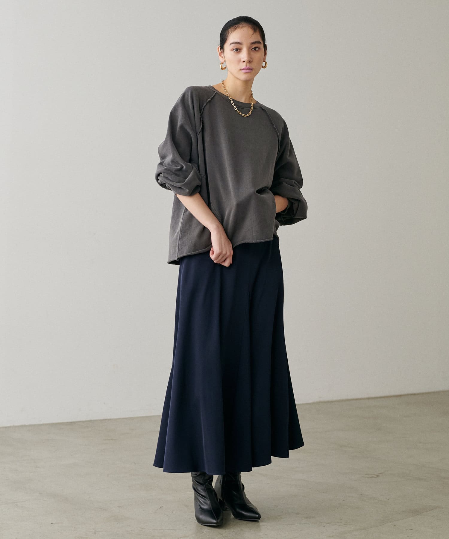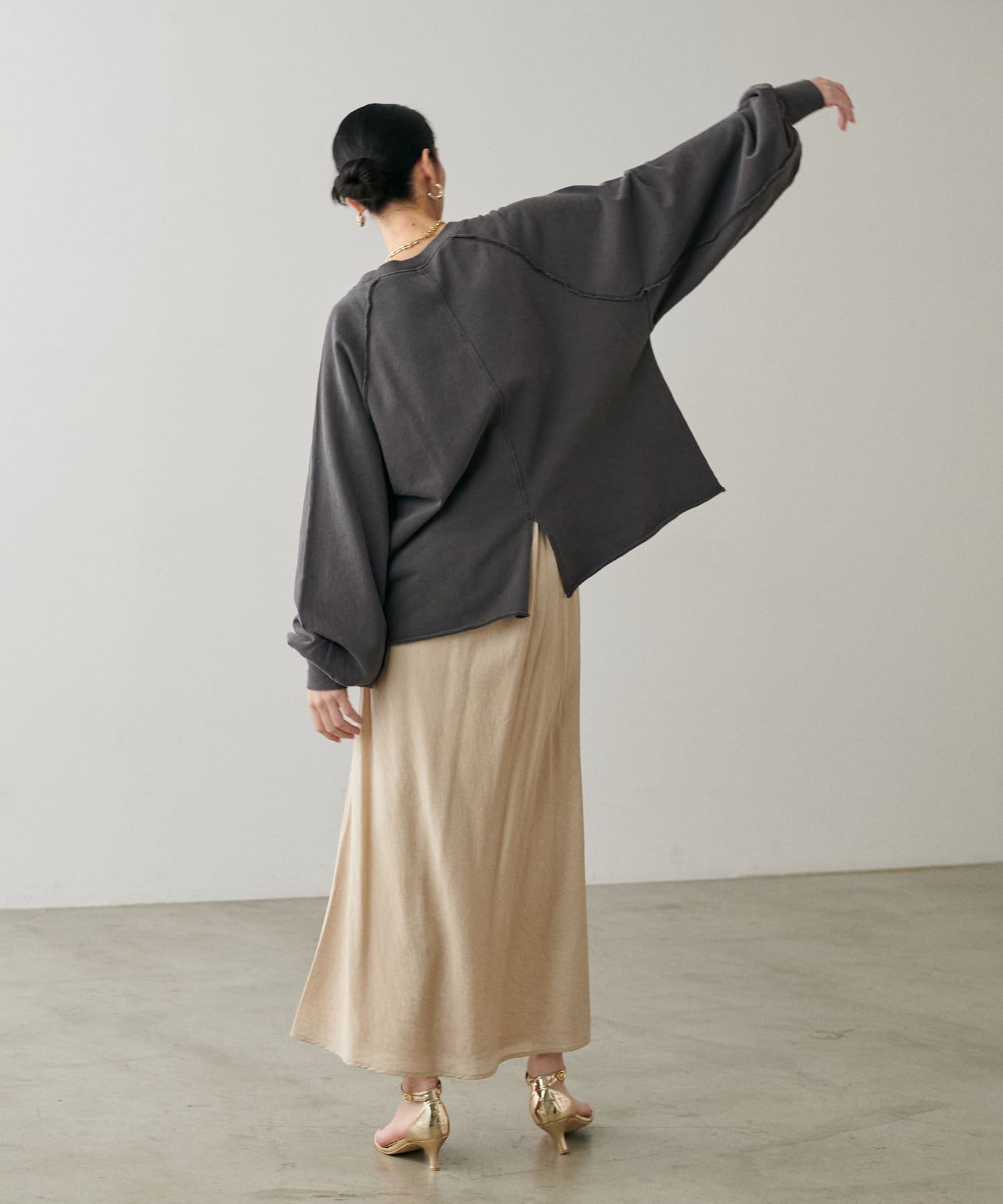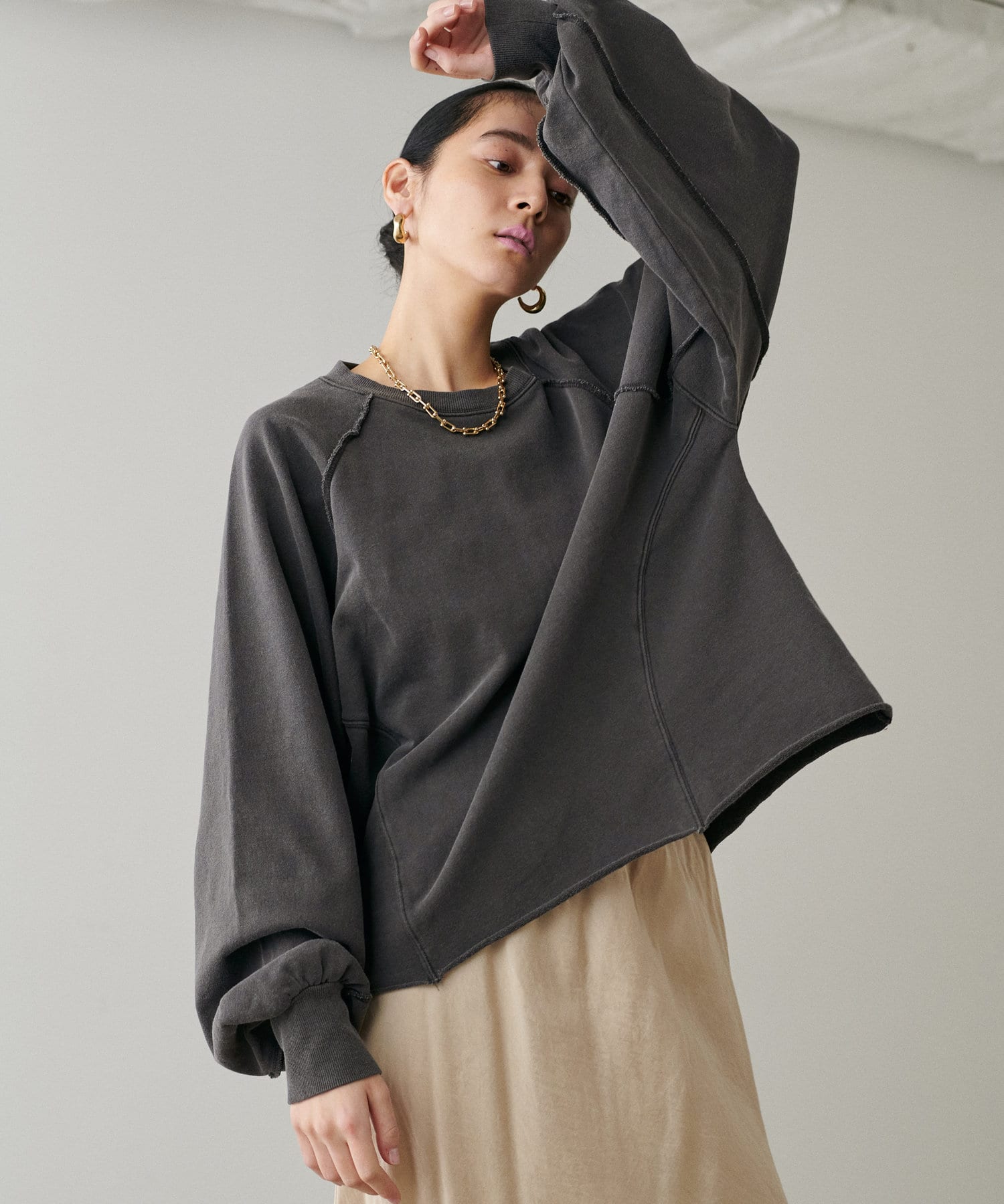 柔らかな素材に、たっぷりとした身幅とボリュームスリーブが