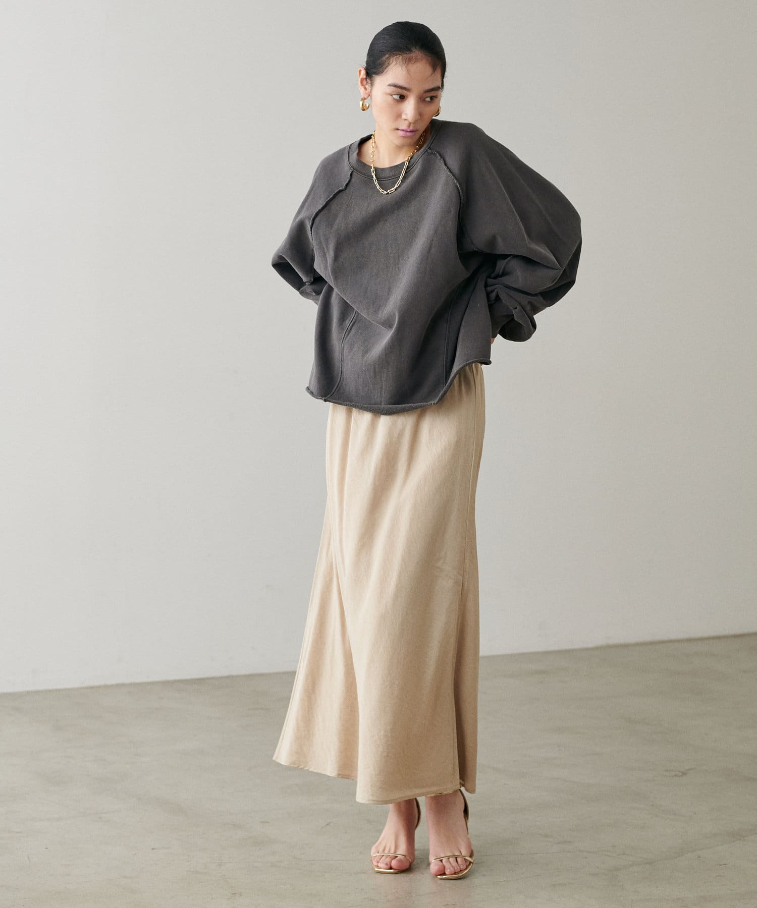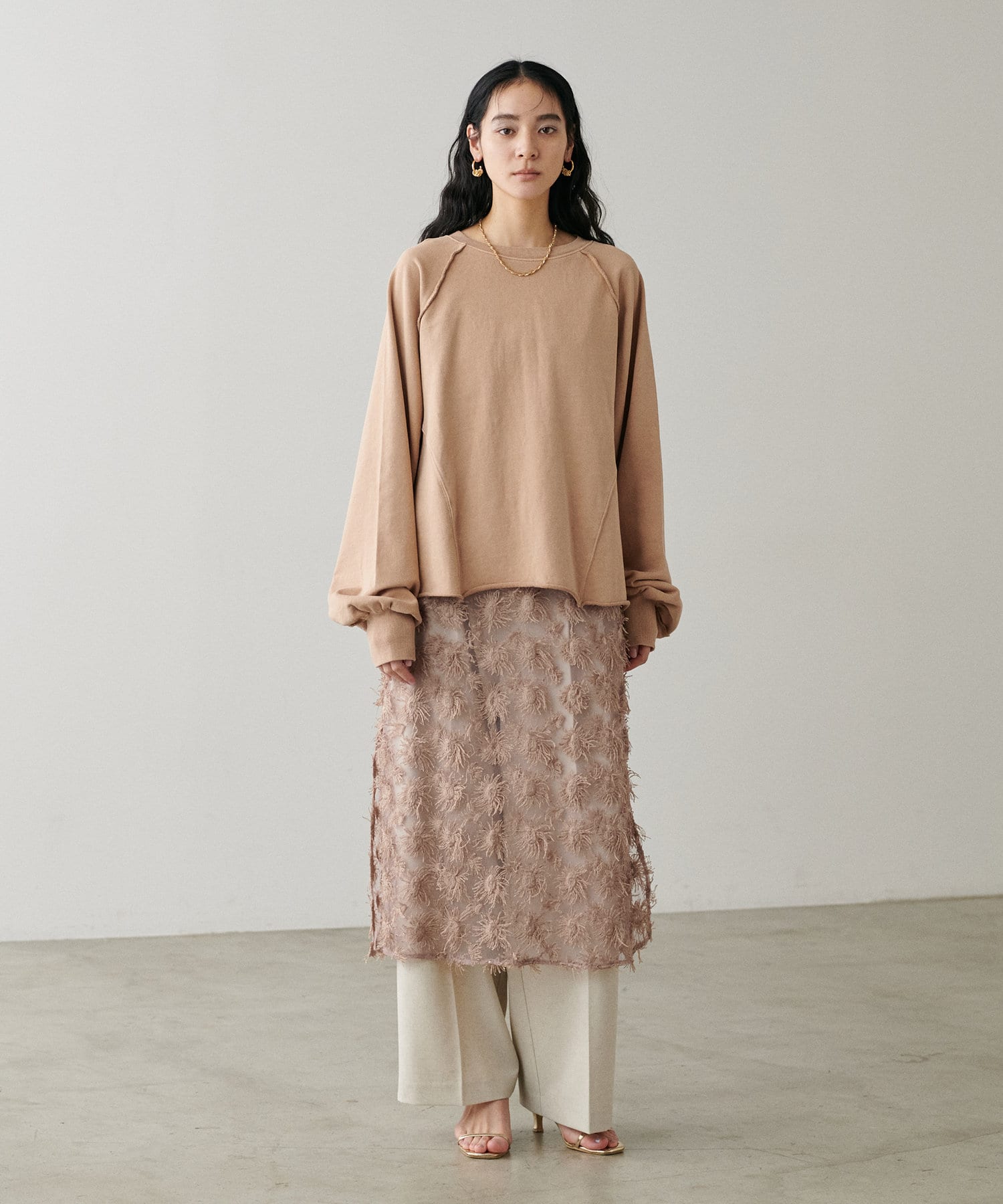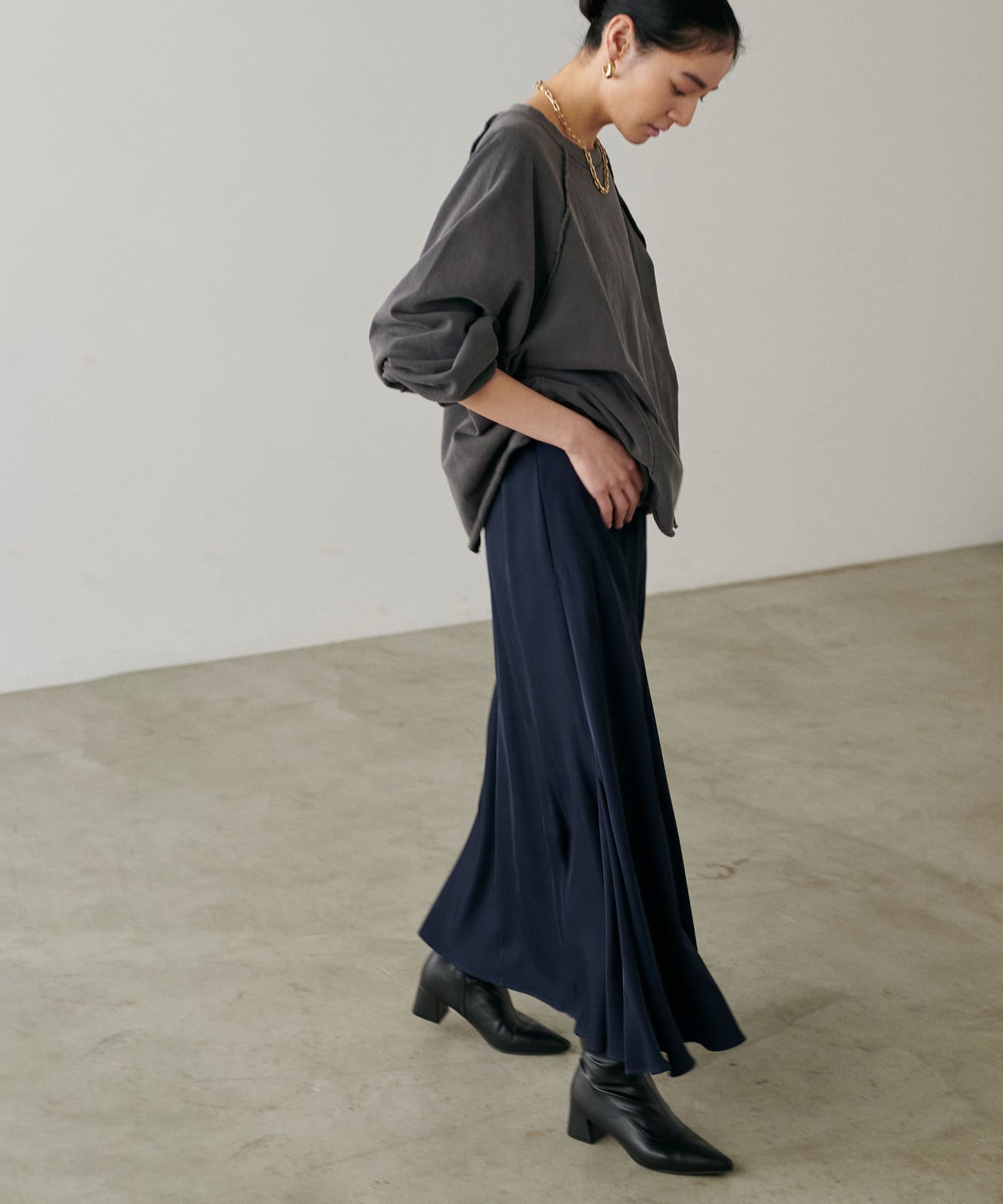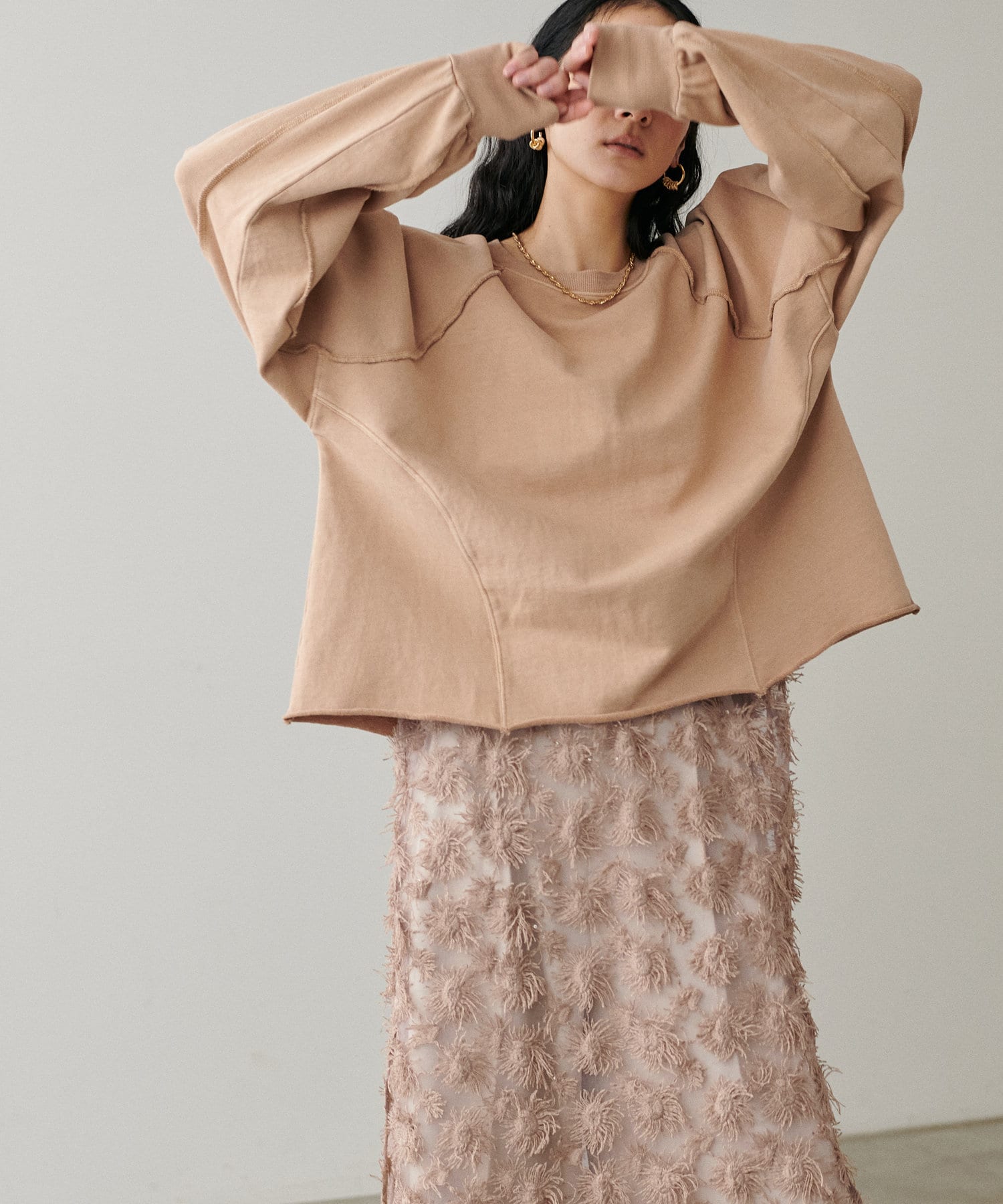 柔らかな素材に、たっぷりとした身幅とボリュームスリーブが