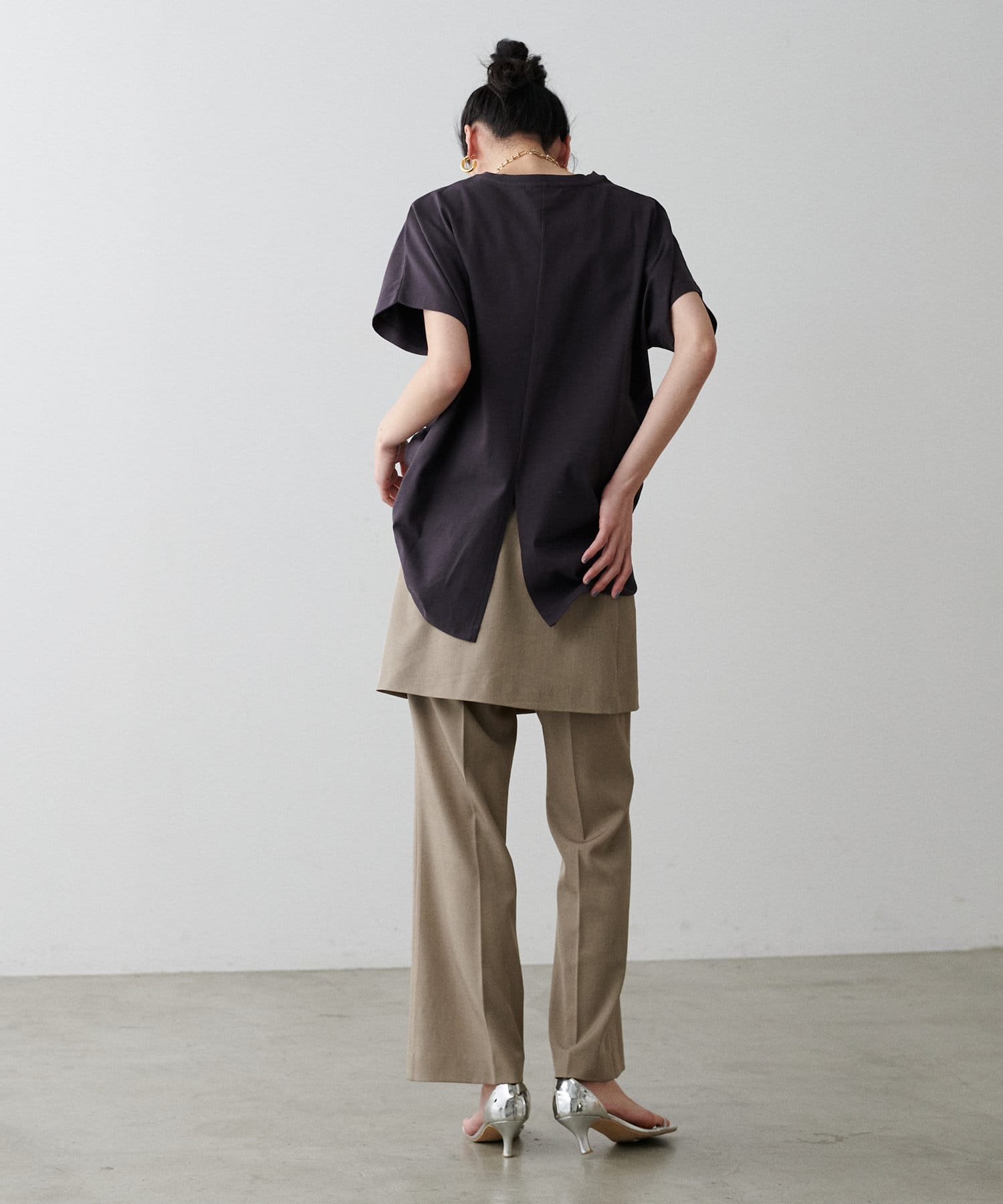 バッグスリットを入れることによりヒップの広がりを抑える工夫を。