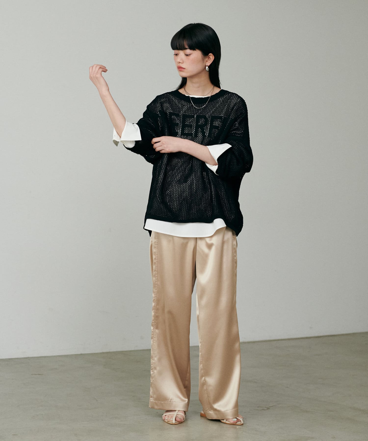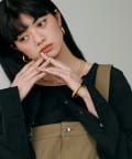 女性らしい雰囲気をプラスし、レイヤードした際にちらりと裾が覗くのがポイント。