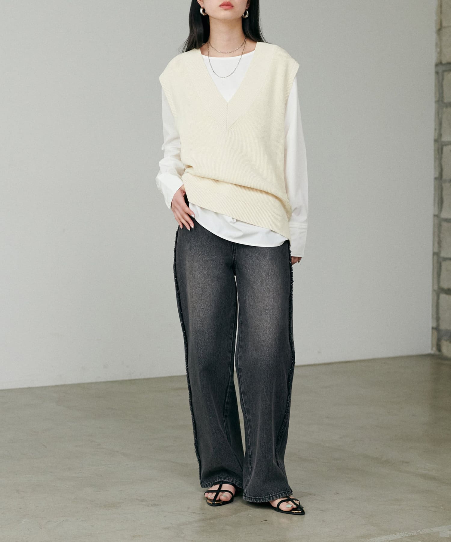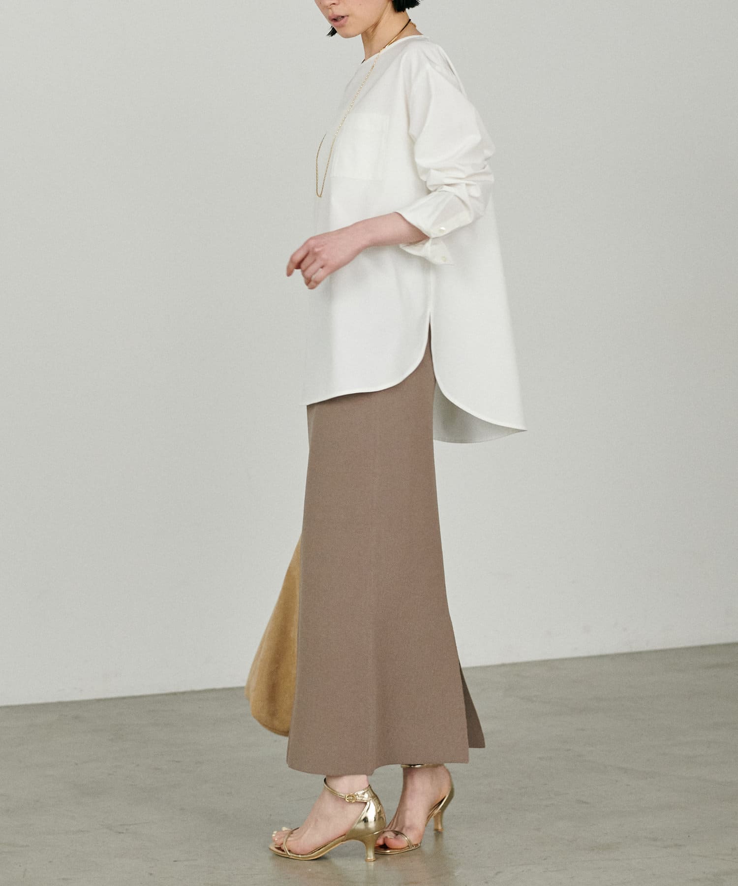 女性らしい雰囲気をプラスし、レイヤードした際にちらりと裾が覗くのがポイント。