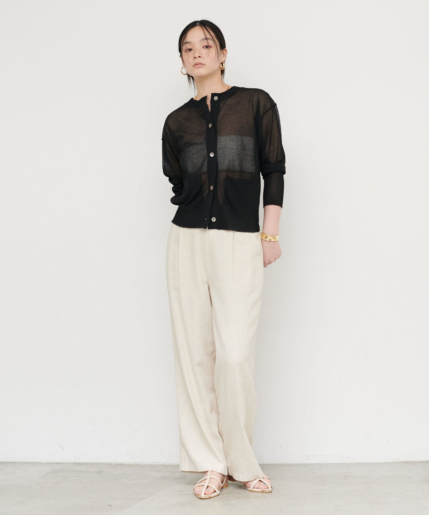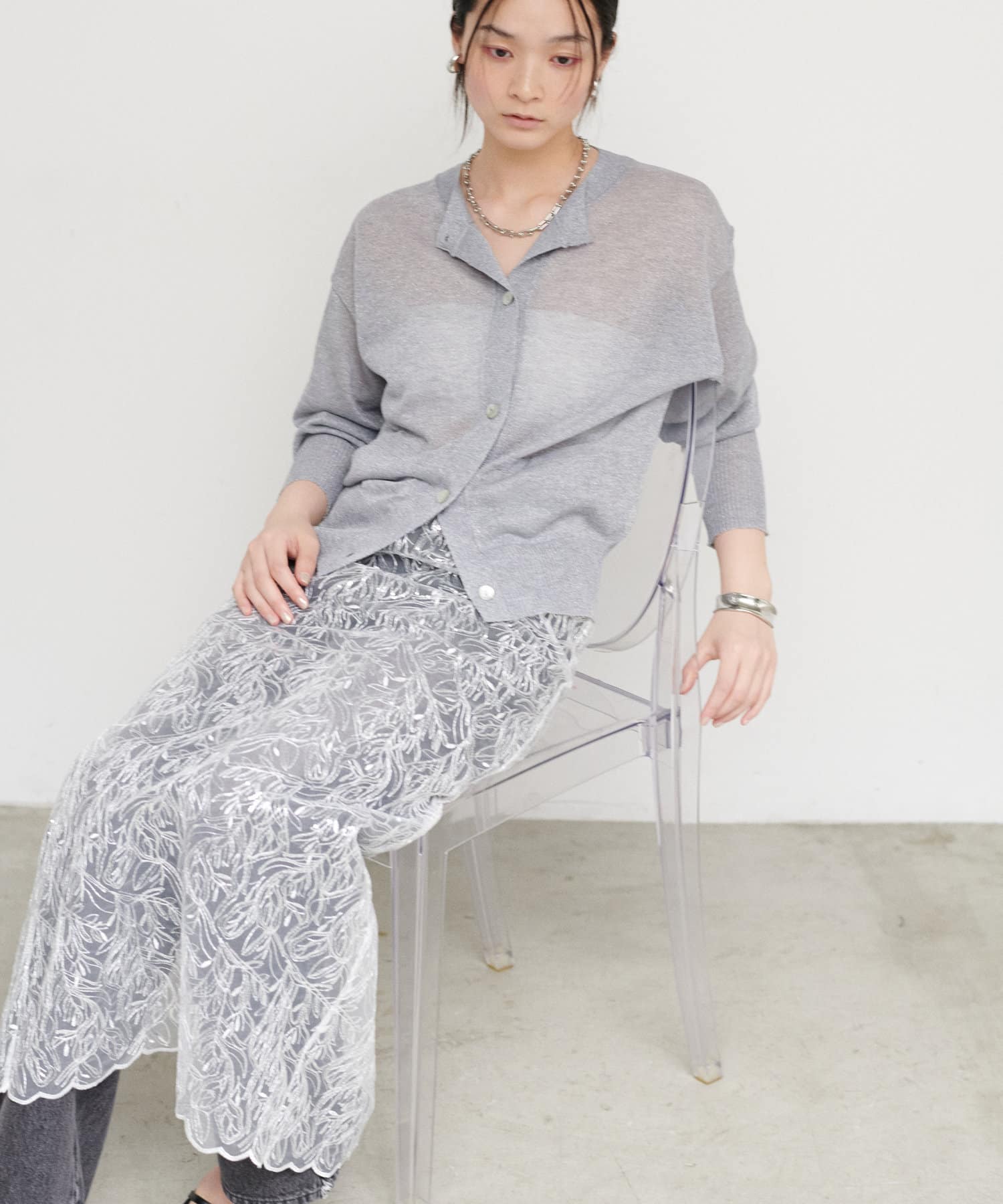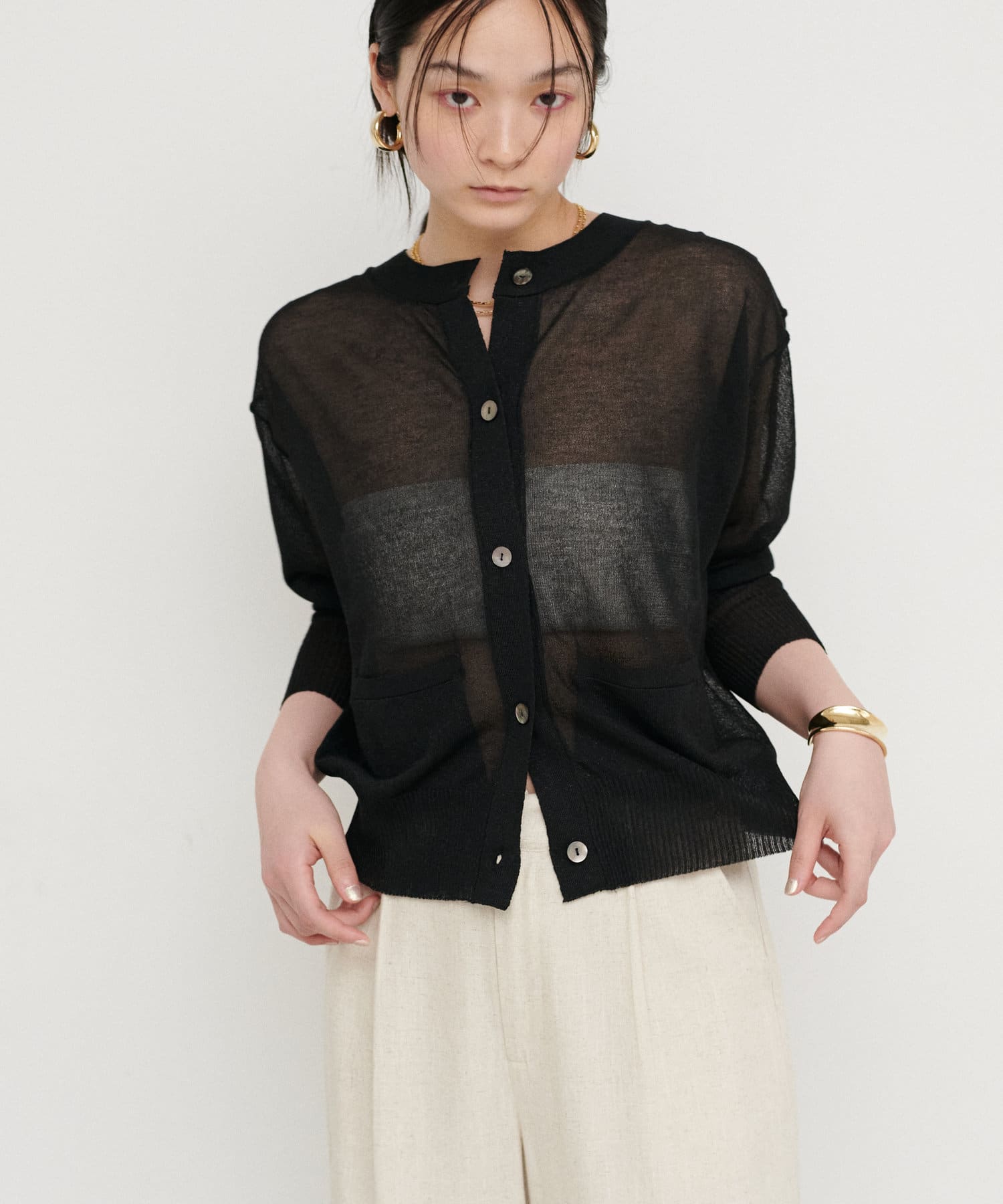 繊細な透け感と、柔らかな風合いが魅力のシアーニットカーディガン。