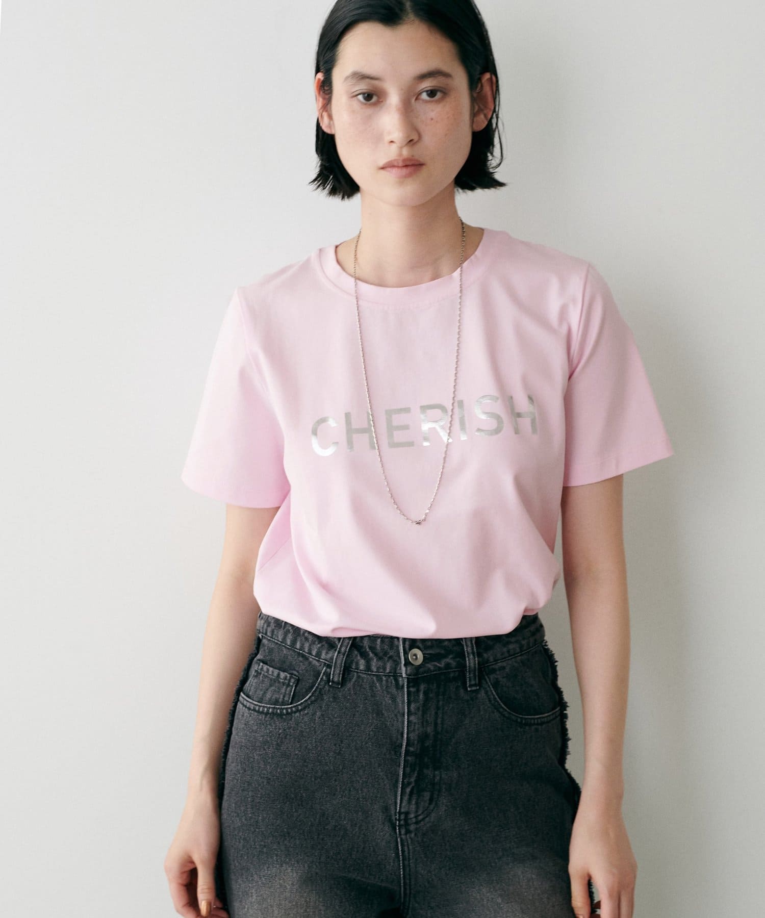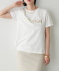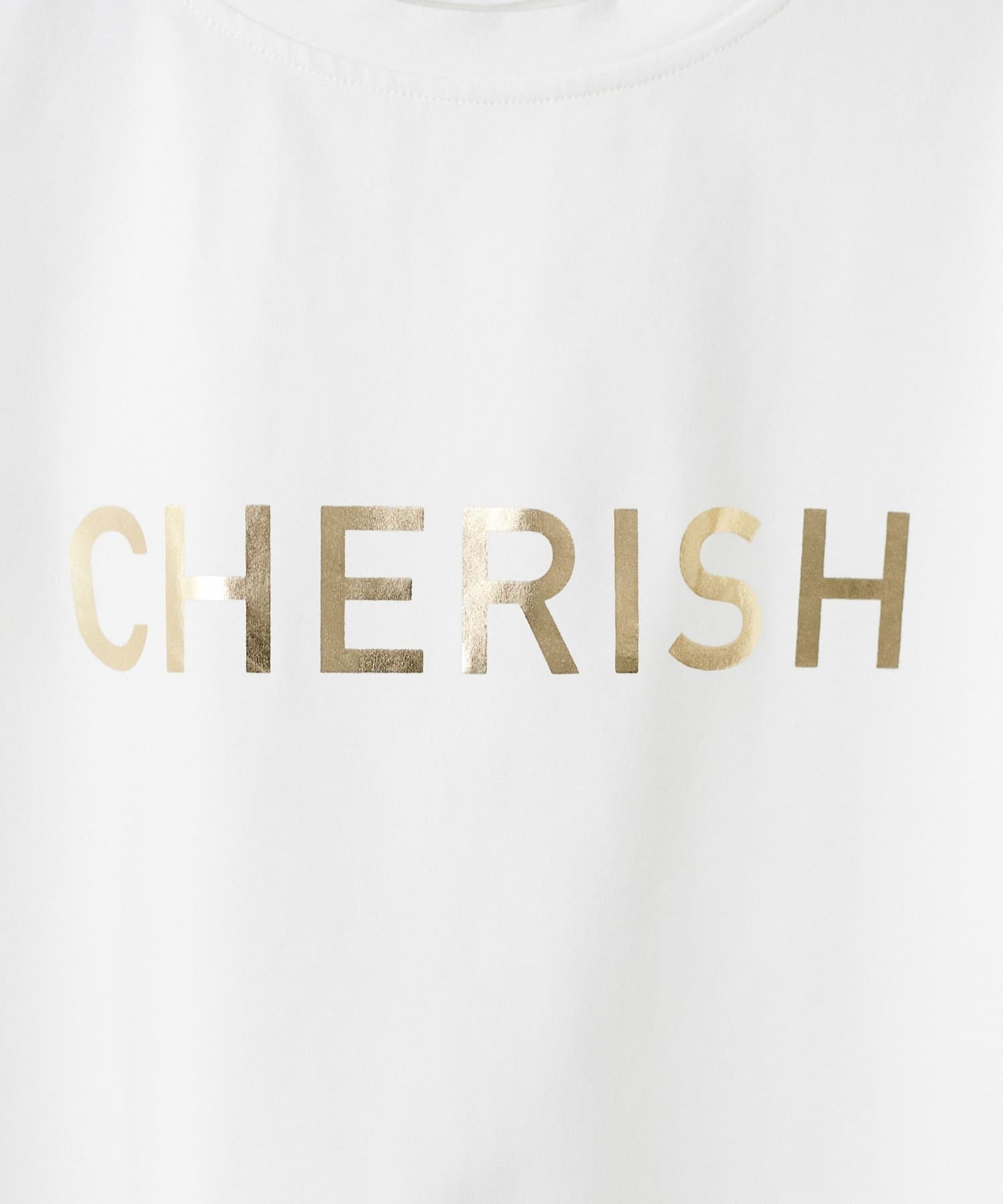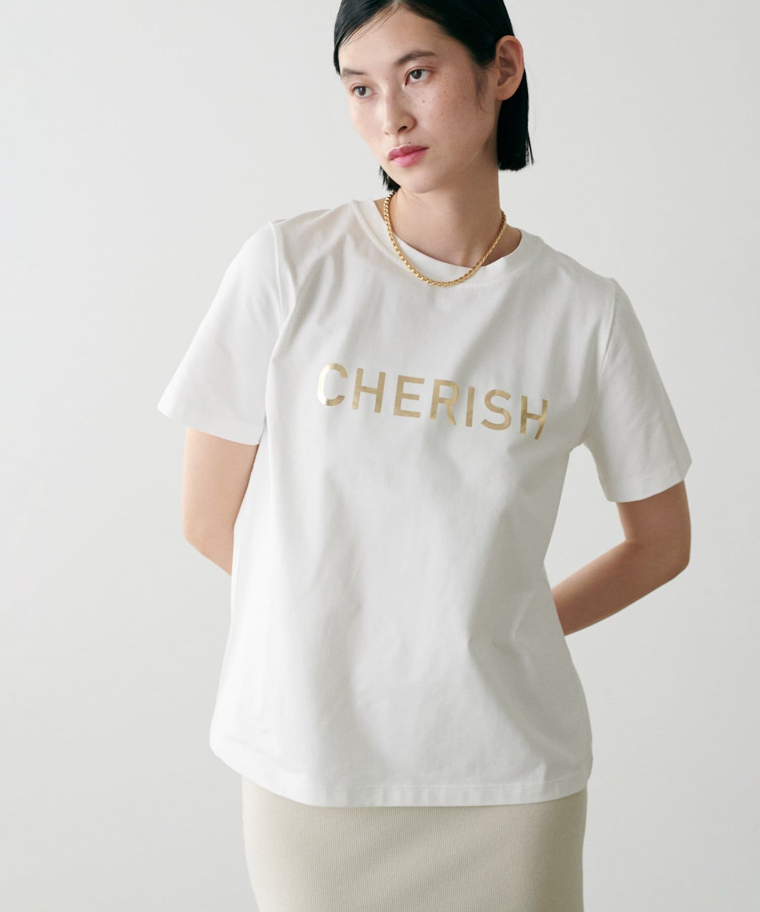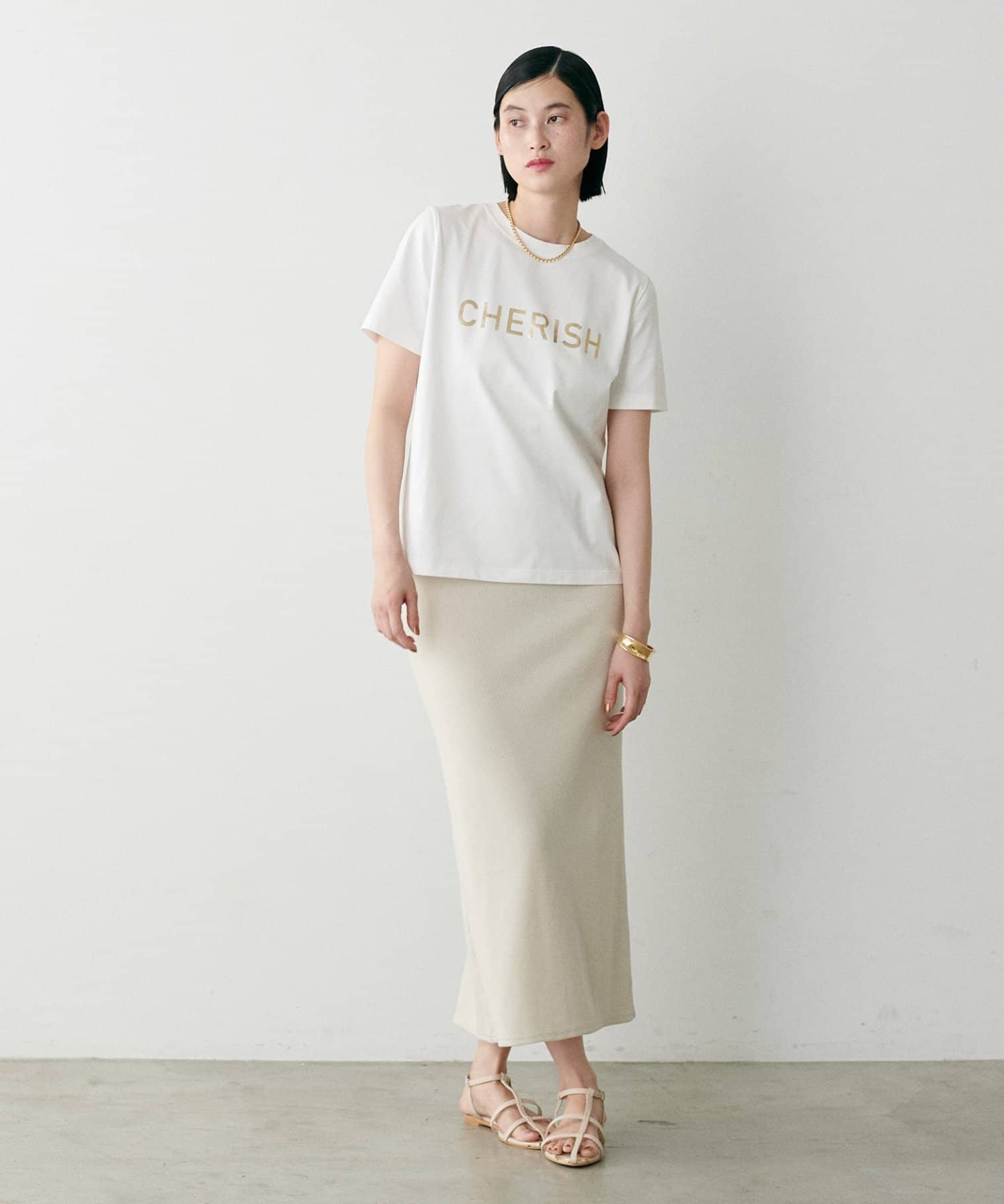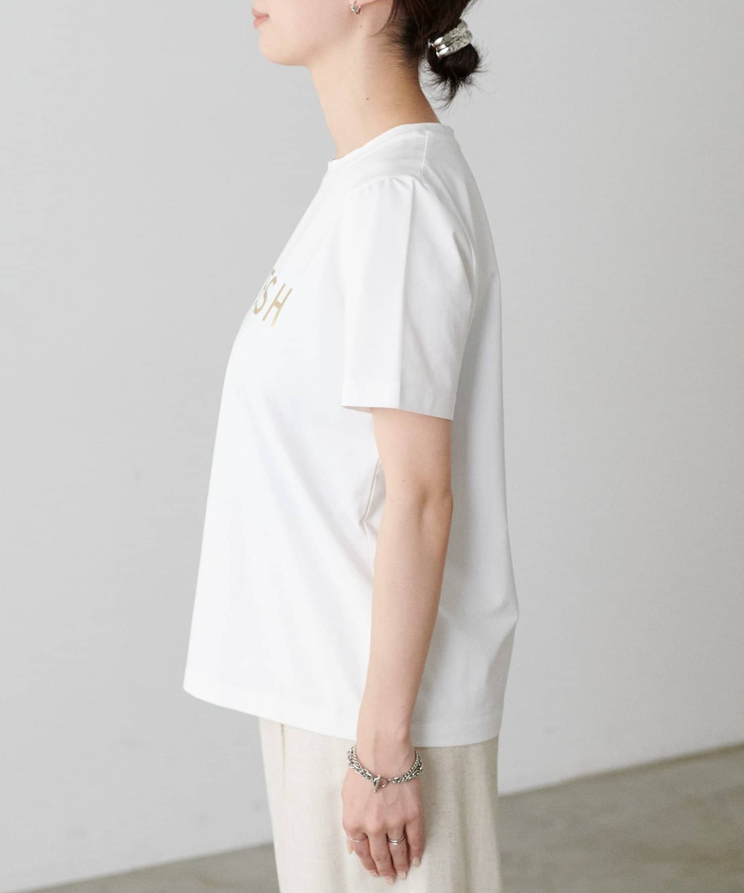シンプルながらも箔プリントがコーディネートのアクセントに。
