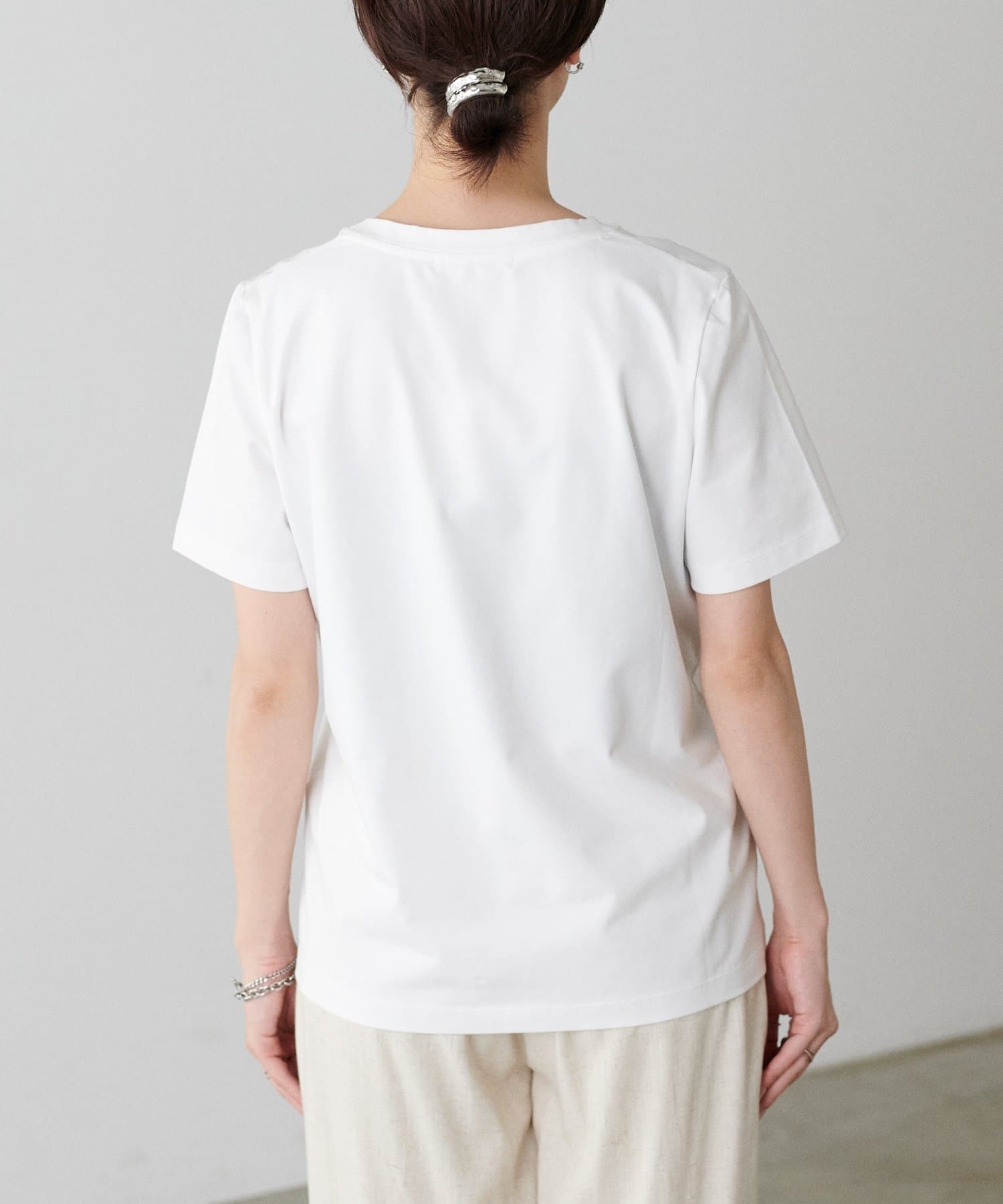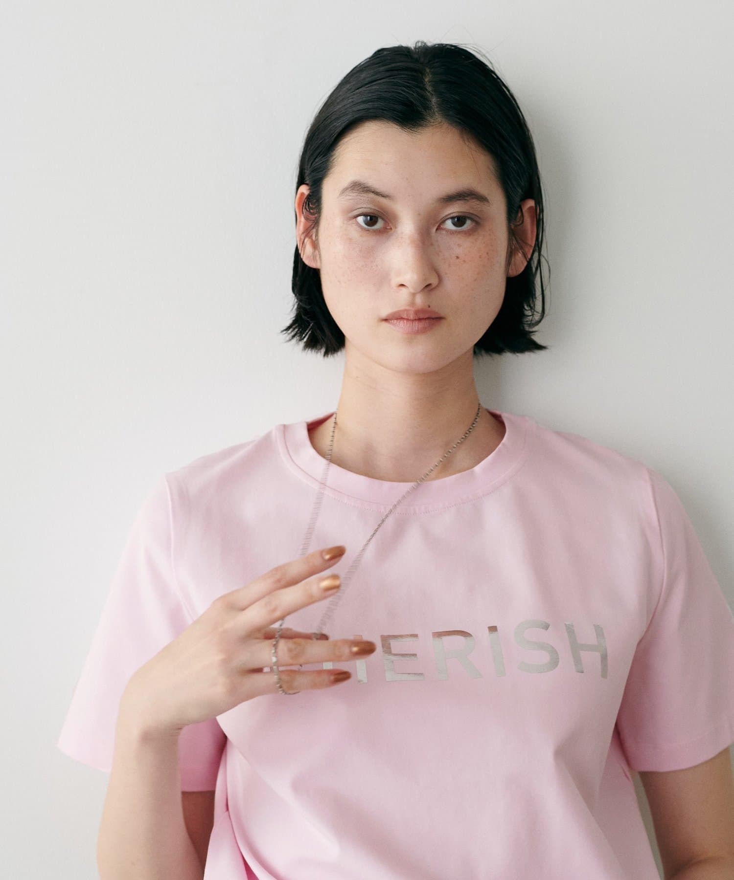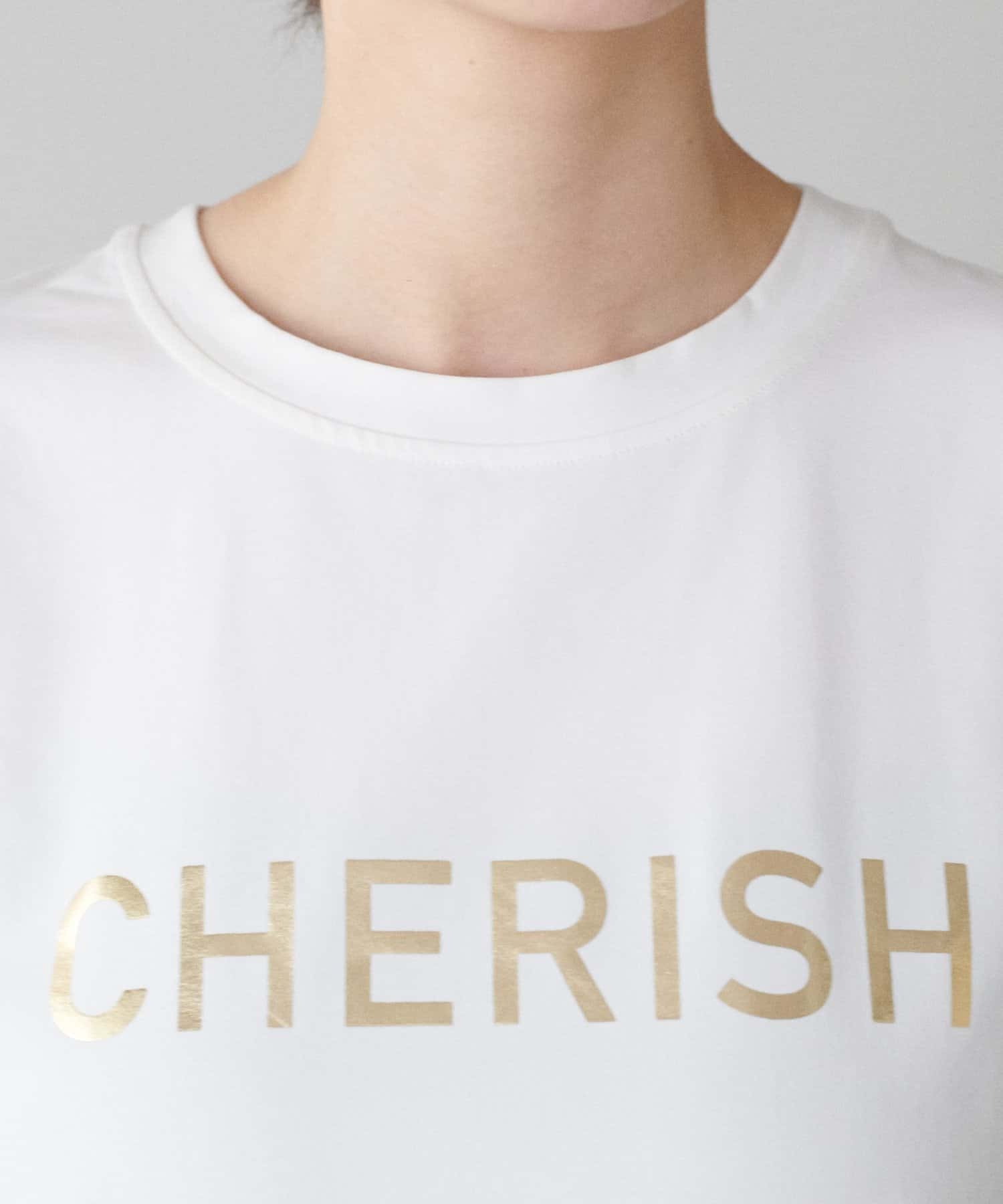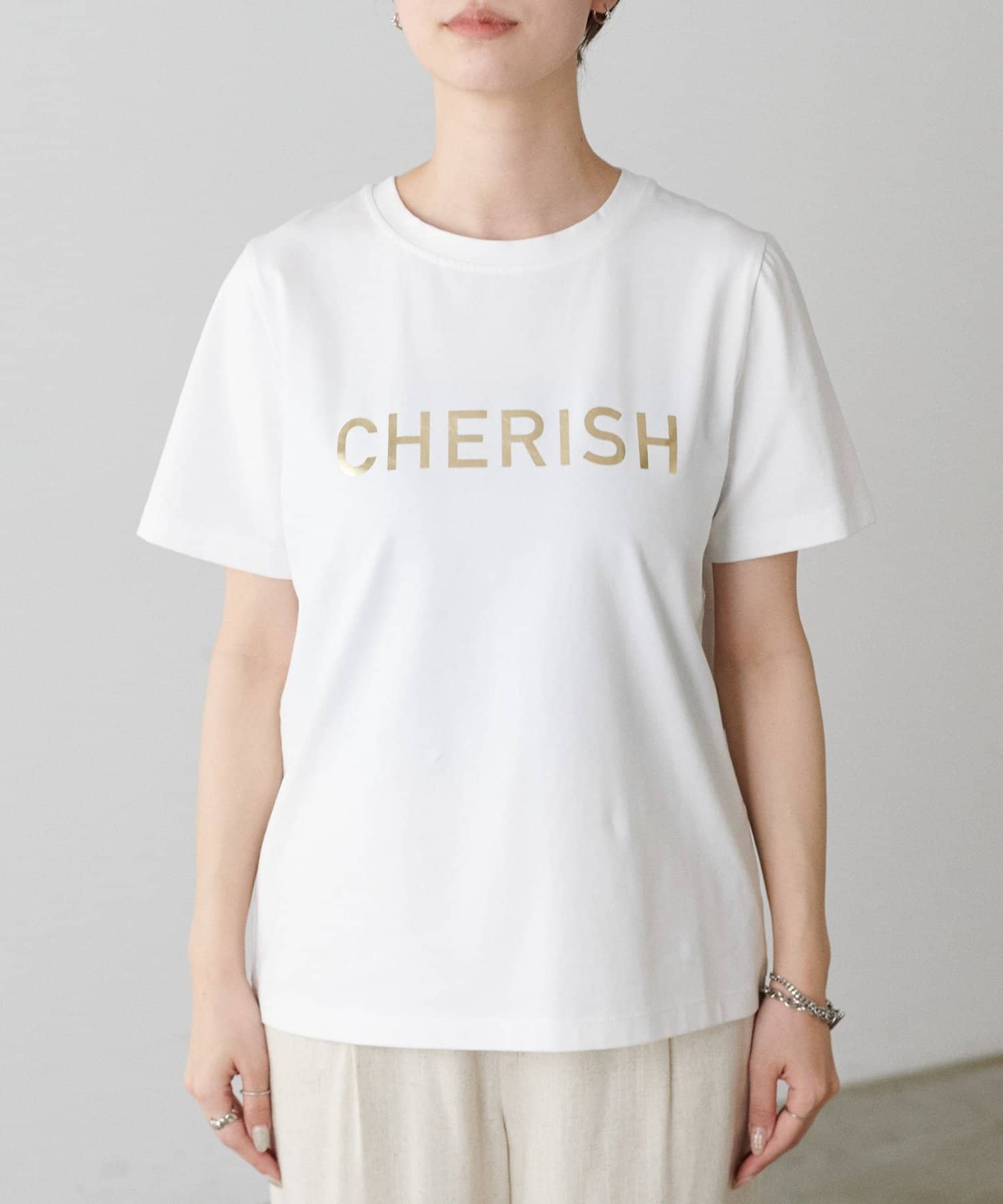 シンプルながらも箔プリントがコーディネートのアクセントに。