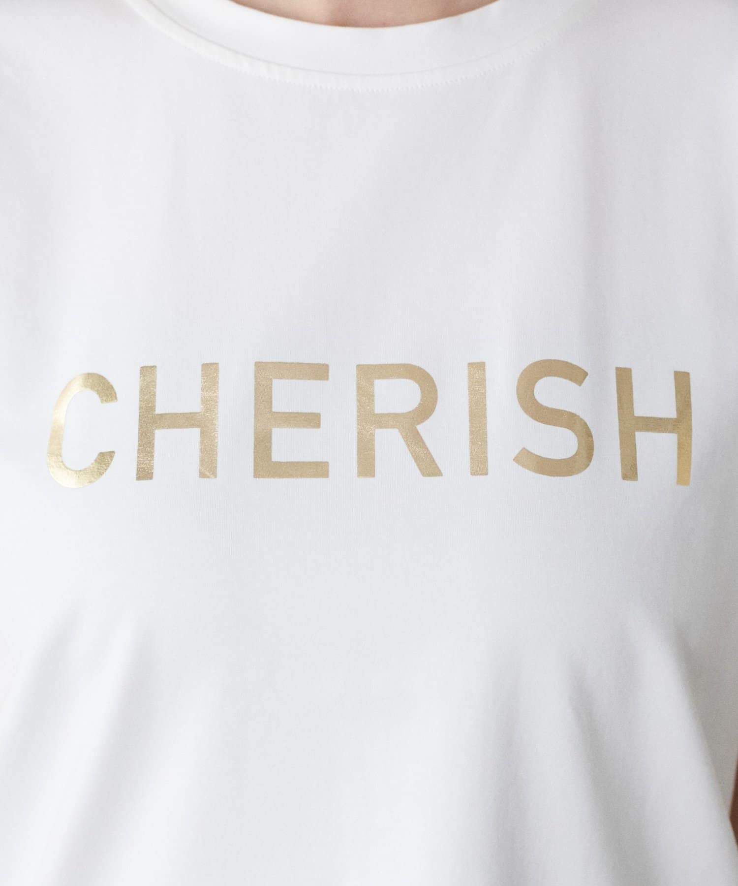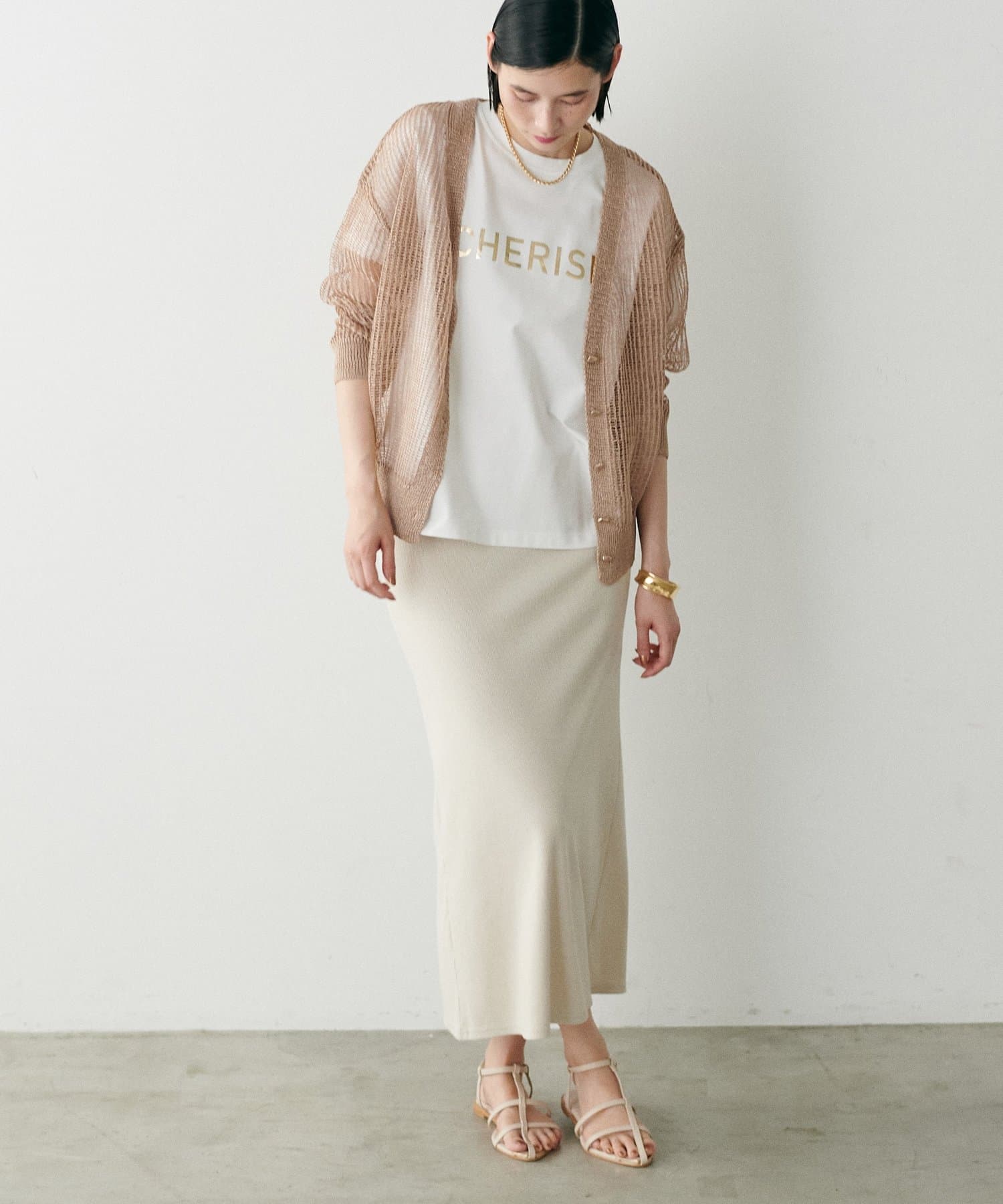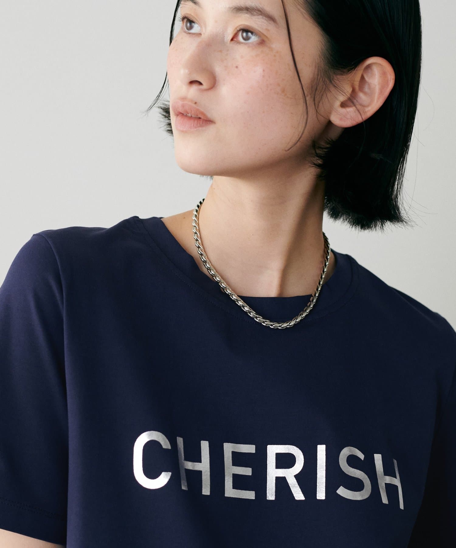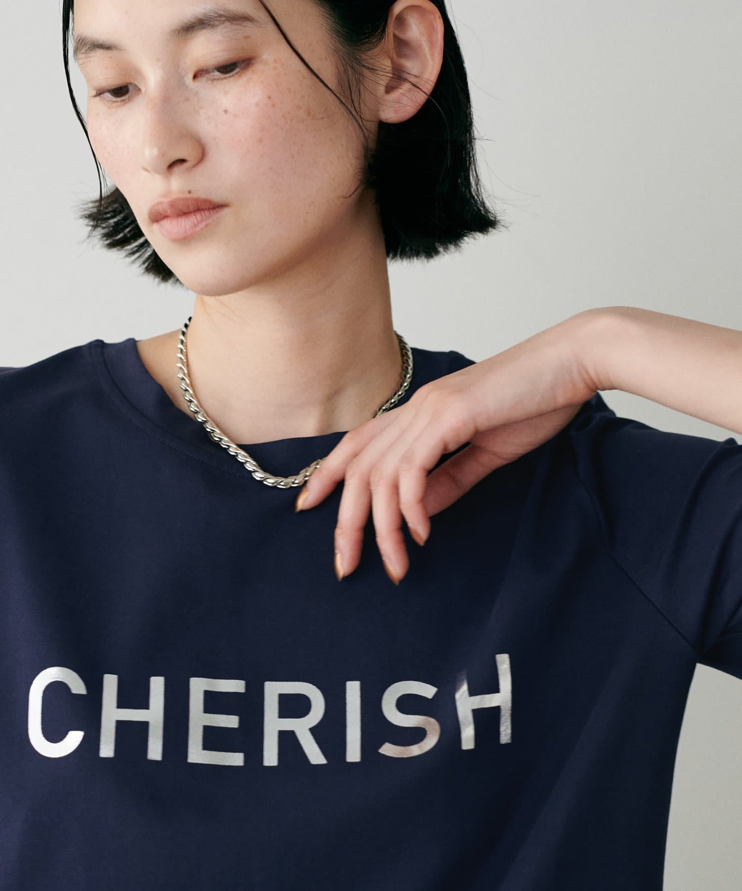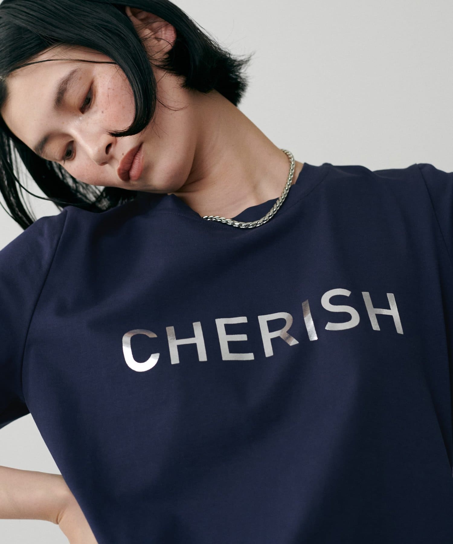 シンプルながらも箔プリントがコーディネートのアクセントに。