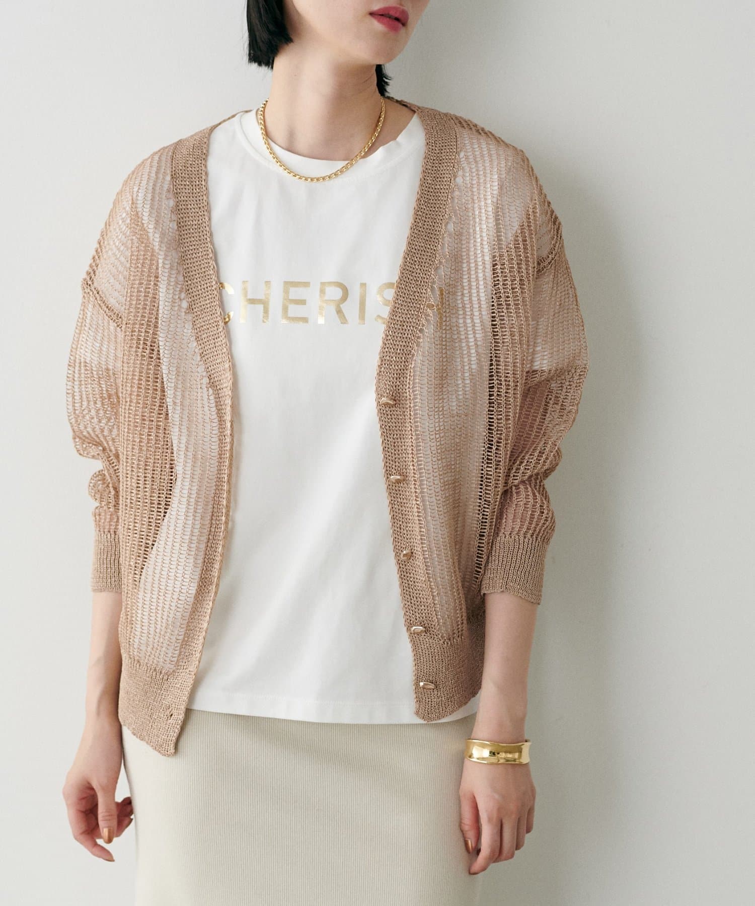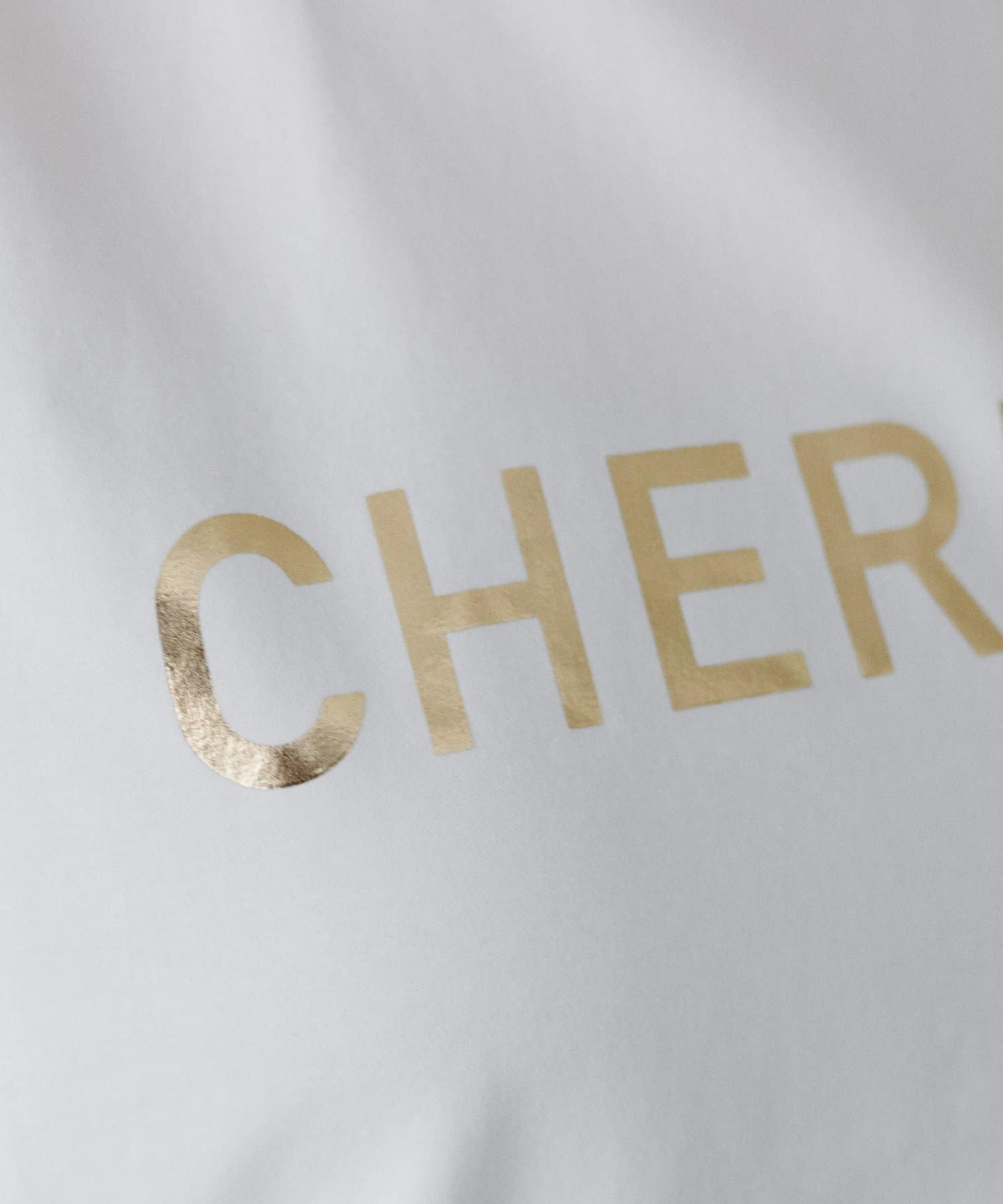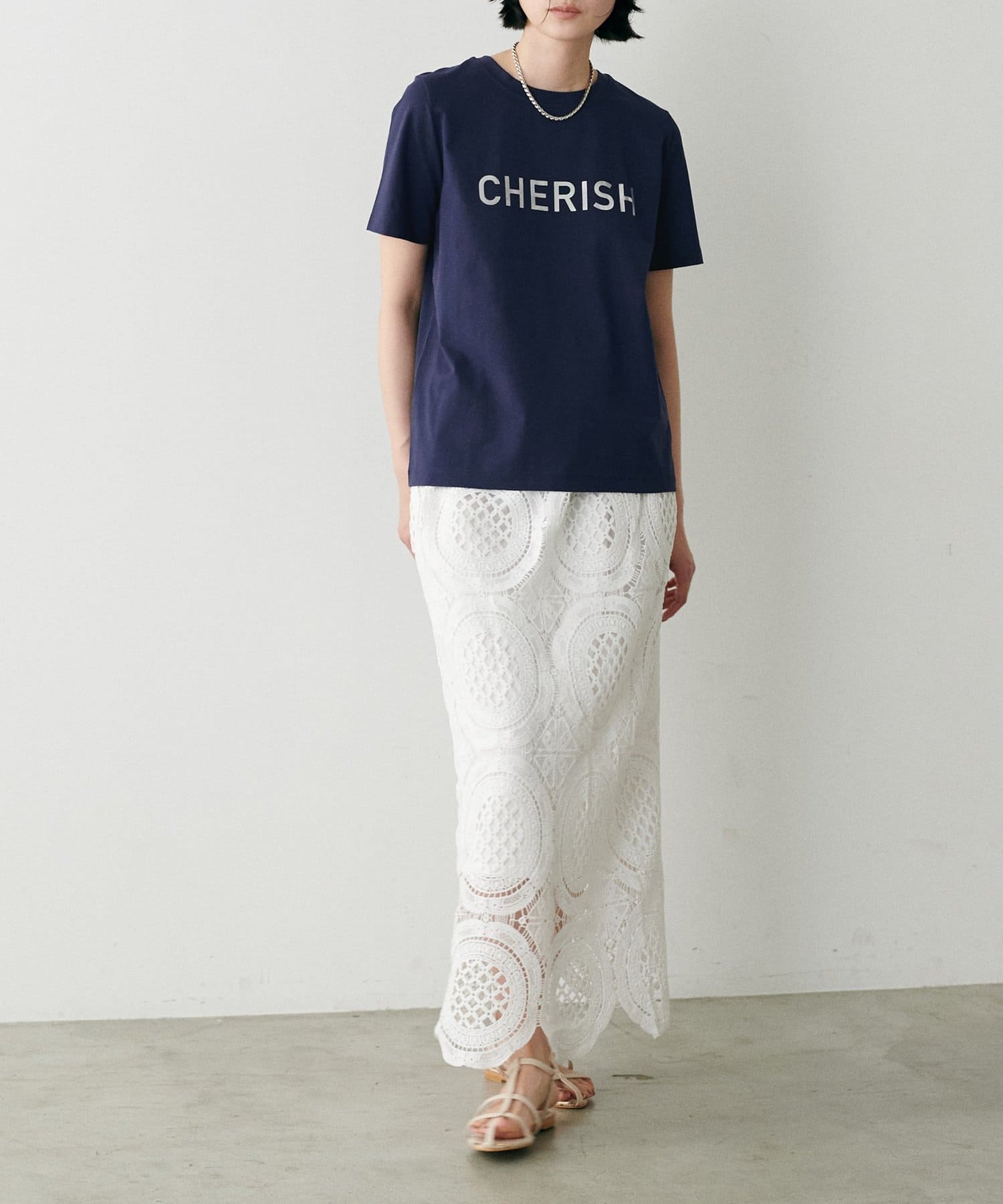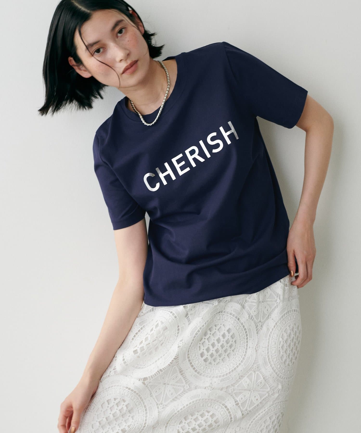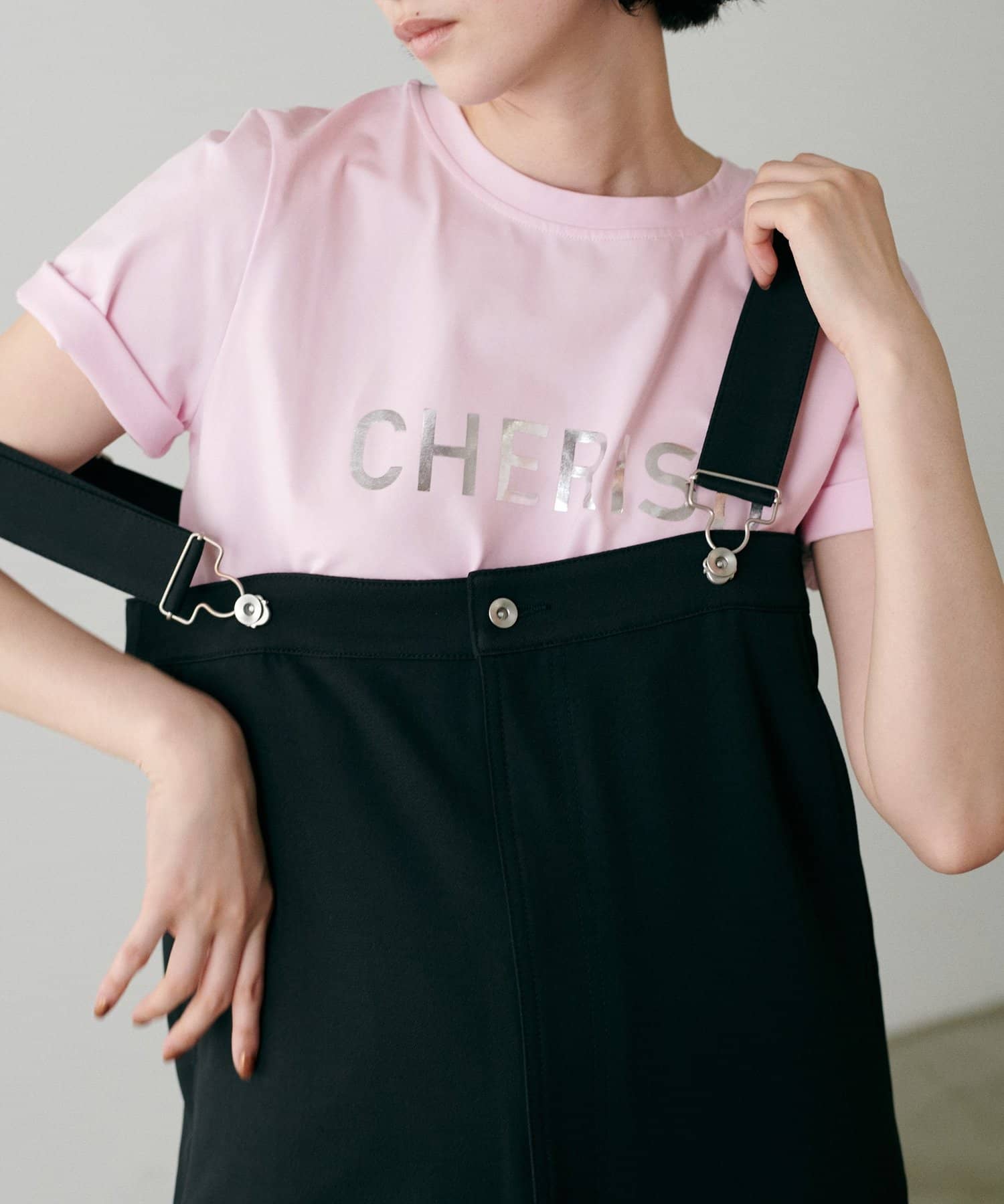 シンプルながらも箔プリントがコーディネートのアクセントに。