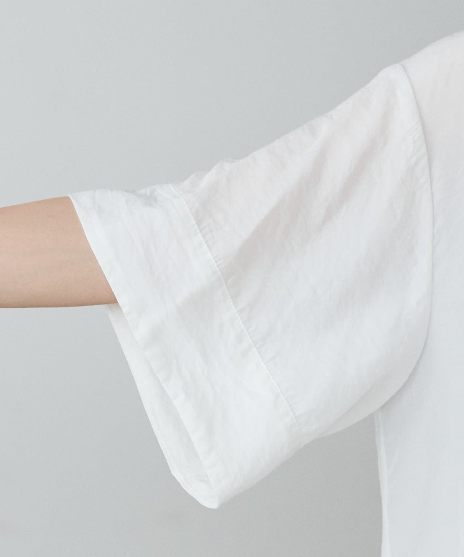 二の腕をさりげなくカバーする長めのスリーブが魅力。
