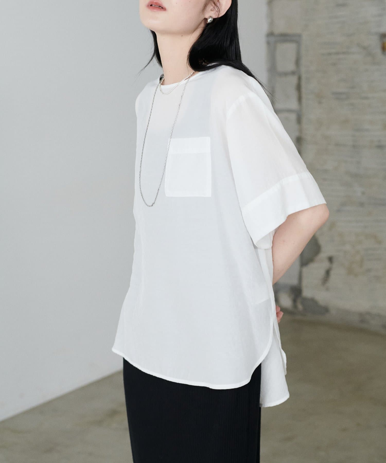 軽やかで涼しげな、大人のシアー半袖プルオーバー。